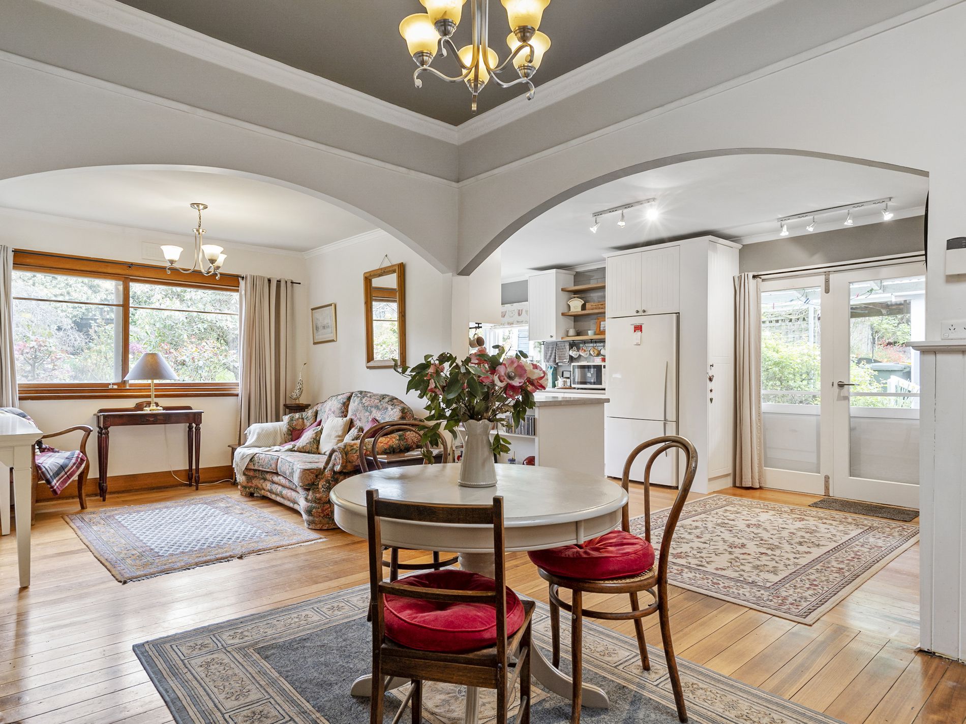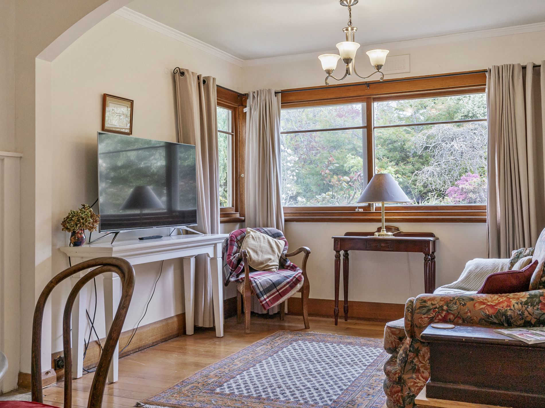 Tasmanian oak floorboards and leadlight windows are a consistent feature throughout the home, as are the rolled glass and corner windows that are framed in King Billy pine.