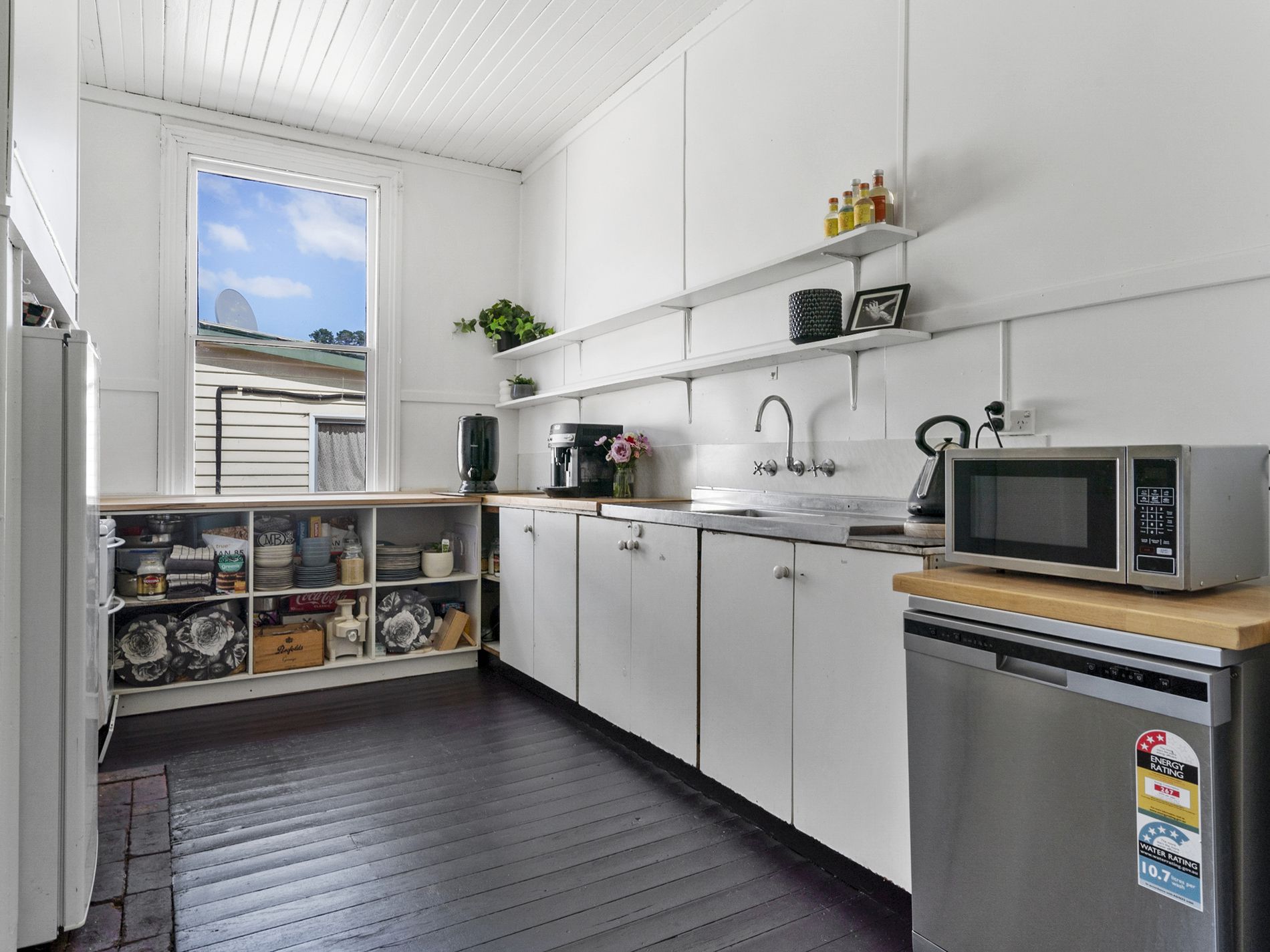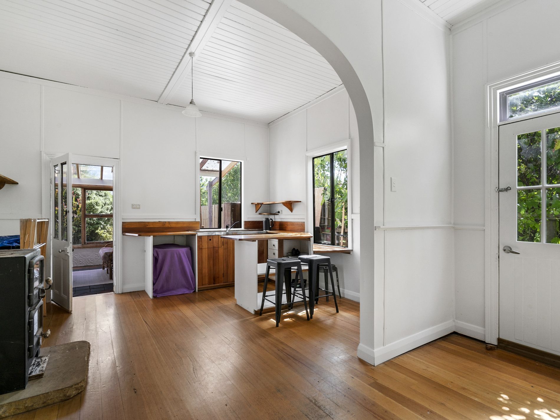 The property has been informally separated into two residences; the main space offers three bedrooms along with a kitchen and formal dining as well as a very spacious living room that provides wood heating and views over Port Cygnet.