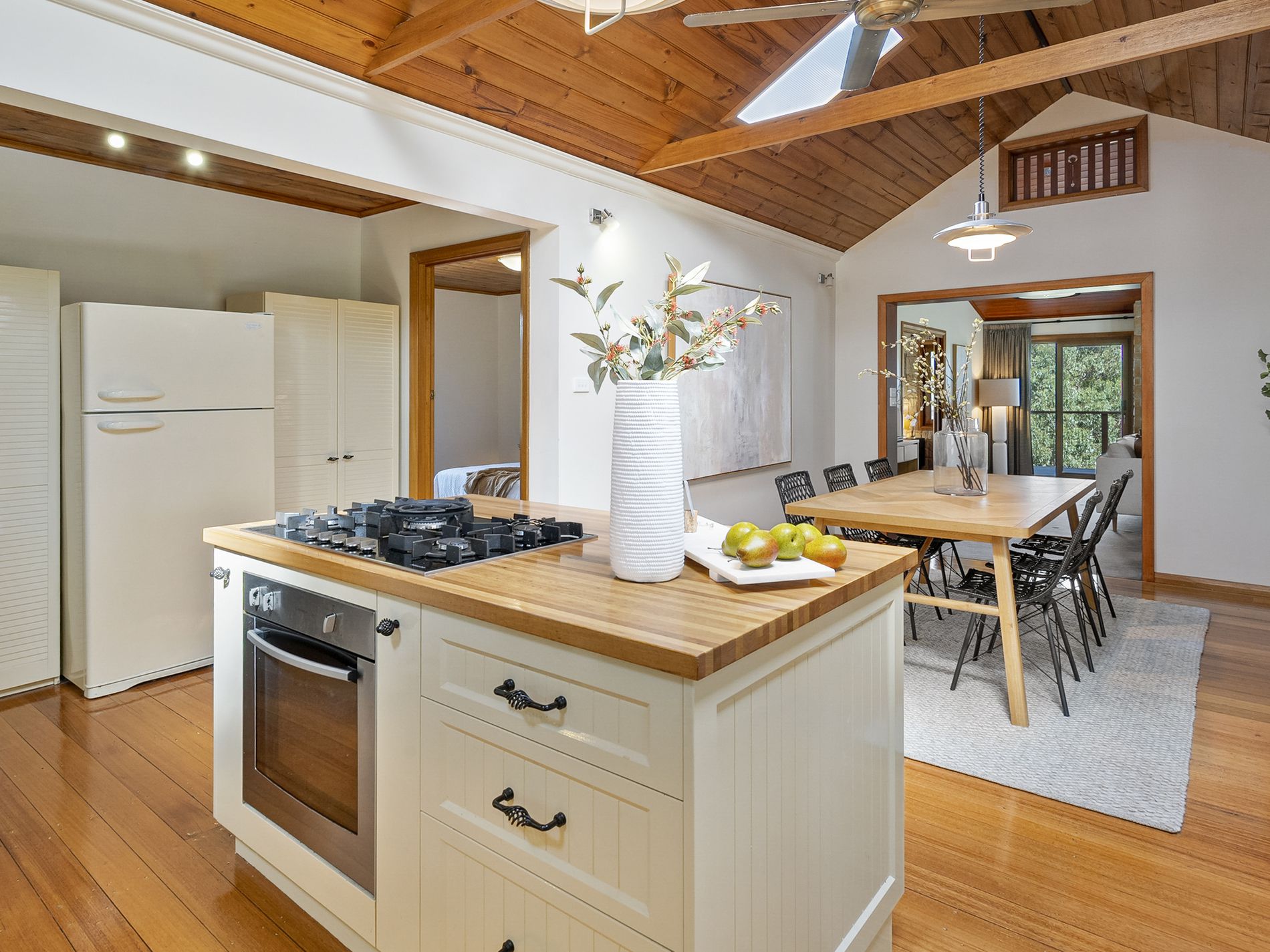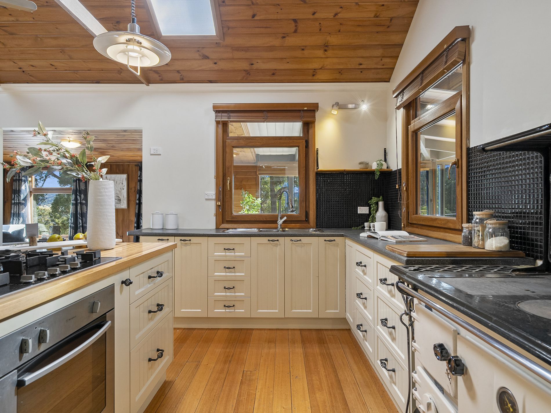 The kitchen has retained its original country charm with Oak benchtops, plenty of storage and preparation space as well as the gorgeous, freestanding Stanley wood stove.
