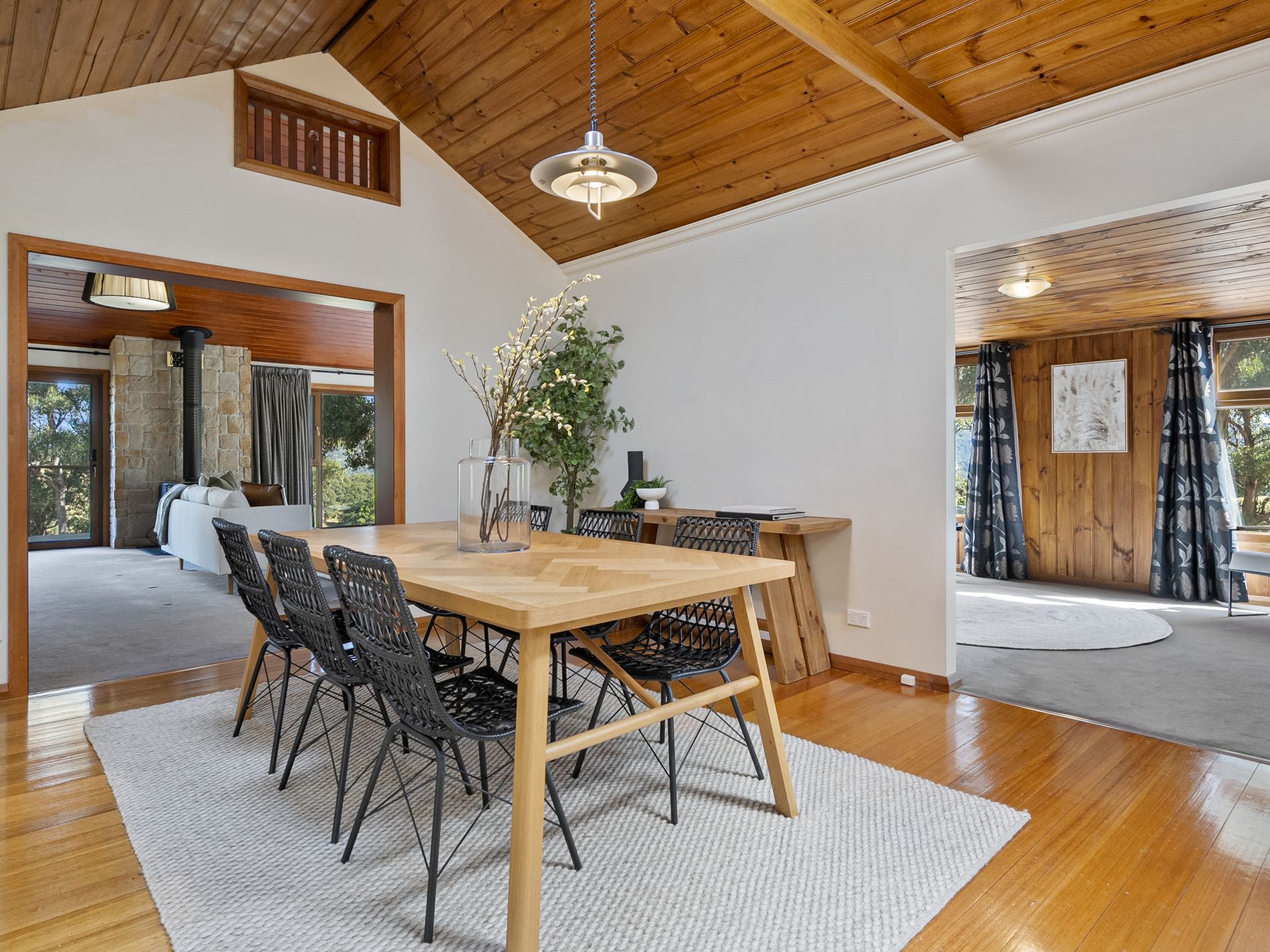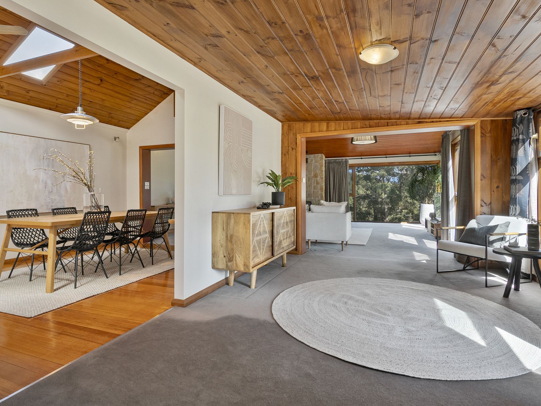 The incredibly spacious living area is the heart and soul of the home and boasts floor to ceiling corner windows that perfectly frame those expansive views. Dual opening, double glazed, PVC windows and doors have been installed right throughout the home and aid in effectively keeping the warmth in, while still maintaining the aesthetic of natural timber finishings.