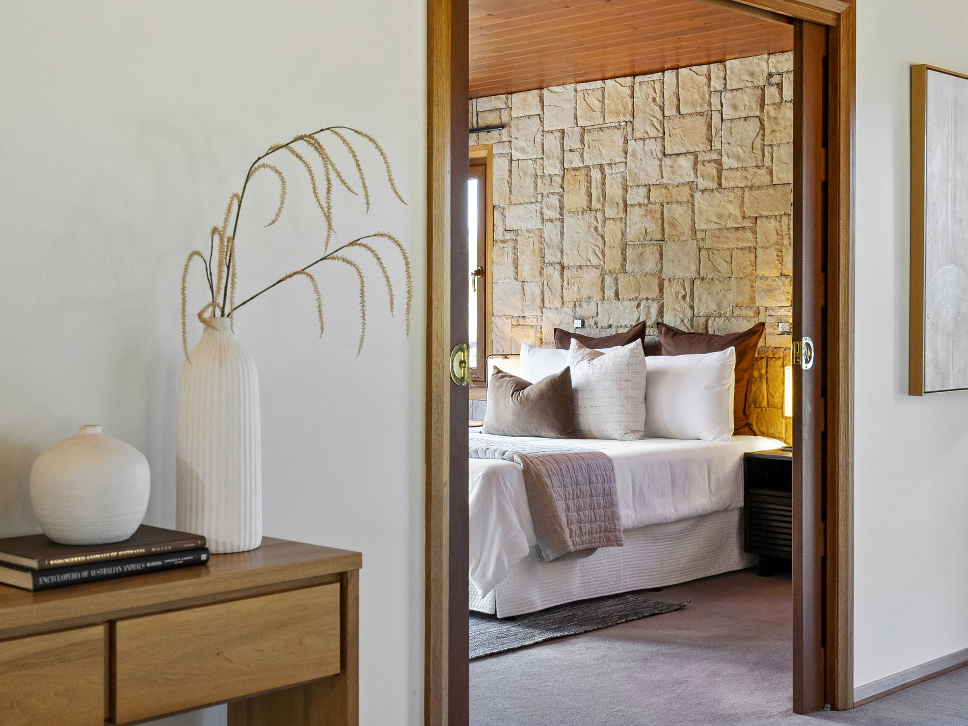The home provides three spacious bedrooms, and the master suite has been finished with a striking sandstone feature wall as well as a walk in robe and full ensuite – complete with a claw foot bath.