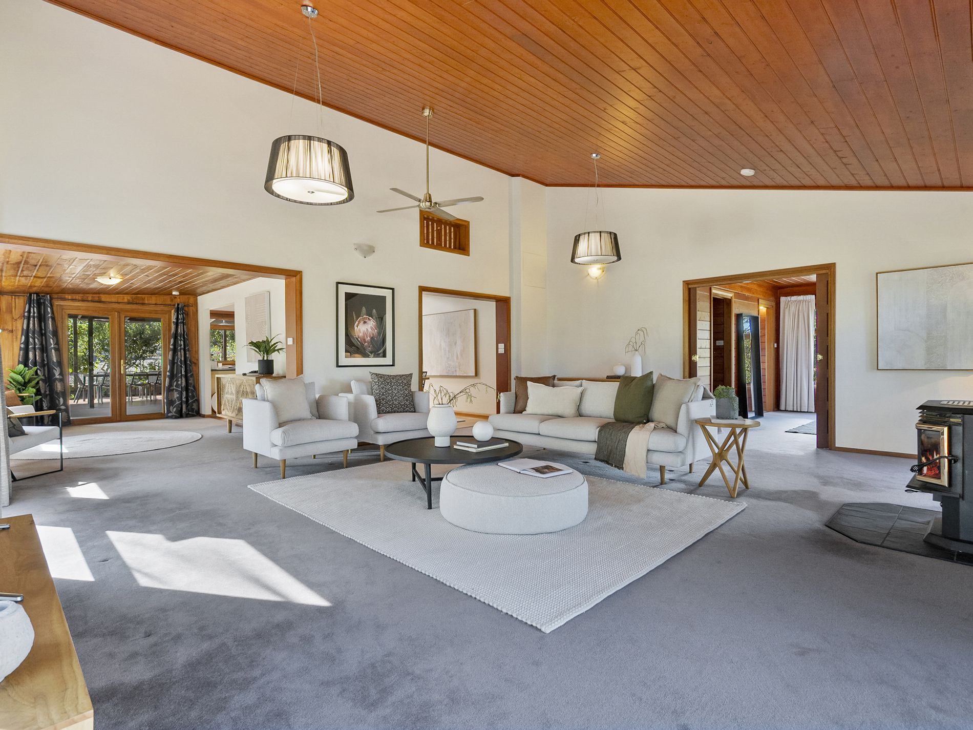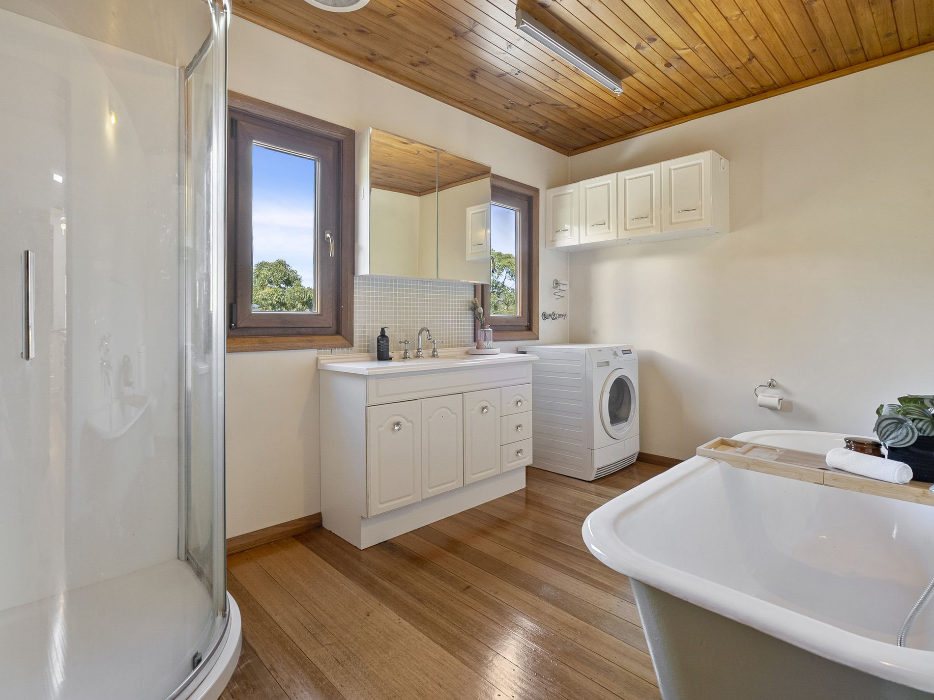 Part of this garage has been cleverly converted to a guest suite or rumpus area and provides a kitchenette, bathroom and wood heating. This space also captures those impressive views over the river.