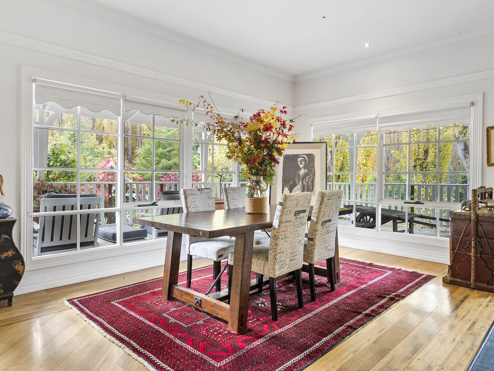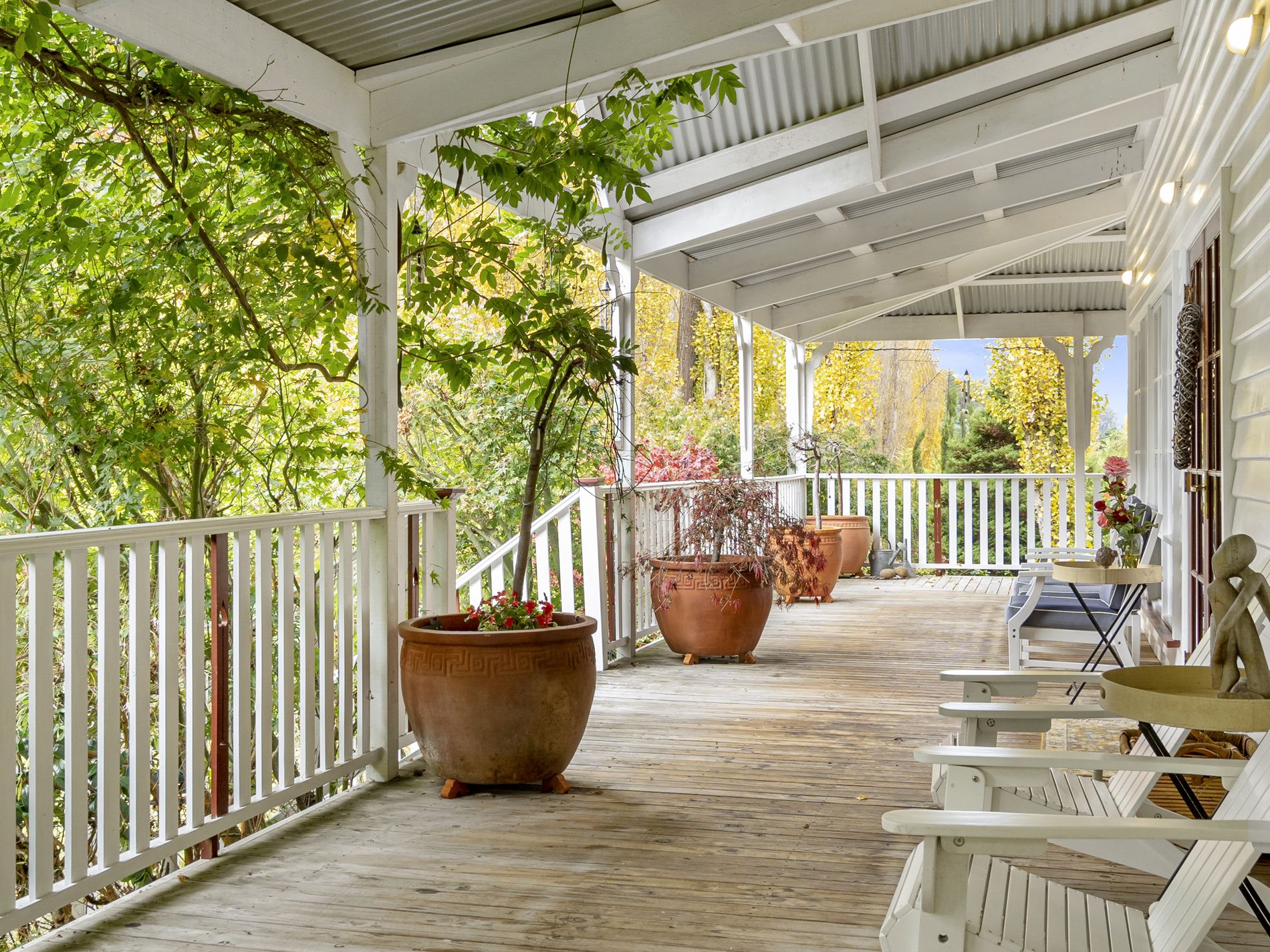 The 4 bedroom, 2 bathroom weatherboard home features spacious open-plan kitchen, living & dining with hardwood timber floors and 2 sets of French doors opening out to a large 3m-wide wrap-around veranda with sublime views of the gardens. A modern country kitchen with timber bench tops, electric & wood-fired cooking and a walk-in butler’s pantry. Ample dining area and living space and 2 additional sitting/lounge areas. All bedrooms are spacious doubles and the master suite includes an ensuite and walk-in wardrobe. An attractive main bathroom with separate bath & shower and a double-vanity and a good-sized laundry with a generous amount of linen storage space. Additional period features of the home include original open fireplaces & mantles, high ceilings, timber windows, intricate cornicing & skirting and feature lights & stained class. A comfortable feel maintained throughout the home with wood-heating and electric heating.