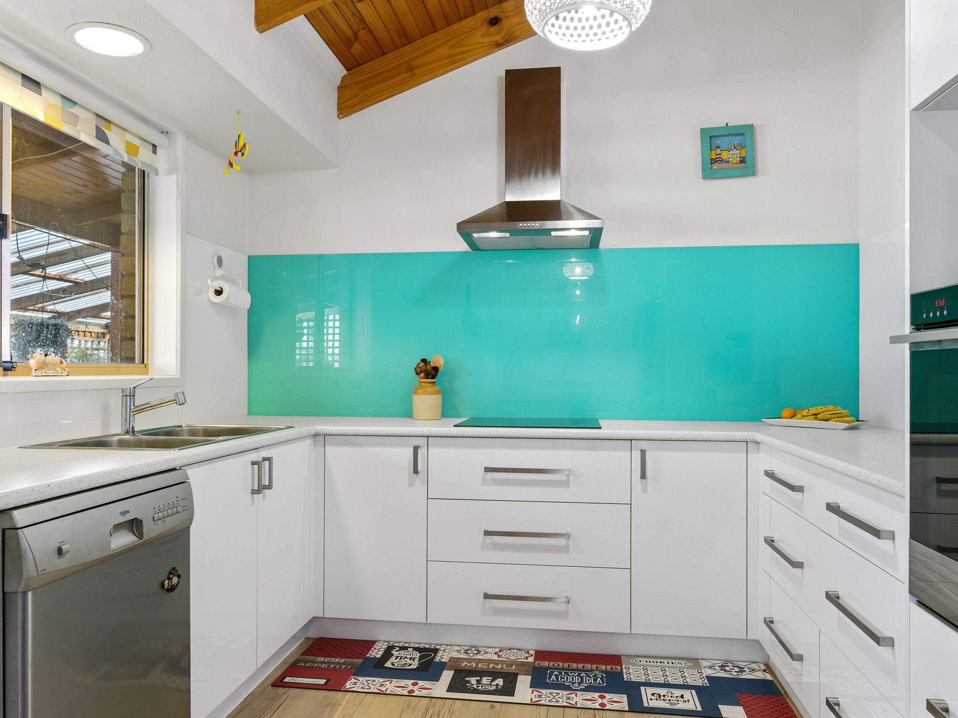 The well equipped kitchen is bright and modern, and you know we here at Homelands Property love a little bit of teal.