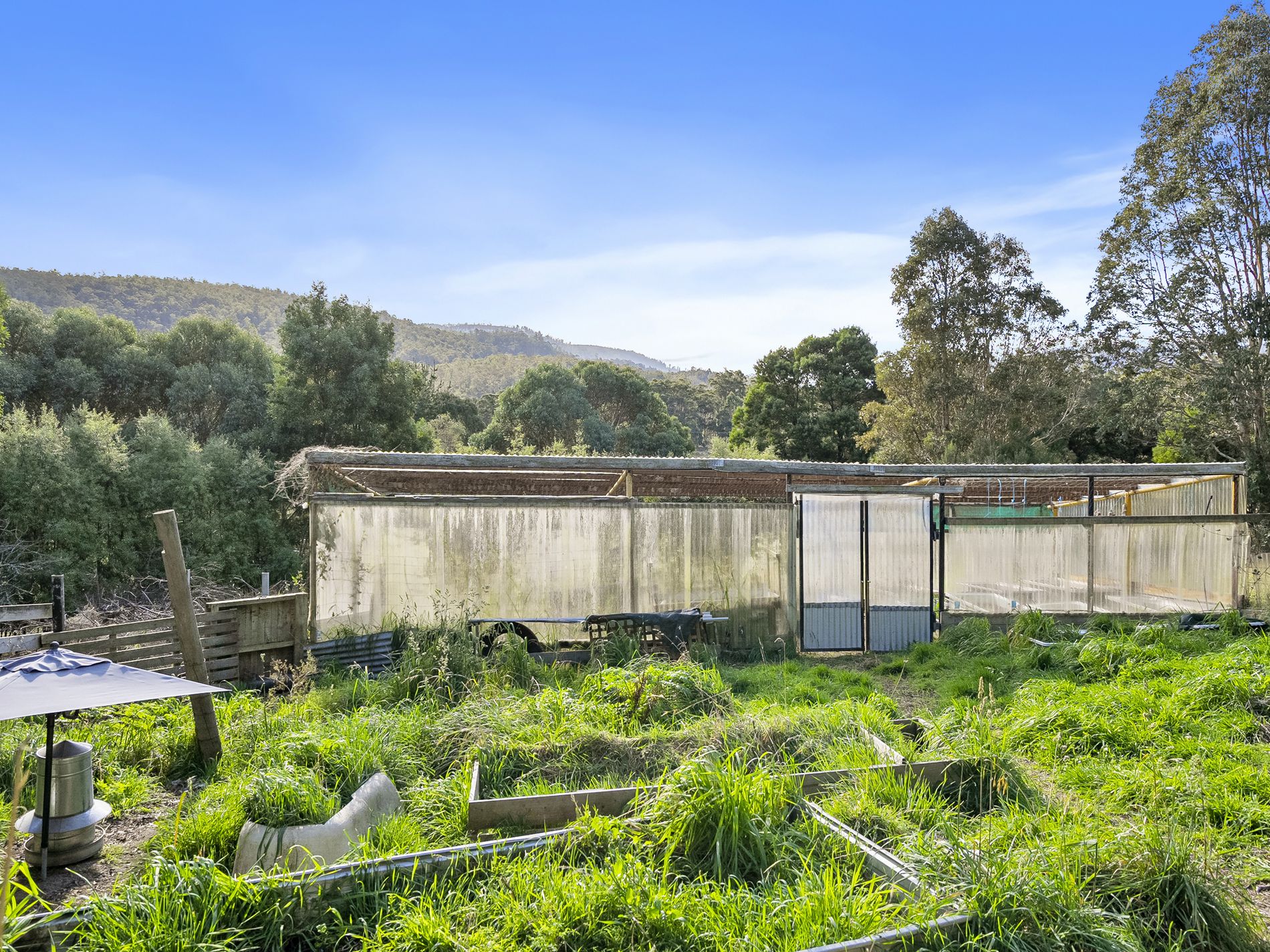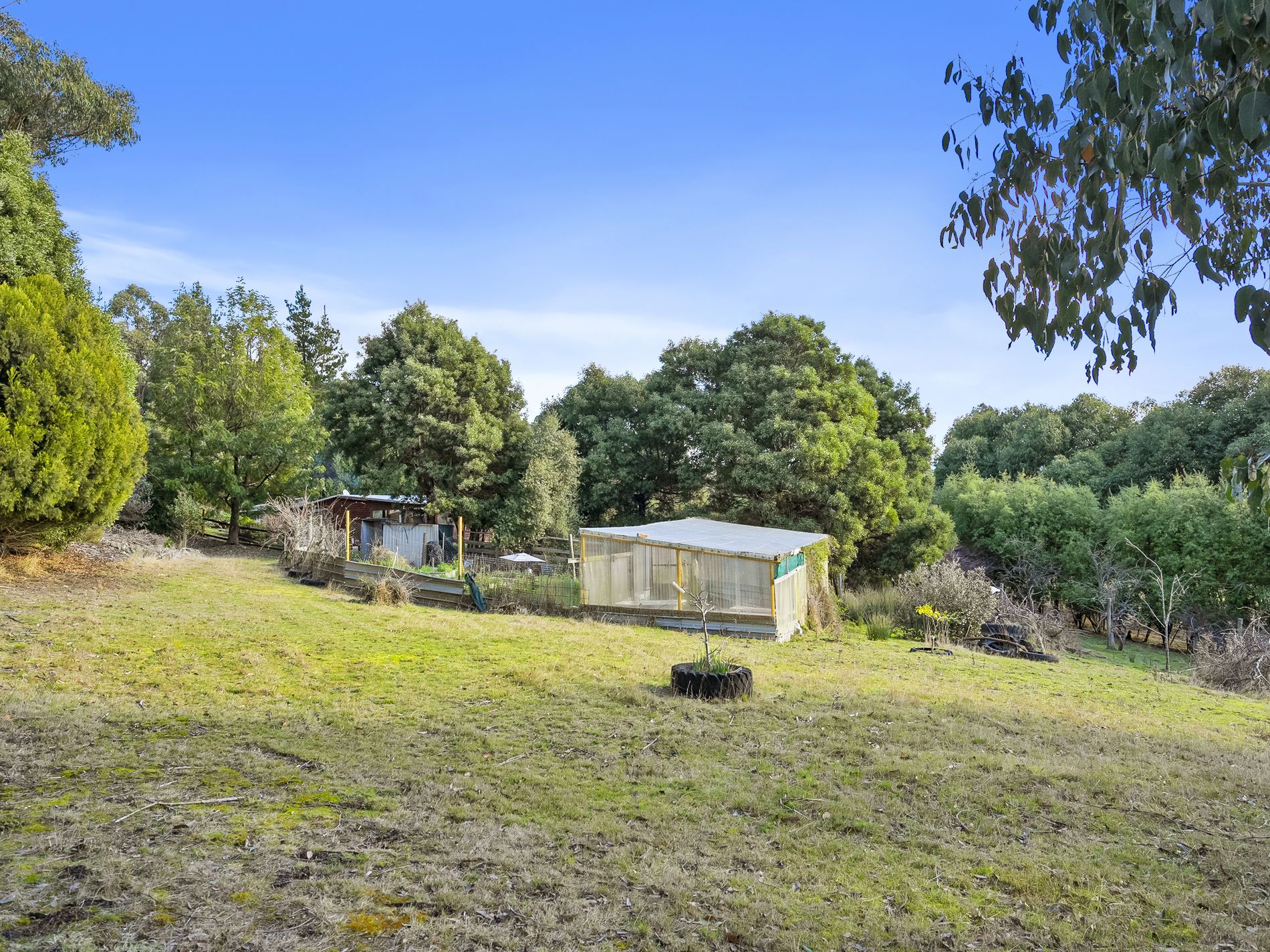The property has sheds, green house, Veggie patches and fruit trees. On the property is a dwelling that has 3 bedrooms, 1 bathroom and a large open plan living area.