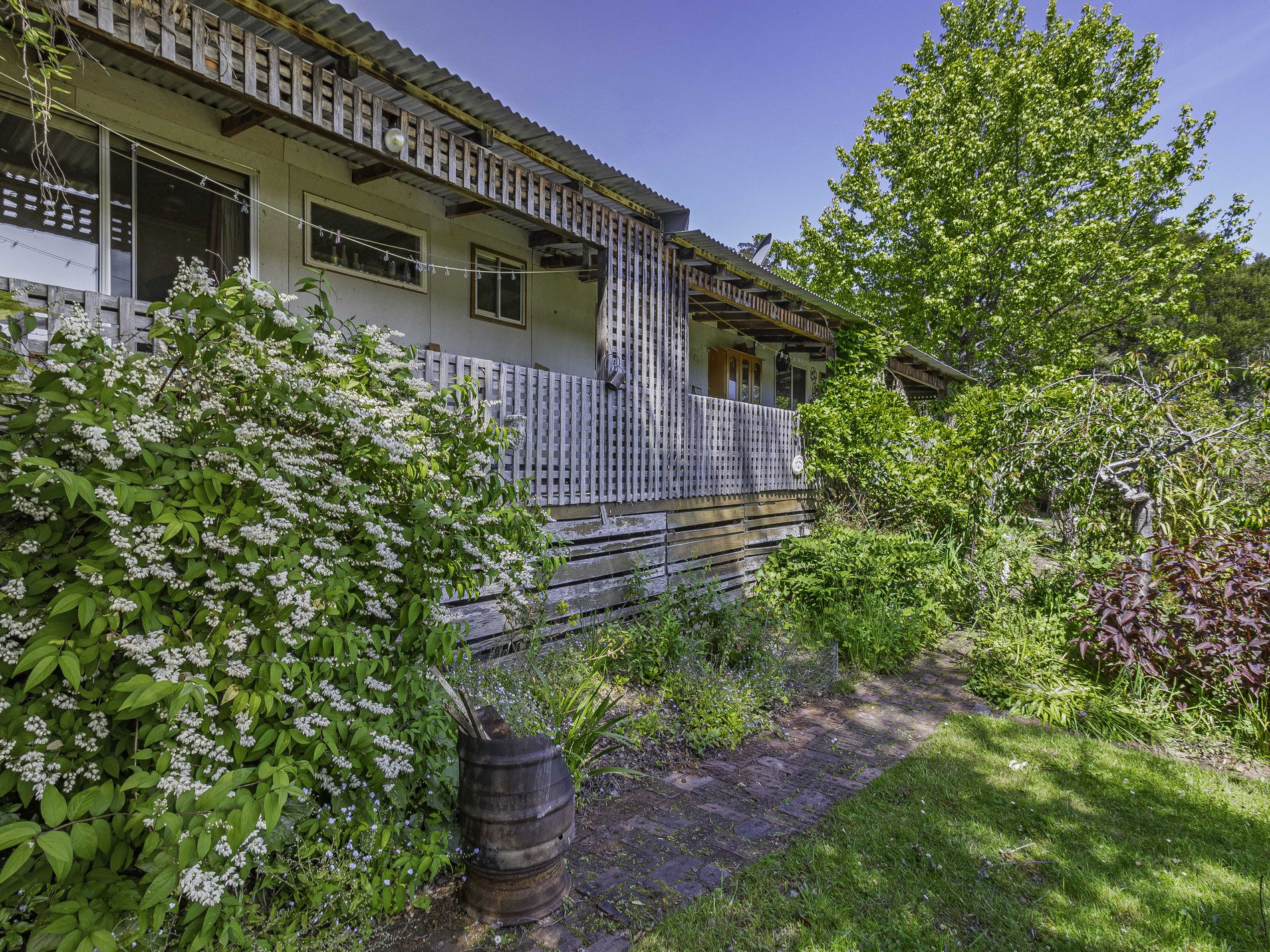 Convenience is key with a tandem carport offering easy access to the home, and a ramped entry at the front ensures accessibility for all. One of the property's standout features is a beautiful lily pond, currently in bloom, complete with two decks, it offers the perfect spot to relax and unwind, surrounded by nature's tranquility. The property also boasts a variety of fruit trees, berries, rare grasses and cottage flowering shrubs, creating a truly special and private environment.