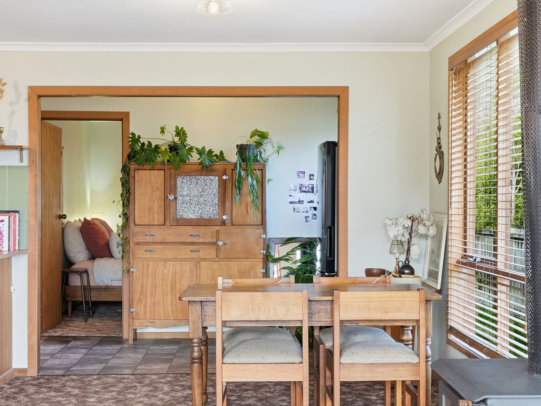 Recent updates have brought a fresh, modern feel while maintaining its warm, relaxed character. The semi-open plan design connects the kitchen, living, and dining zones, which are each filled with natural light and warmed by the freestanding wood heater.