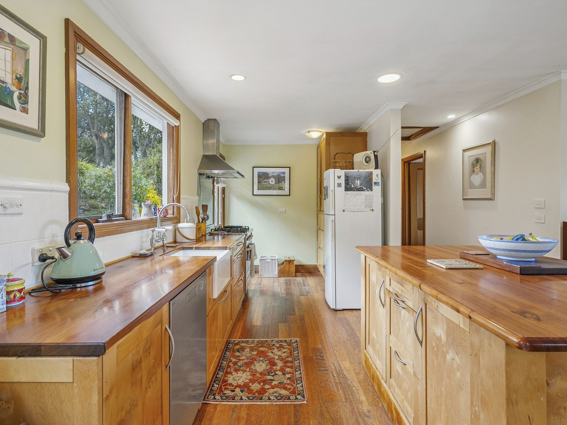The interior design choices were obviously inspired by the stunning surrounds, and the use of timber and glass has together created a beautiful retreat style space. The kitchen, living, and dining areas are open plan, and there is a centrally positioned wood heater that keeps the house cosy all year round. The kitchen is a showpiece, having been handcrafted from Birds Eye Huon Pine and Blackwood and paired with quality stainless steel appliances. There are four generously proportioned bedrooms, two with built in robes, and the recently renovated bathroom showcases a local artist's ceramic sink, alongside quality finishes and heated floor tiles.