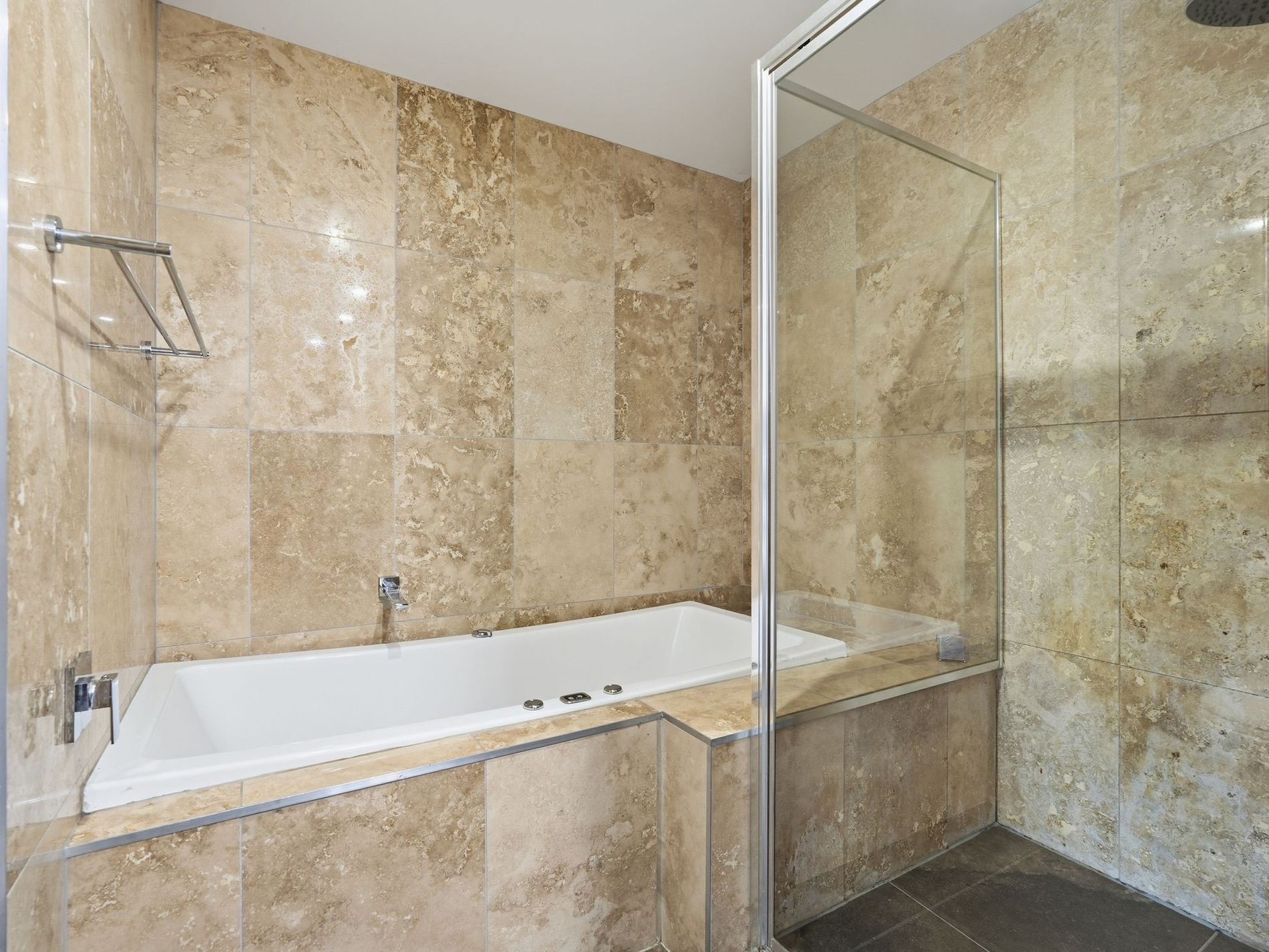 A hallway leads to the master bedroom which includes walk in robe and en-suite with a luxurious spa bath.