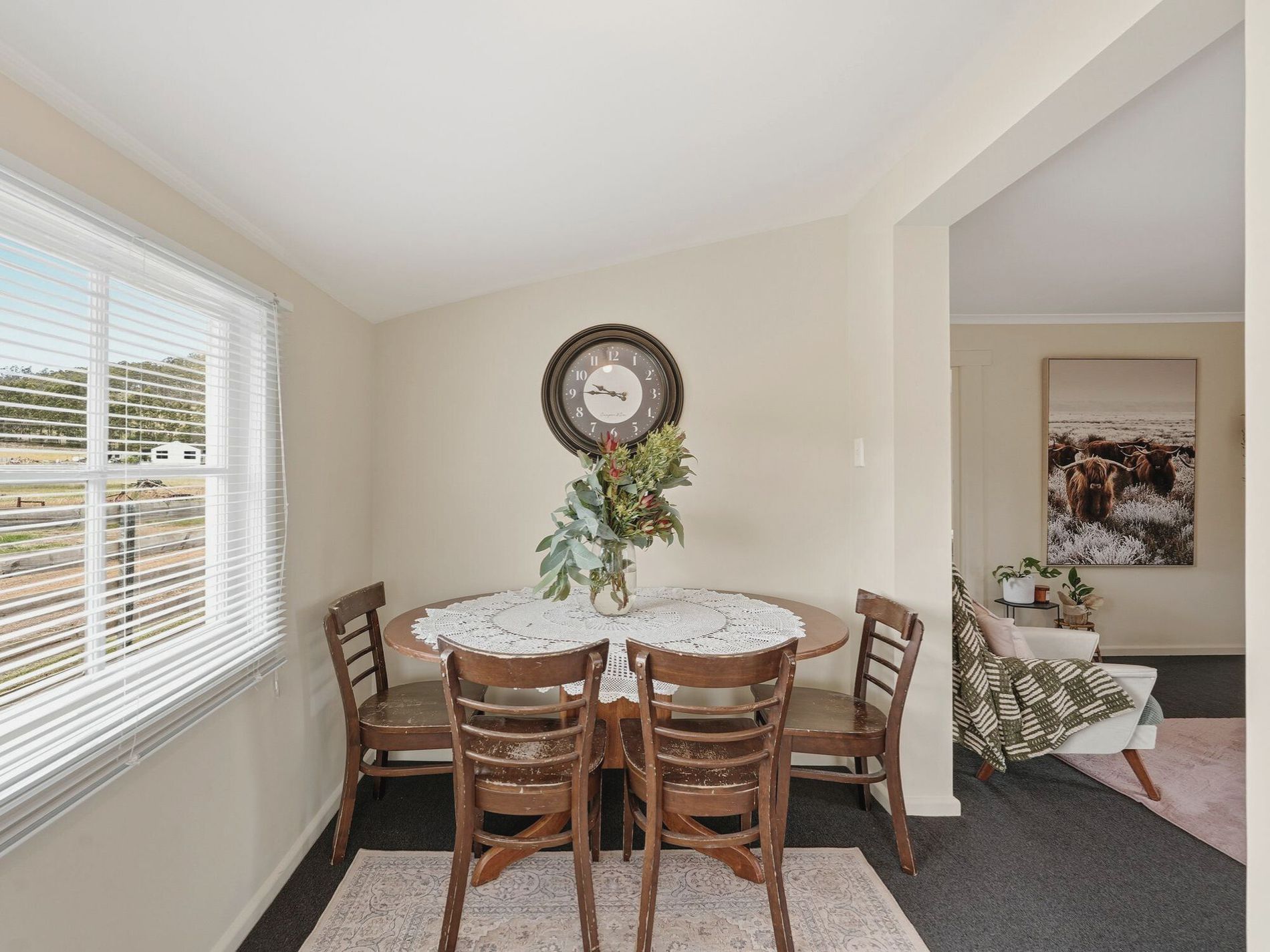 A generous lounge room provides another comfortable living zone, while outside, a covered entertaining area makes the most of the peaceful rural outlook. The home is fully fenced, has its own access, along with garden sheds and a double carport/shed.