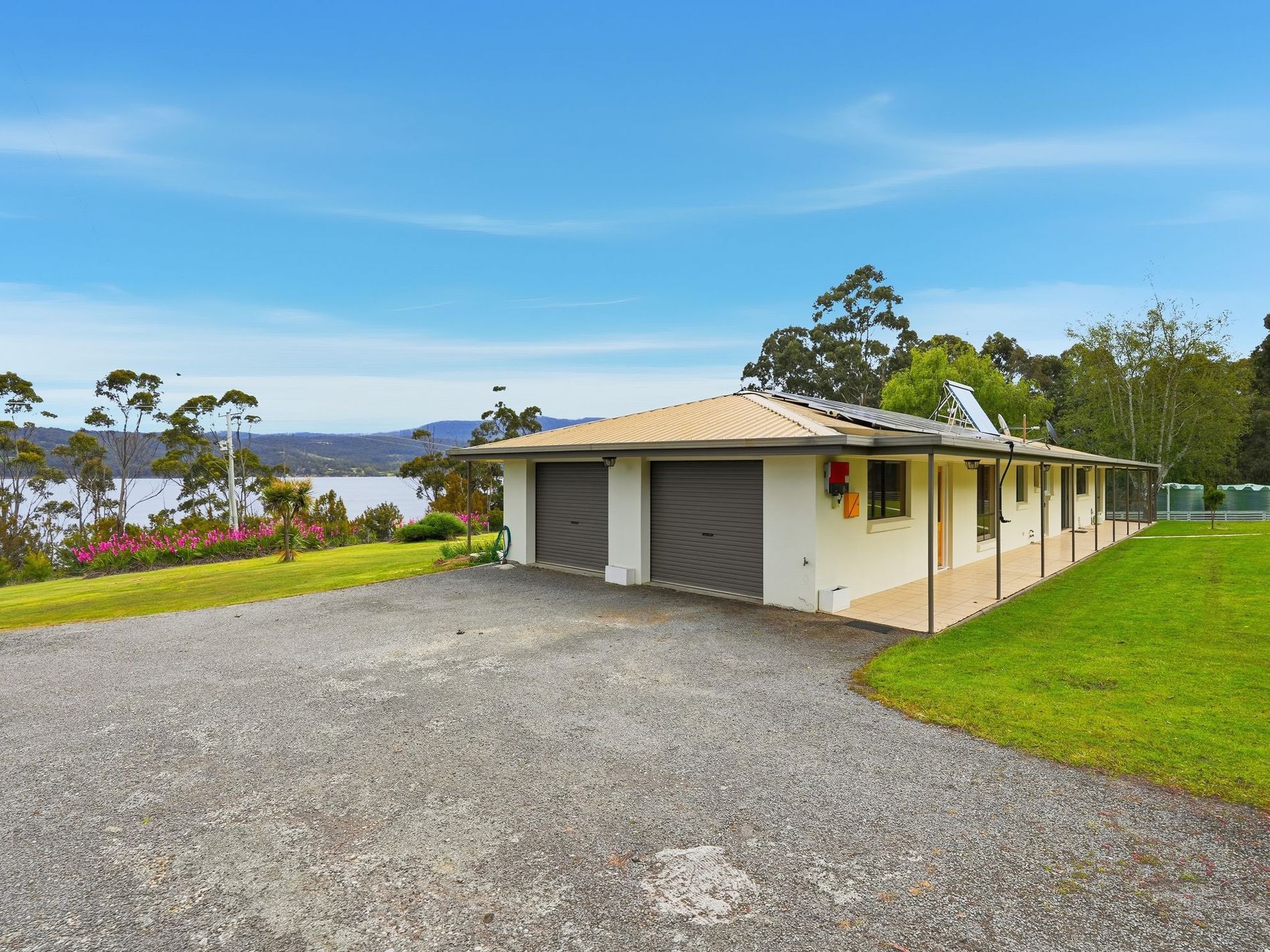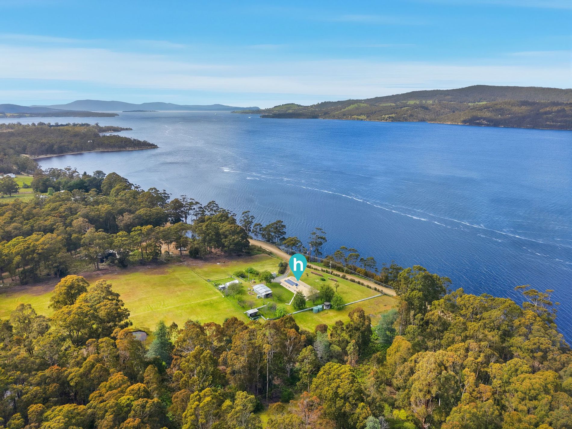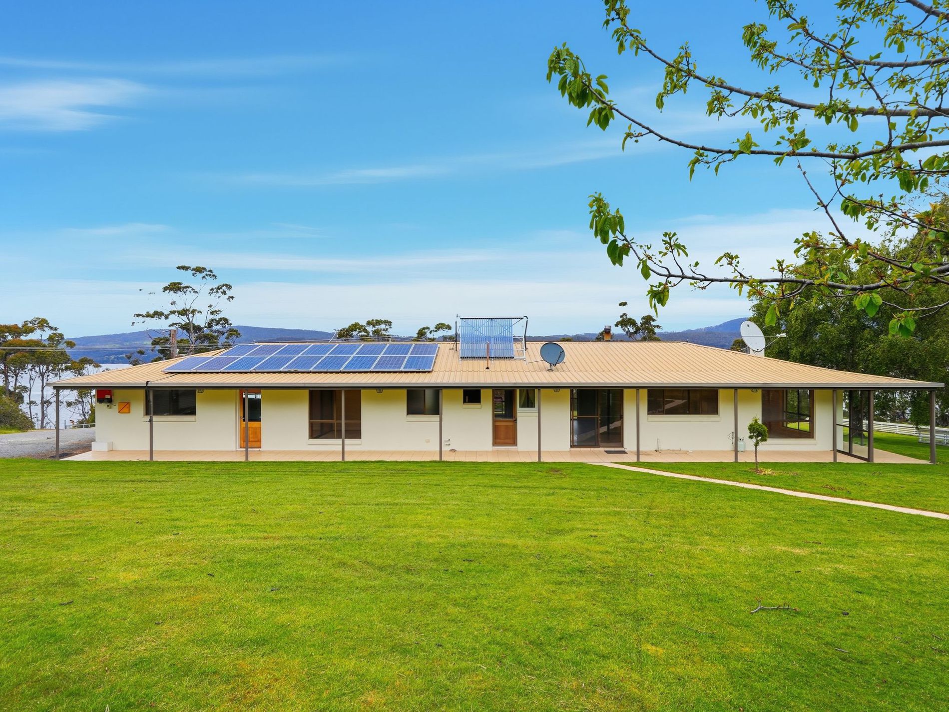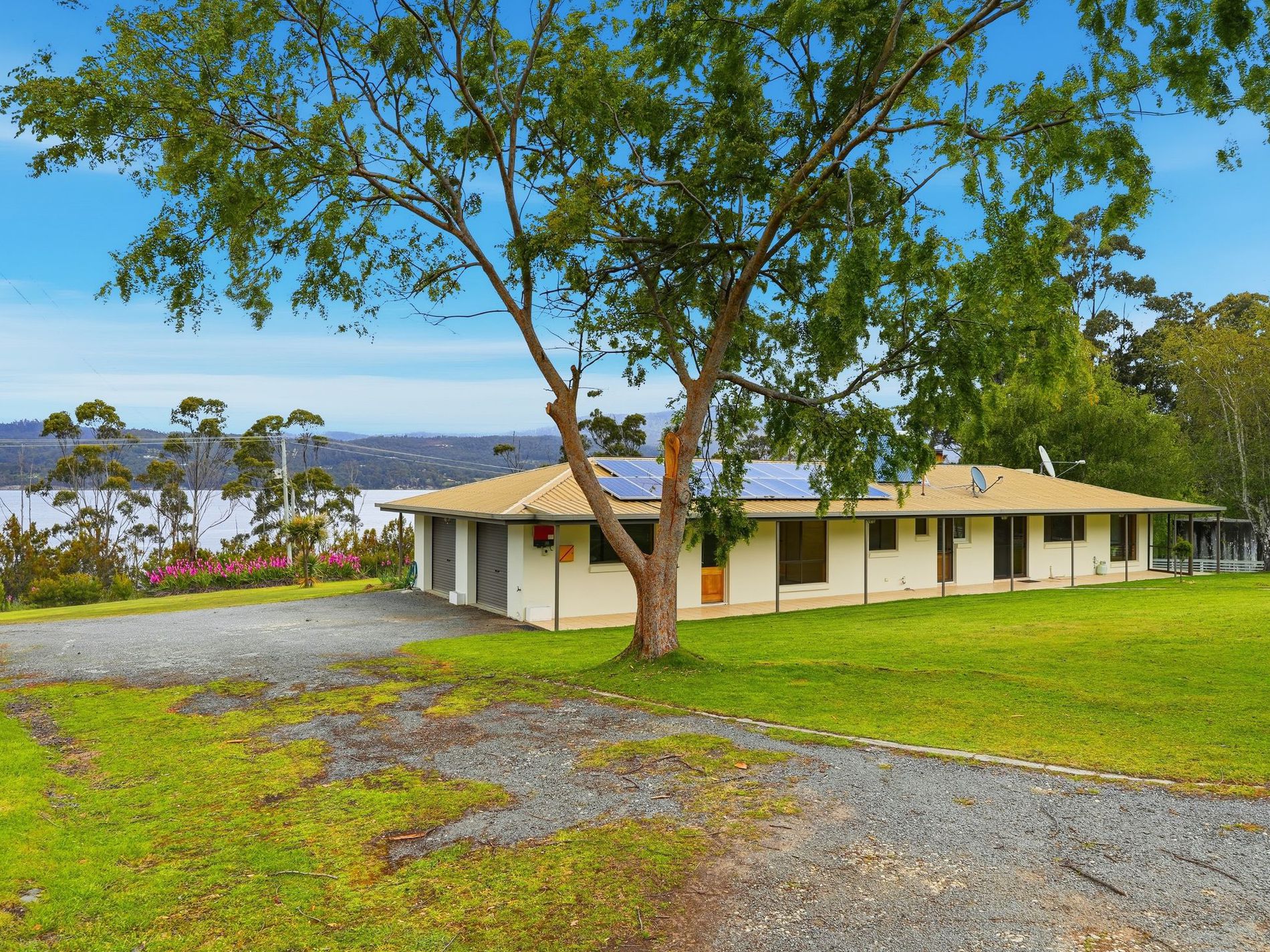 This solid brick rendered residence has just celebrated its 40th birthday and stands as proudly as the day it was first constructed. The home was positioned to enjoy the very best of the views over the Huon River, while still allowing space for substantial house gardens and multiple paddocks.