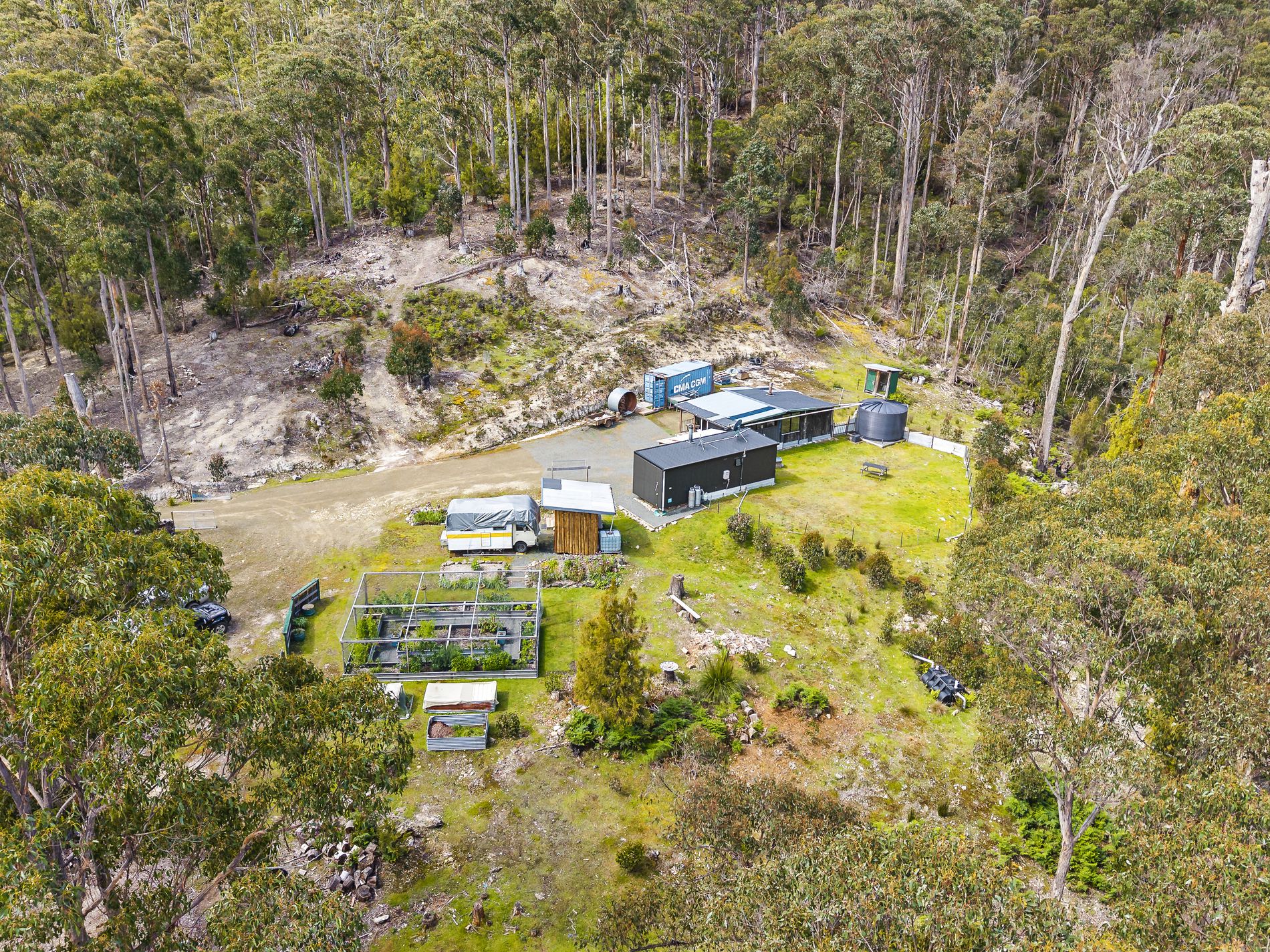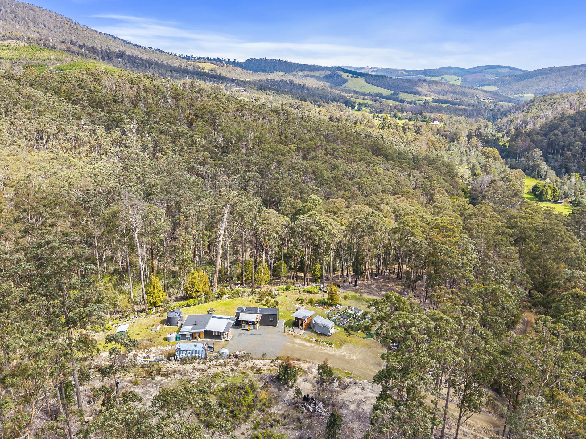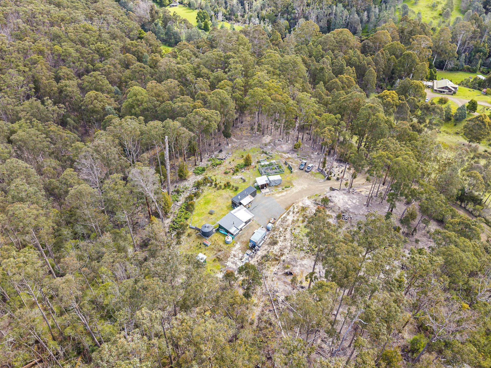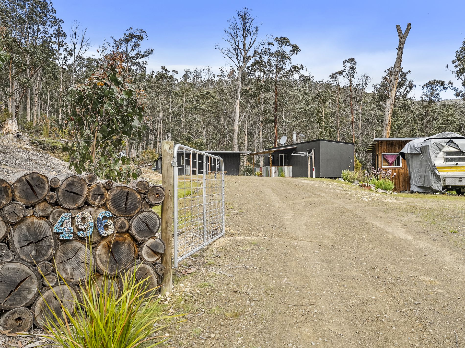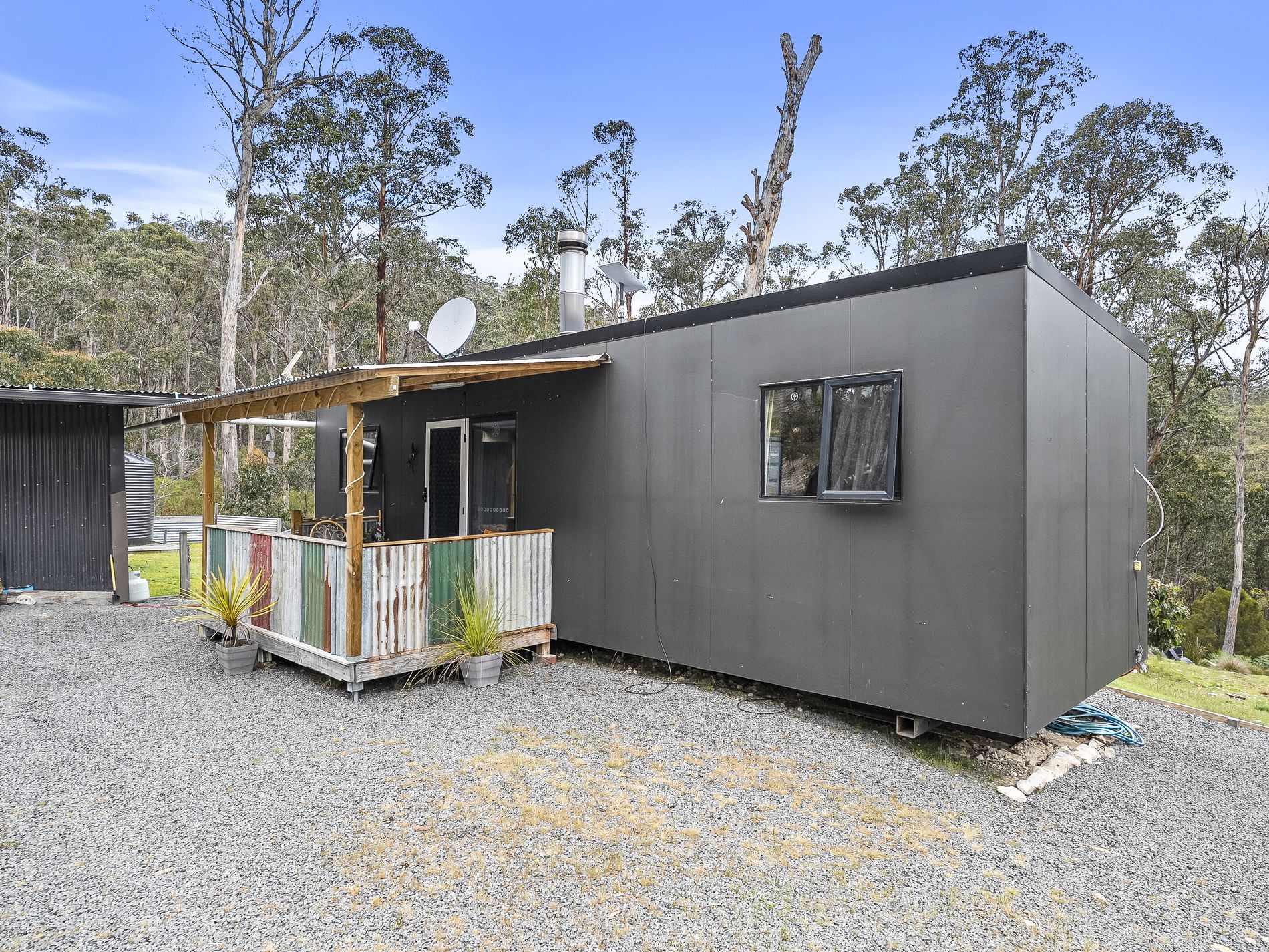 Located on a quiet rural road with very little passing traffic, this appealing land lot enjoys peace & quiet along with picturesque native surrounds. The 2.5 acre lot includes a modern demountable tiny home, also a rustic shack-style studio shed, a separate ablution block and some additional storage space. The land is mostly comprised of level and gently-sloping ground being about half bush and half clear and there is good established access off the council road.