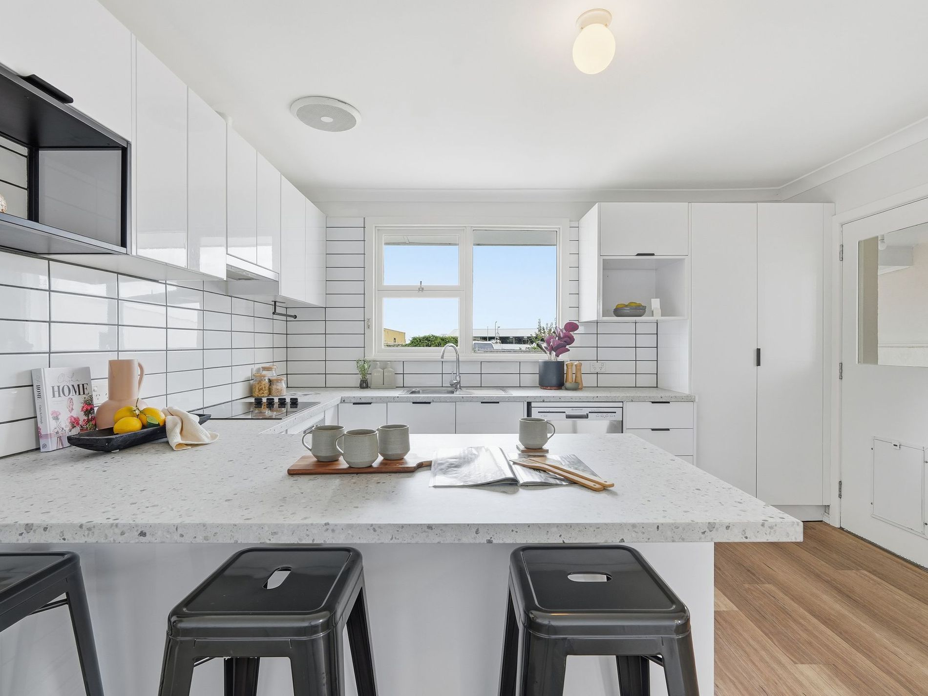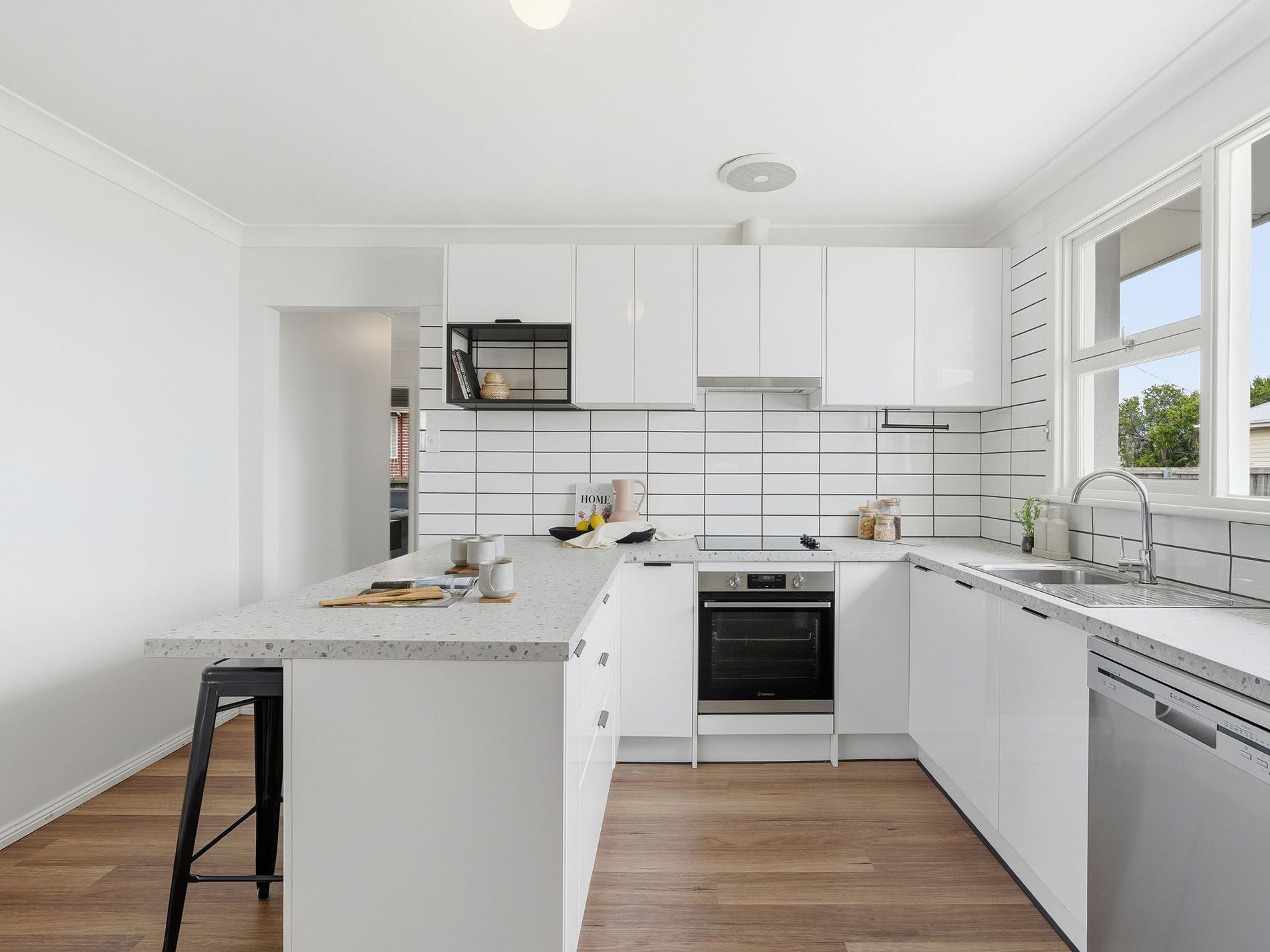 The kitchen is contemporary and fresh, with loads of storage and a practical layout that works beautifully for busy mornings and relaxed meals at home.