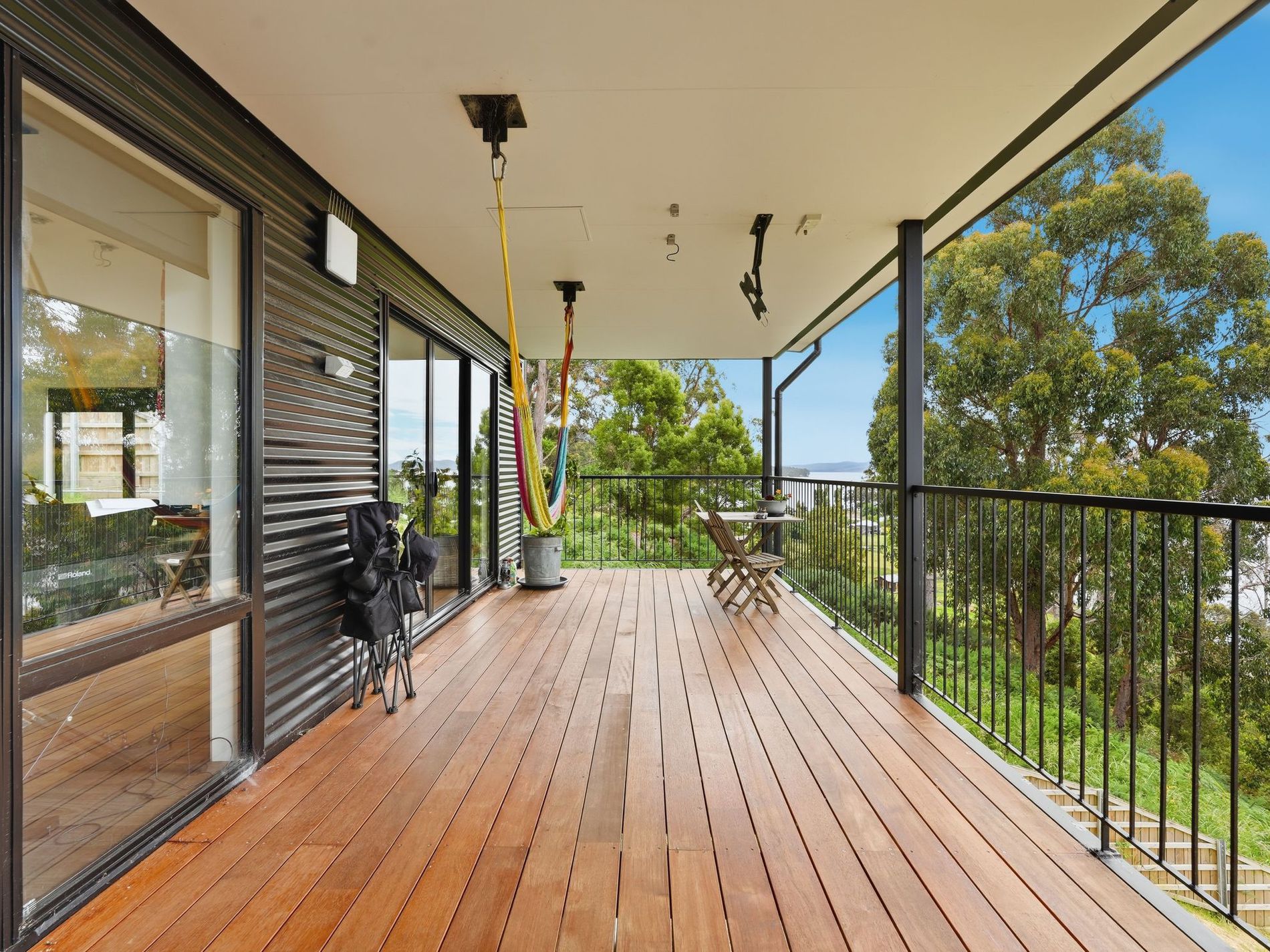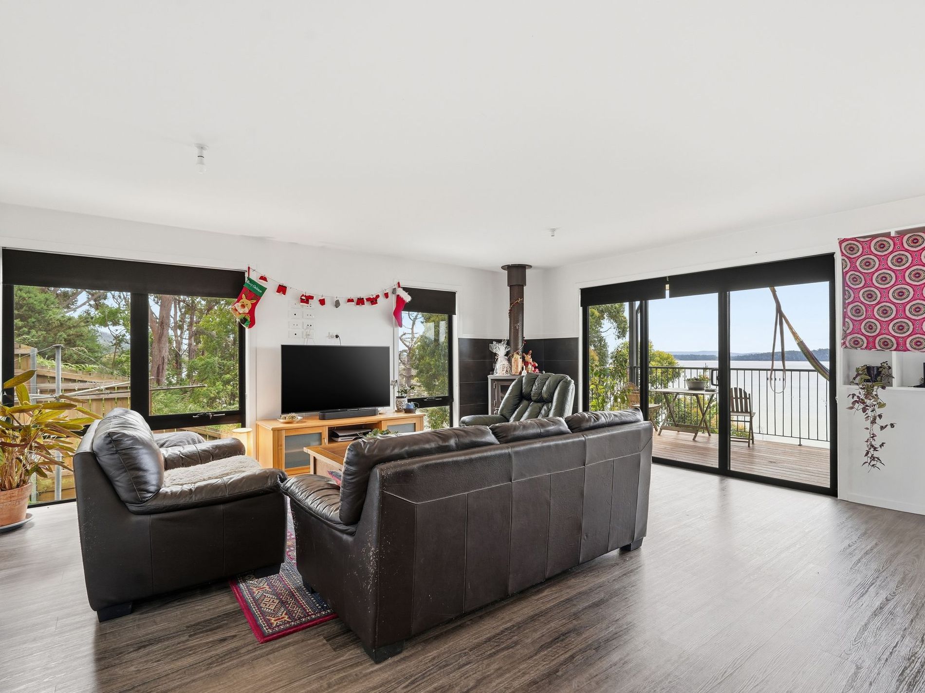 This striking three-bedroom home enjoys absolutely breathtaking views over the D’Entrecasteaux Channel, stretching all the way to Bruny Island and beyond.