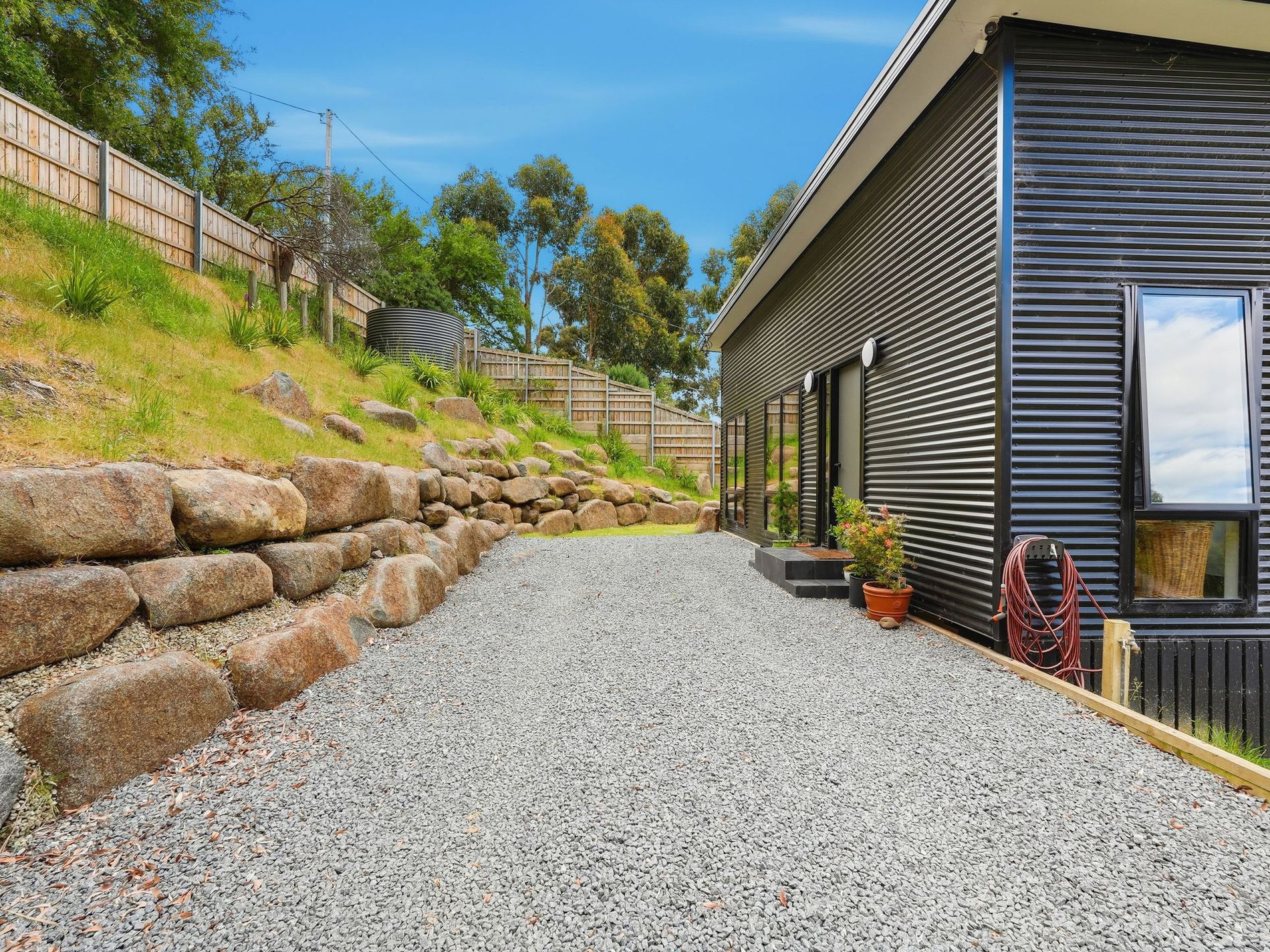 The kitchen sits at the centre of the home and offers gorgeous concrete benchtops, an island breakfast bar, and plenty of storage. The woodheater sits centrally providing warmth throughout the entire home through the seasons.