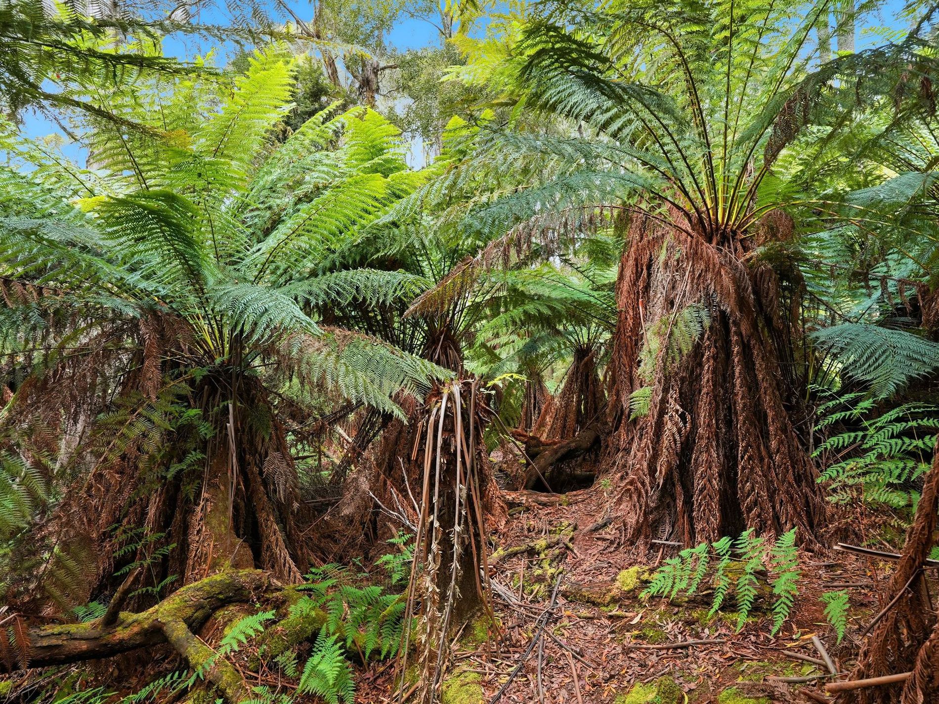 Set among towering blue gums and blackwoods, with incredible man ferns unfurling beneath the canopy, this land, on two titles, has an unmistakable, almost ethereal presence. Sunlight filters gently through the trees, dappling the forest floor and creating a calm, grounding atmosphere that’s hard to put into words — but instantly felt the moment you arrive.