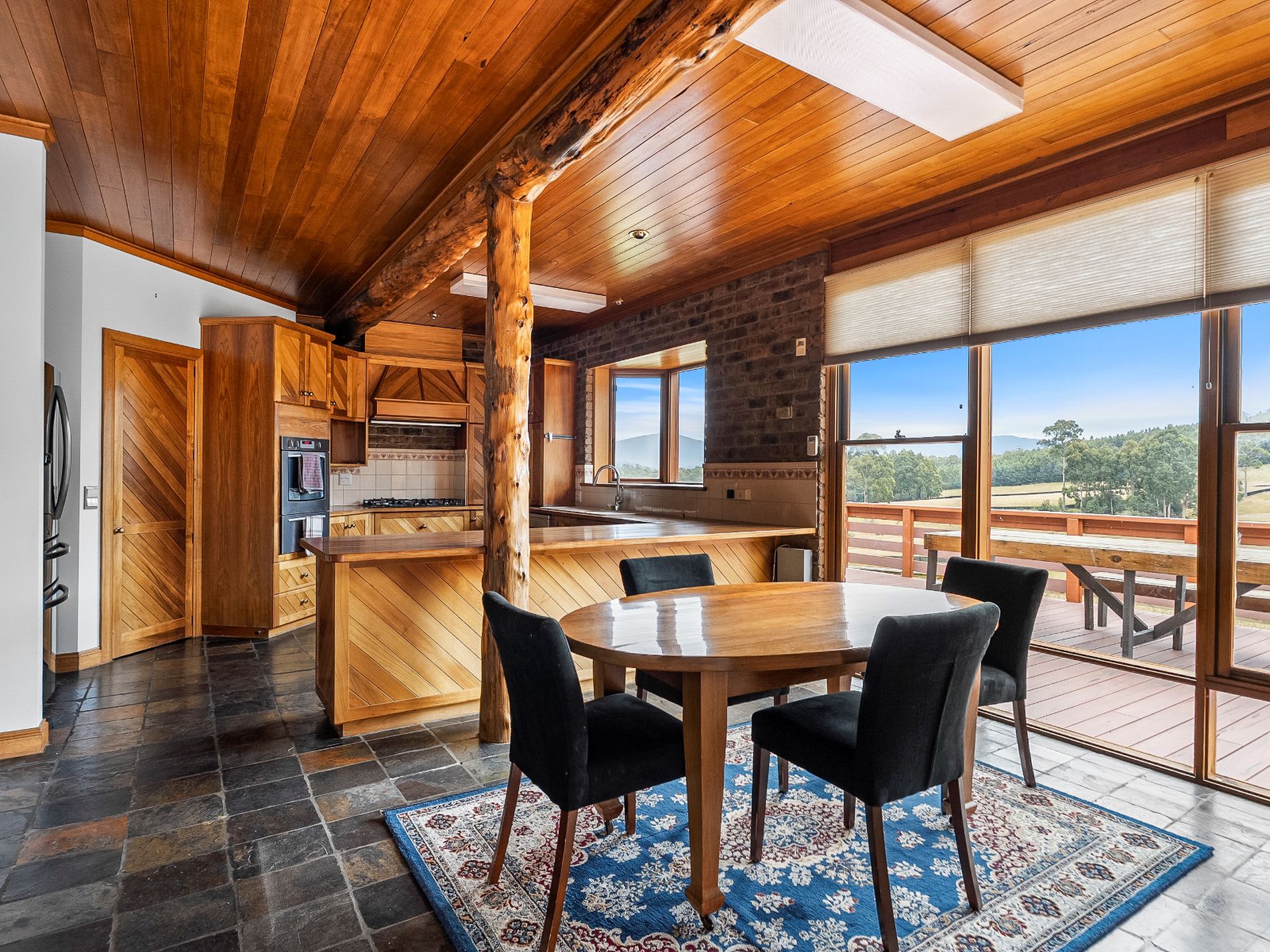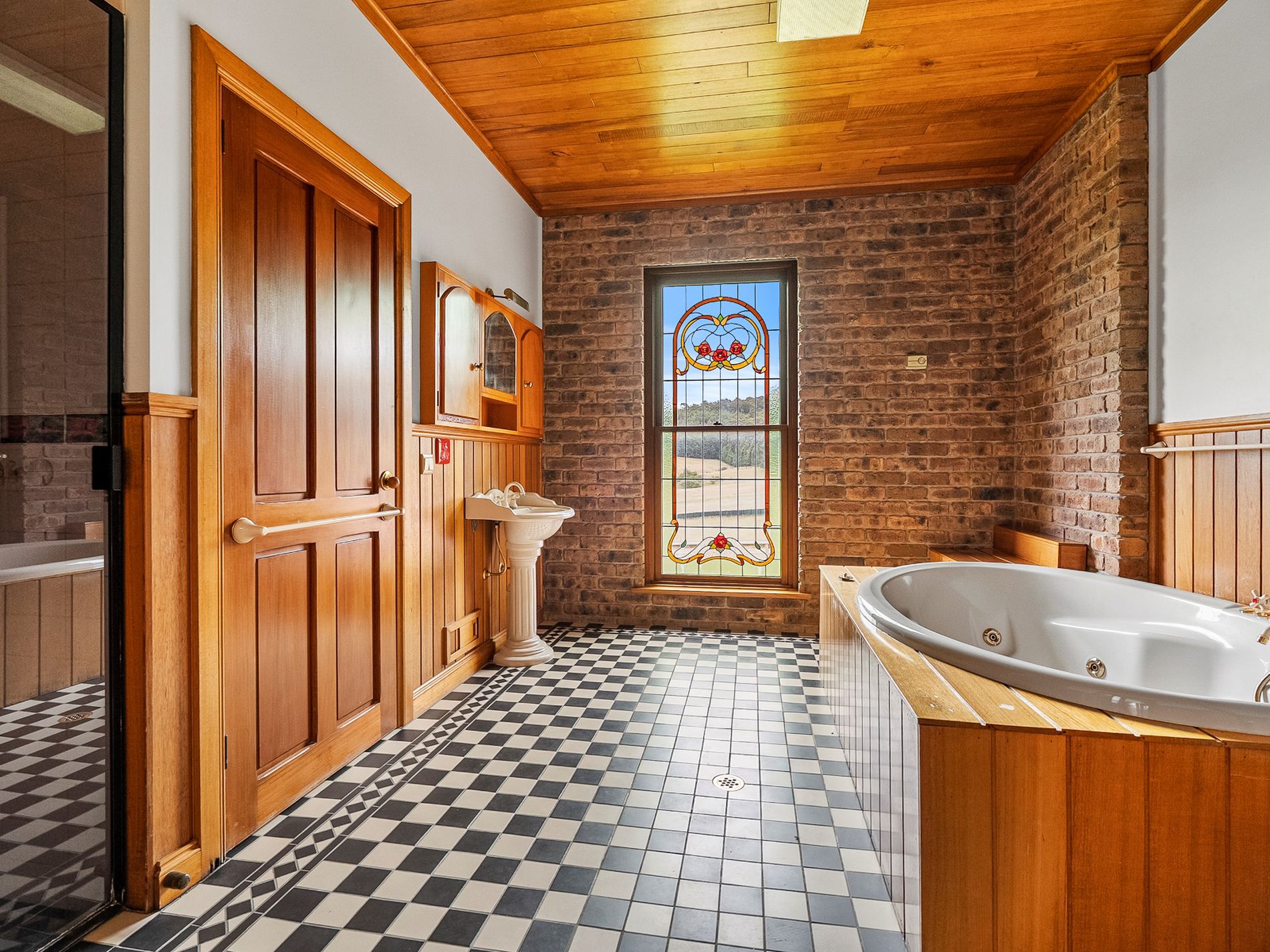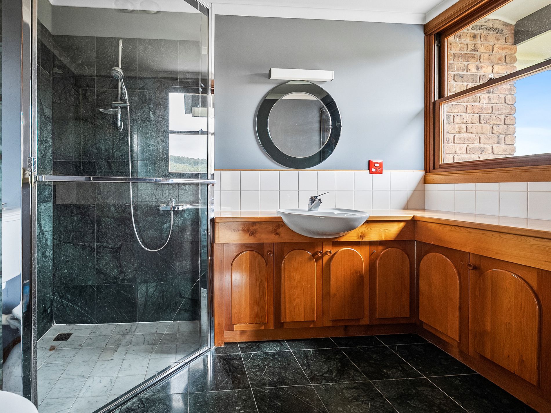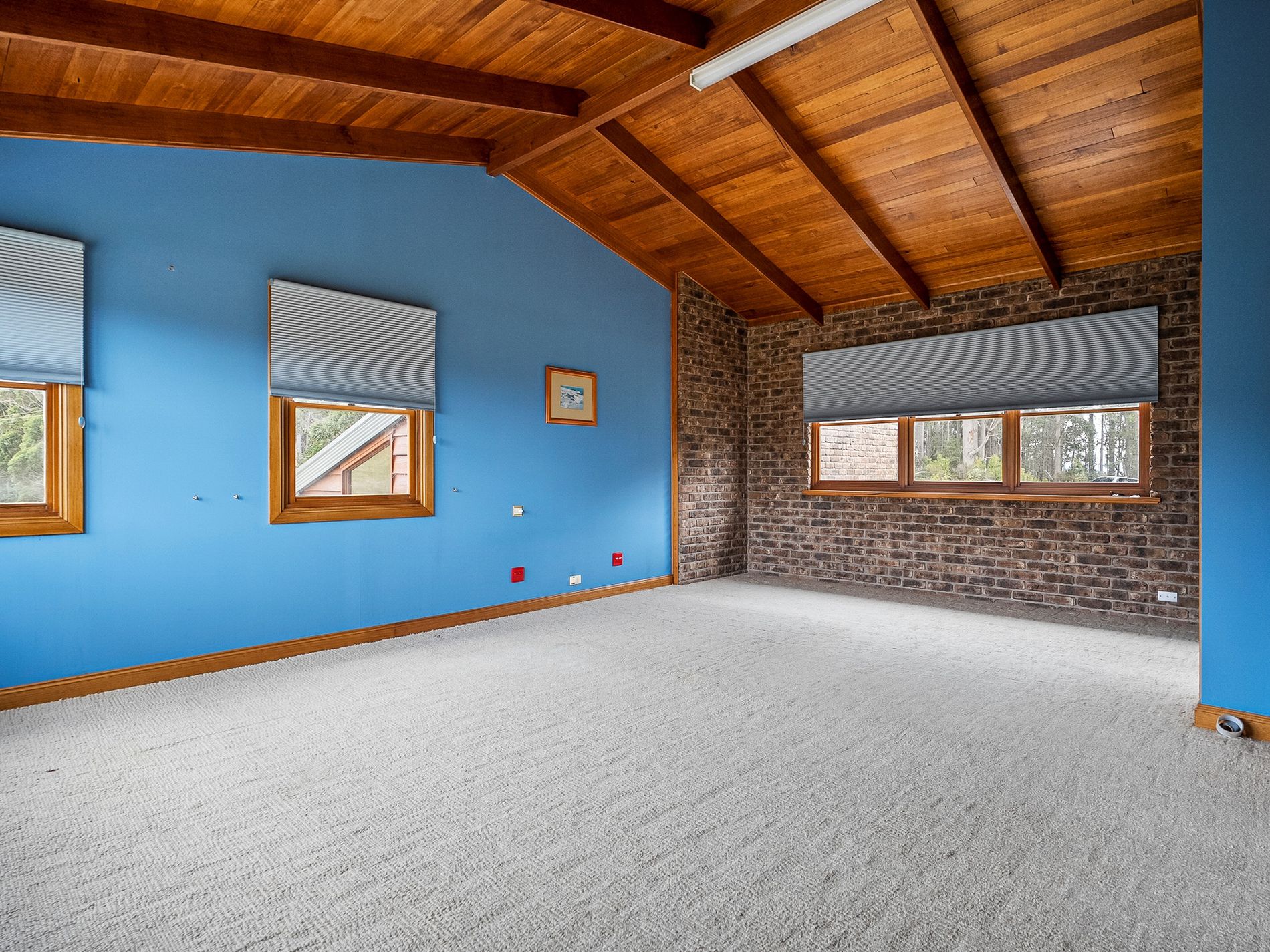 The 5-bedroom, 2 bathroom two-level brick home features an extra-large living area with raked timber ceiling, a feature fireplace and double doors which open out to a north-facing timber deck. An open-plan kitchen & dining area with slate floors and an attractive country kitchen. The main bathroom, on the ground level, includes a separate shower and spa bath along with a multi-person sauna. The upstairs level of the home features a large master suite with walk in robe & ensuite along with an additional bedroom or office.