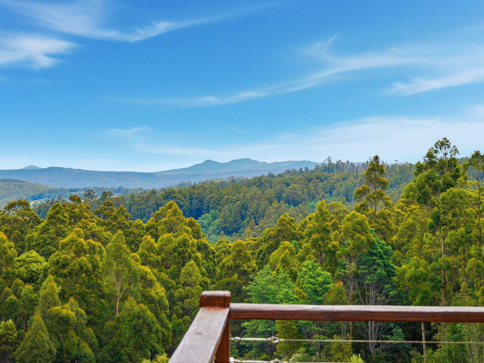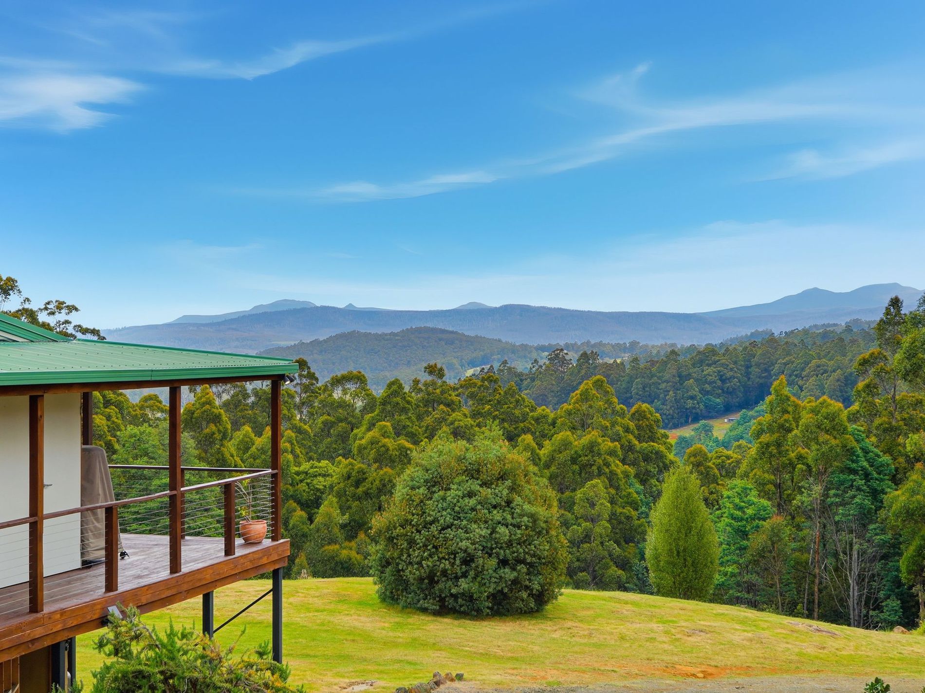 From the living area you can access the deck, which hugs three sides of the house, and boasts impressive views.