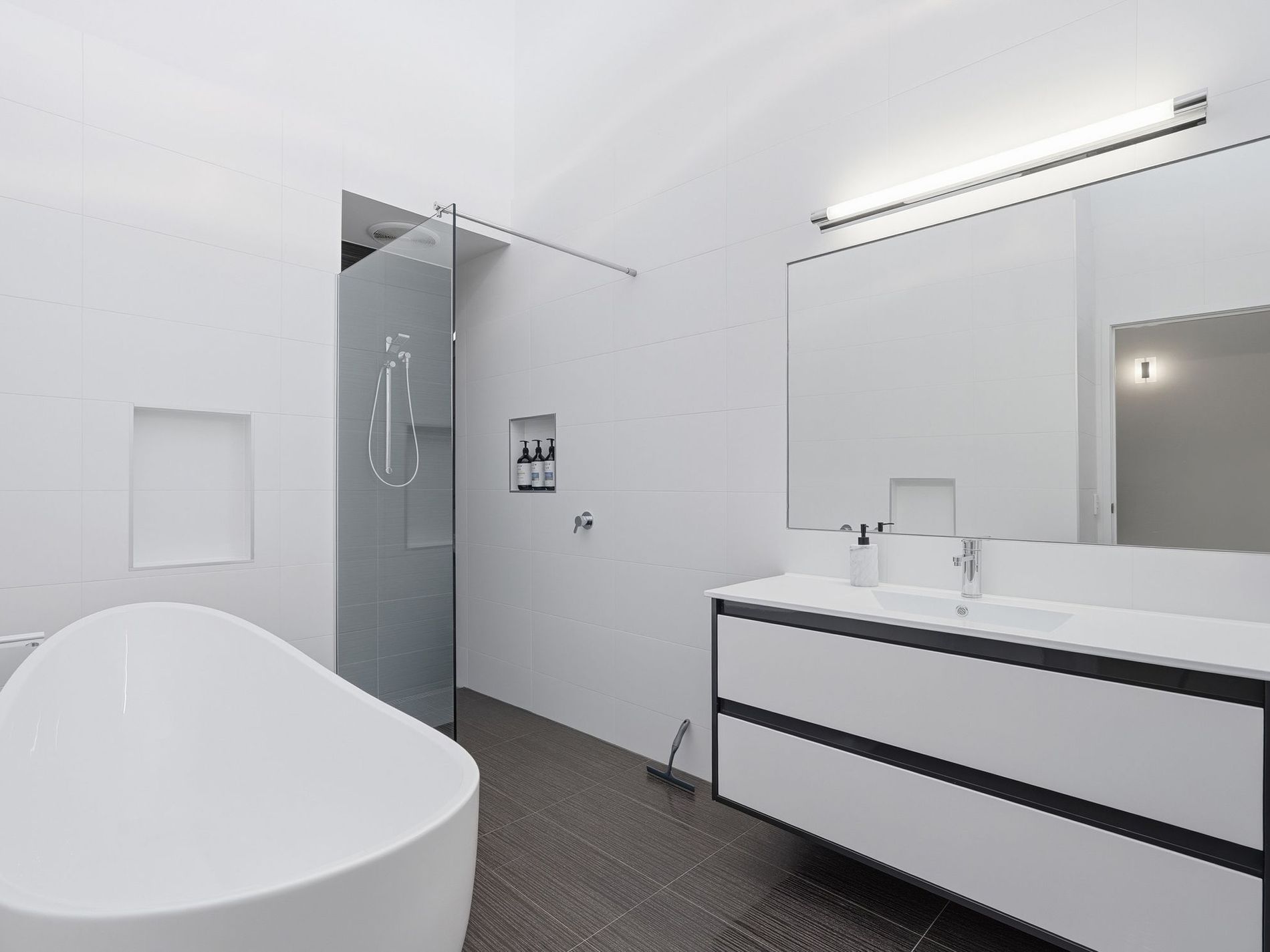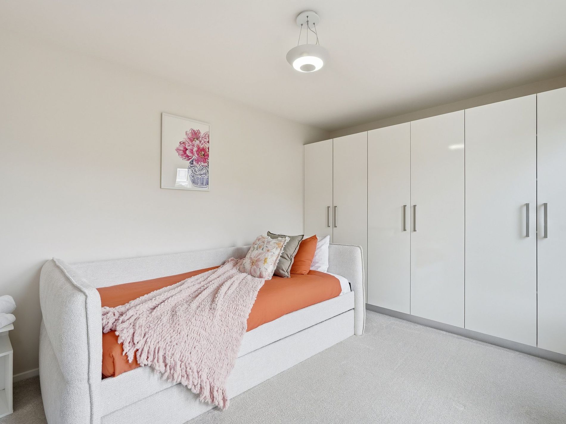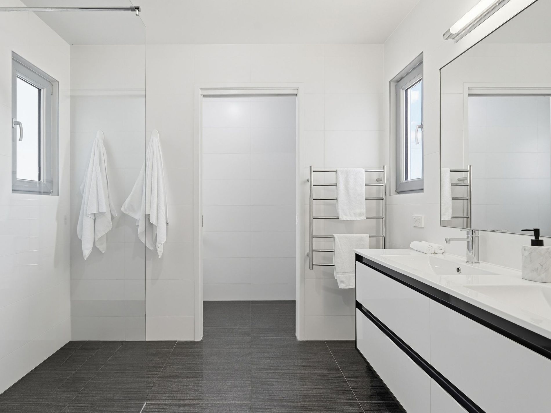 The kitchen is generous and beautifully practical, complete with two ovens, dishwasher and a large pantry perfect for anyone who loves to cook, host and gather people around the table. It flows effortlessly to the living spaces and out to the expansive ModWood deck, which has been cleverly fitted with pull-down screens for all-weather protection. Morning coffee, long lunches, sunset drinks this is a home made for entertaining.