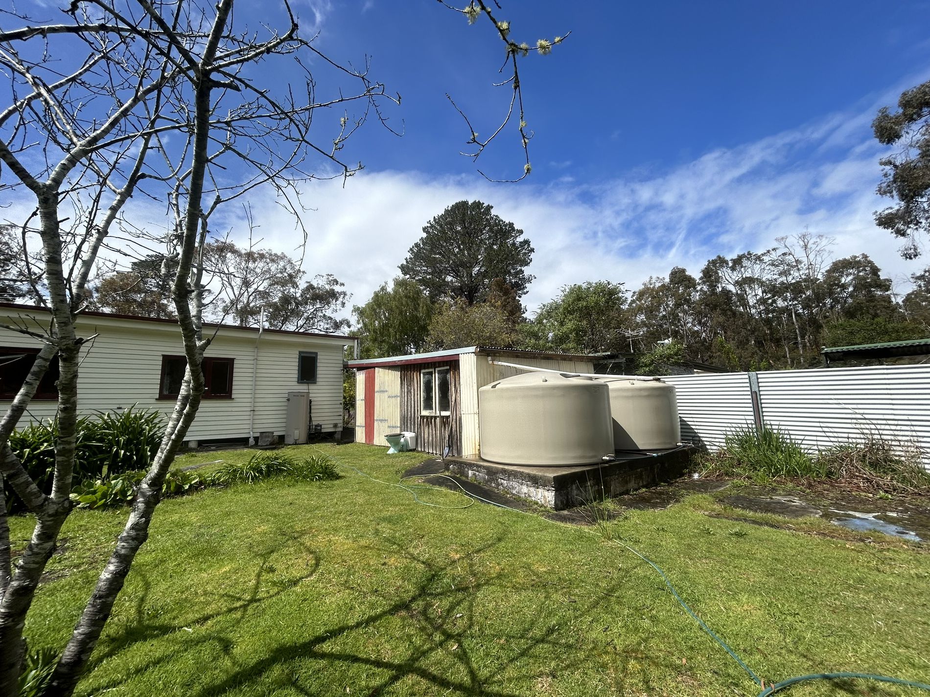 A substantial garage and workshop sit to one side—perfect for stowing away paddleboards, kayaks, and other recreational gear. With dual access doors to both the front and side, moving items in and out is effortless. Across from this space, additional outbuildings offer storage options and exciting scope for enhancement. The meandering waterway behind the home is a standout feature—peaceful, uncommon, and brimming with charm—while natural bushland nearby provides a serene, leafy outlook.