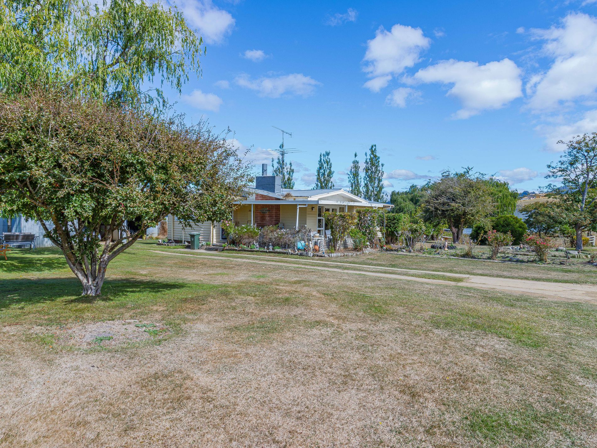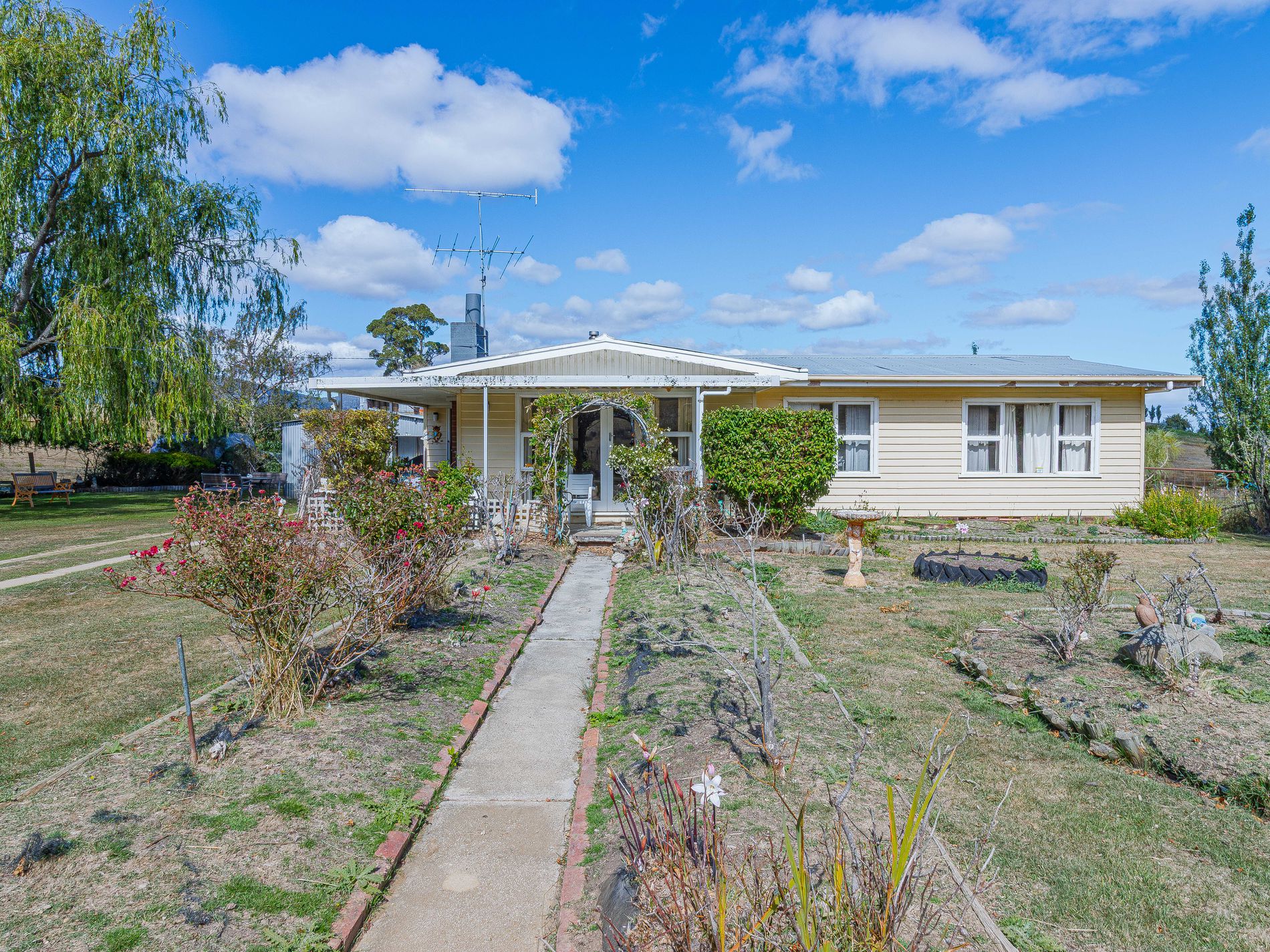 This cherished family home from the 1960s is offered alongside the homestead, creating a unique and rare package together. This three bedrooms home sits on just over a quarter acre. At the heart of this home is a traditional kitchen dining area with wood heating, adjacent to a cosy living space that opens to a covered veranda. Enjoy the cottage gardens, established trees, and a majestic old willow tree that provide charm in this country setting. A cleared area that has been in the past designated for growing crops is the perfect spot for your veggie patch, there is a single garage with storage, an additional storage shed for garden tools, a chicken run, and a greenhouse that completes this delightful package.