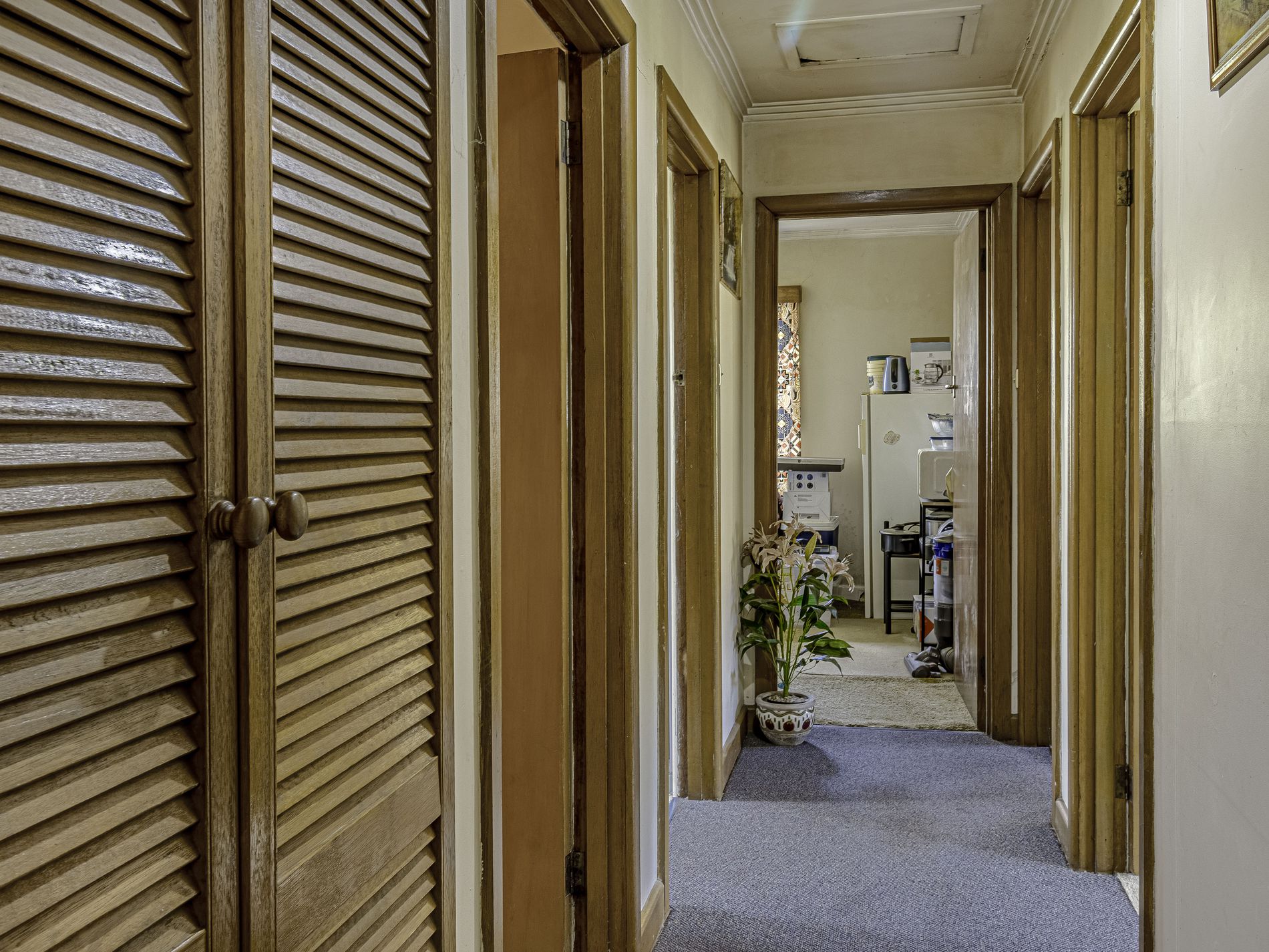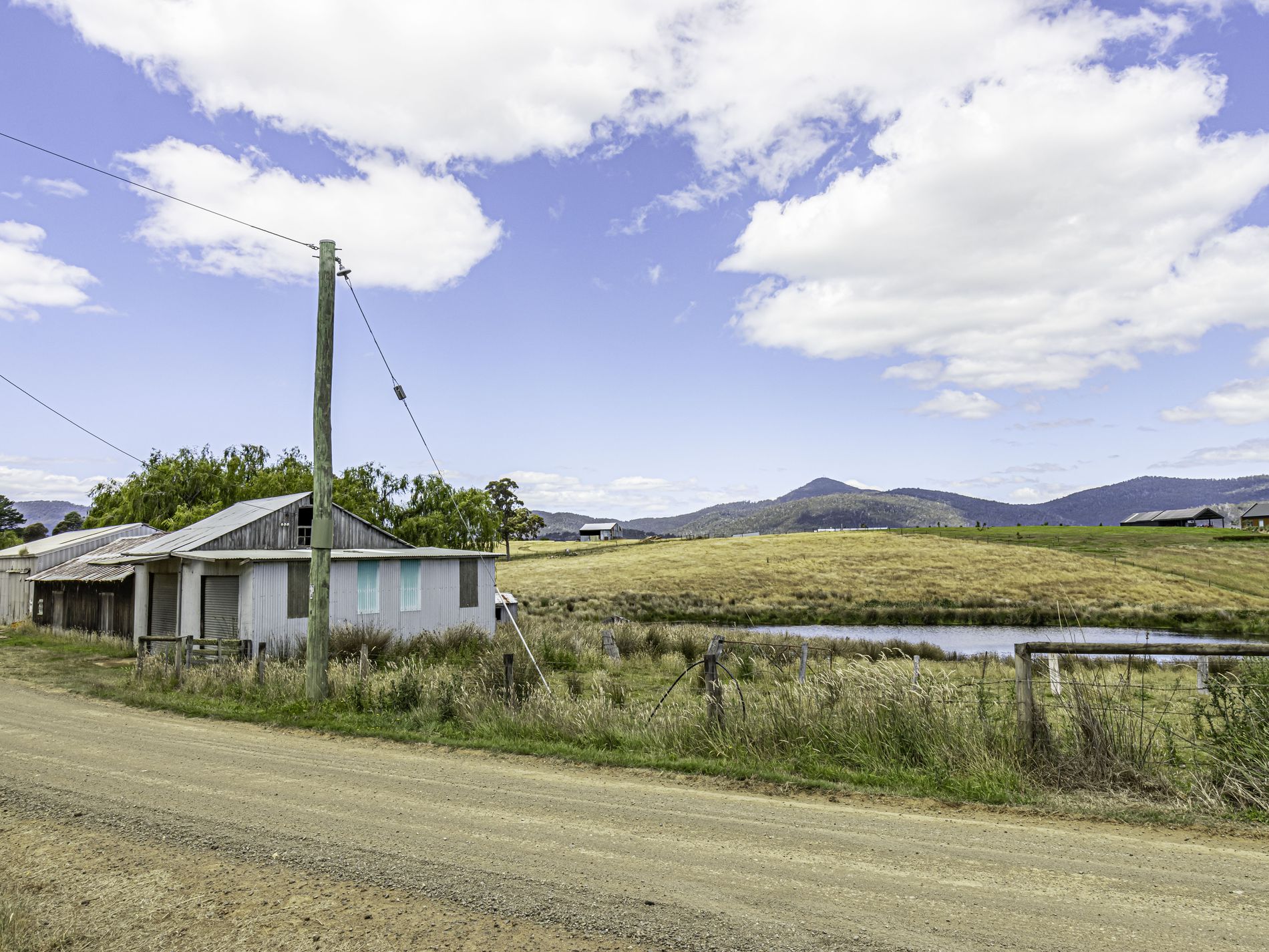 Many original features still grace the interior, some waiting to be rediscovered, making this golden oldie a special project for the discerning buyer. The sprawling property encompasses fertile pastures on both sides of the road, featuring an impressive farm shed of approximately 37 squares. This versatile space includes a large cool room, ample storage, a workshop area, and sections for farming equipment.
