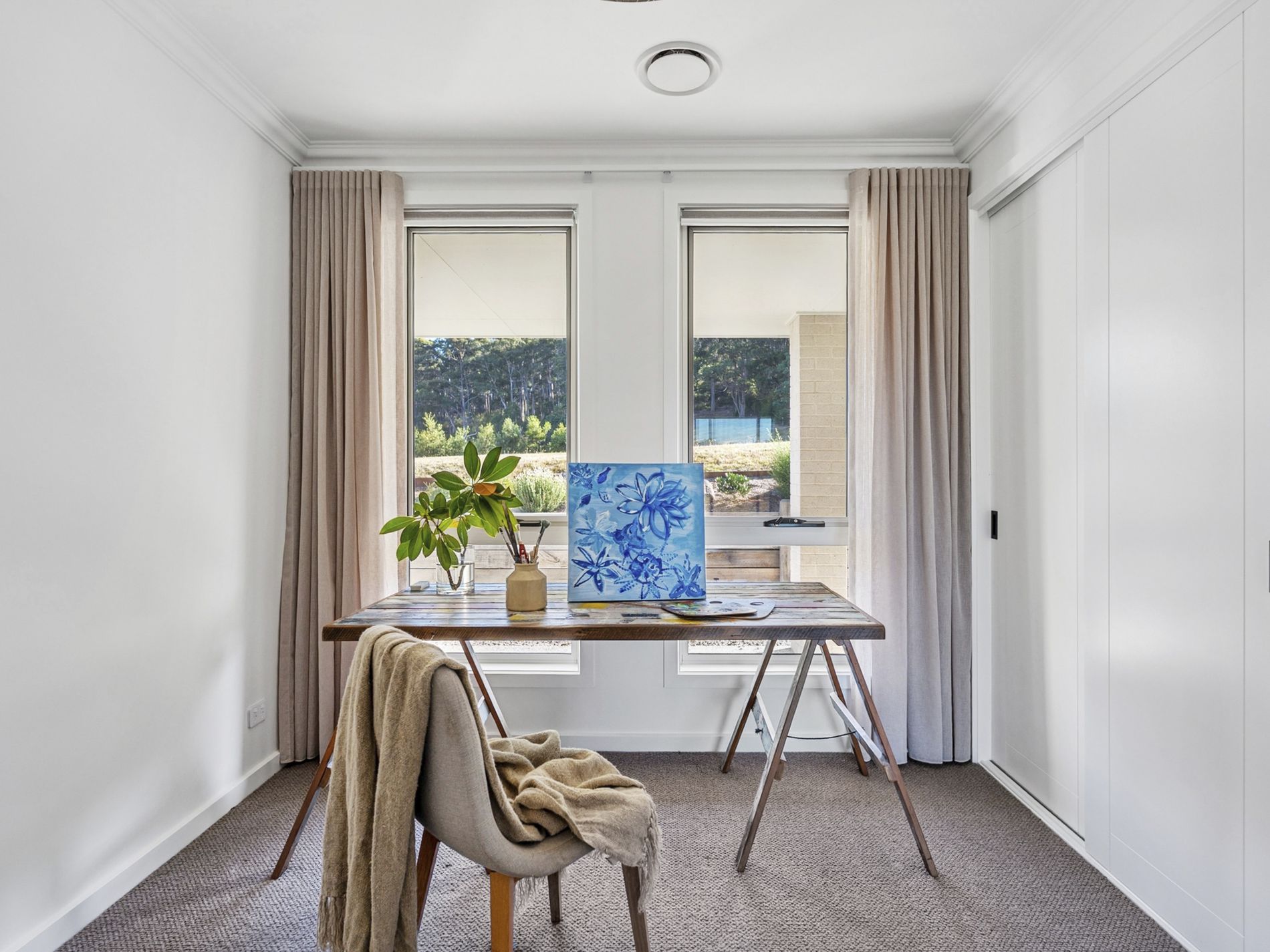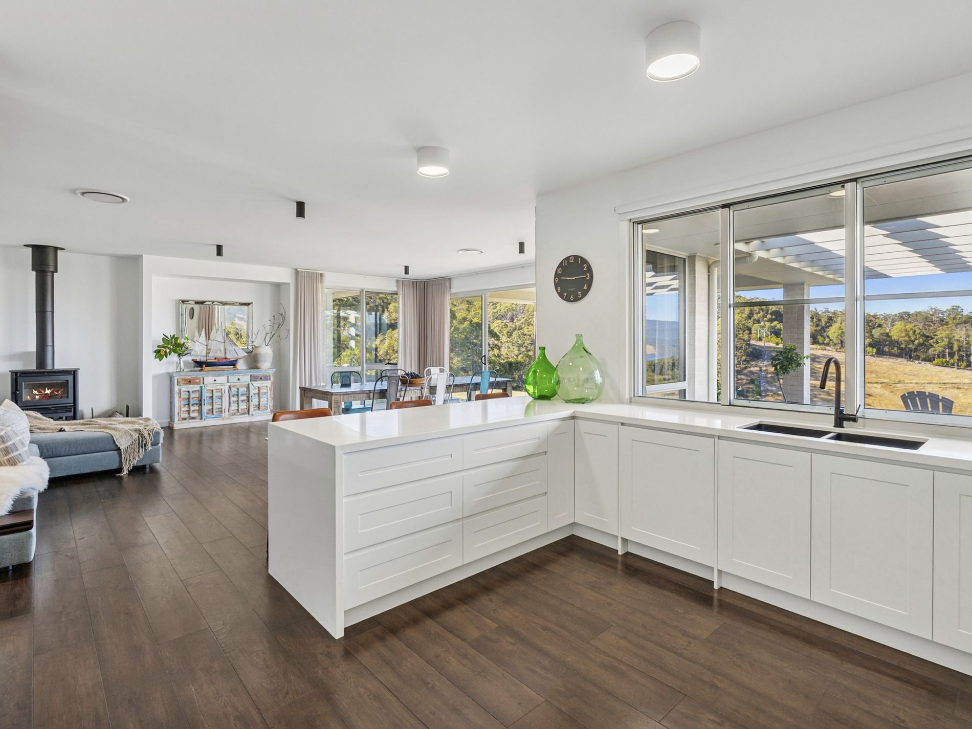 Inside, every detail has been thoughtfully considered. Wool carpets underfoot, premium appliances in the kitchen, and the convenience of electric blinds elevate everyday living, while a feature wood heater brings warmth and ambience during the cooler months. The interiors strike a perfect balance between contemporary elegance and relaxed country comfort.