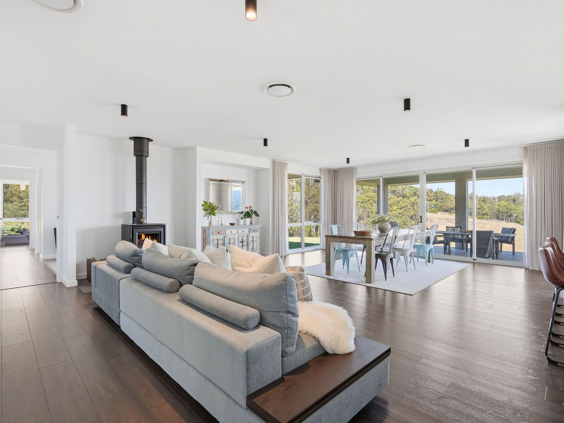 At its heart, the light-filled open-plan living flows seamlessly to a stunning covered outdoor area, where entertaining truly becomes an experience. Framed by sweeping valley vistas, this space invites long lunches, quiet mornings and relaxed evenings, offering a sense of calm and connection to the landscape that is simply unmatched.
