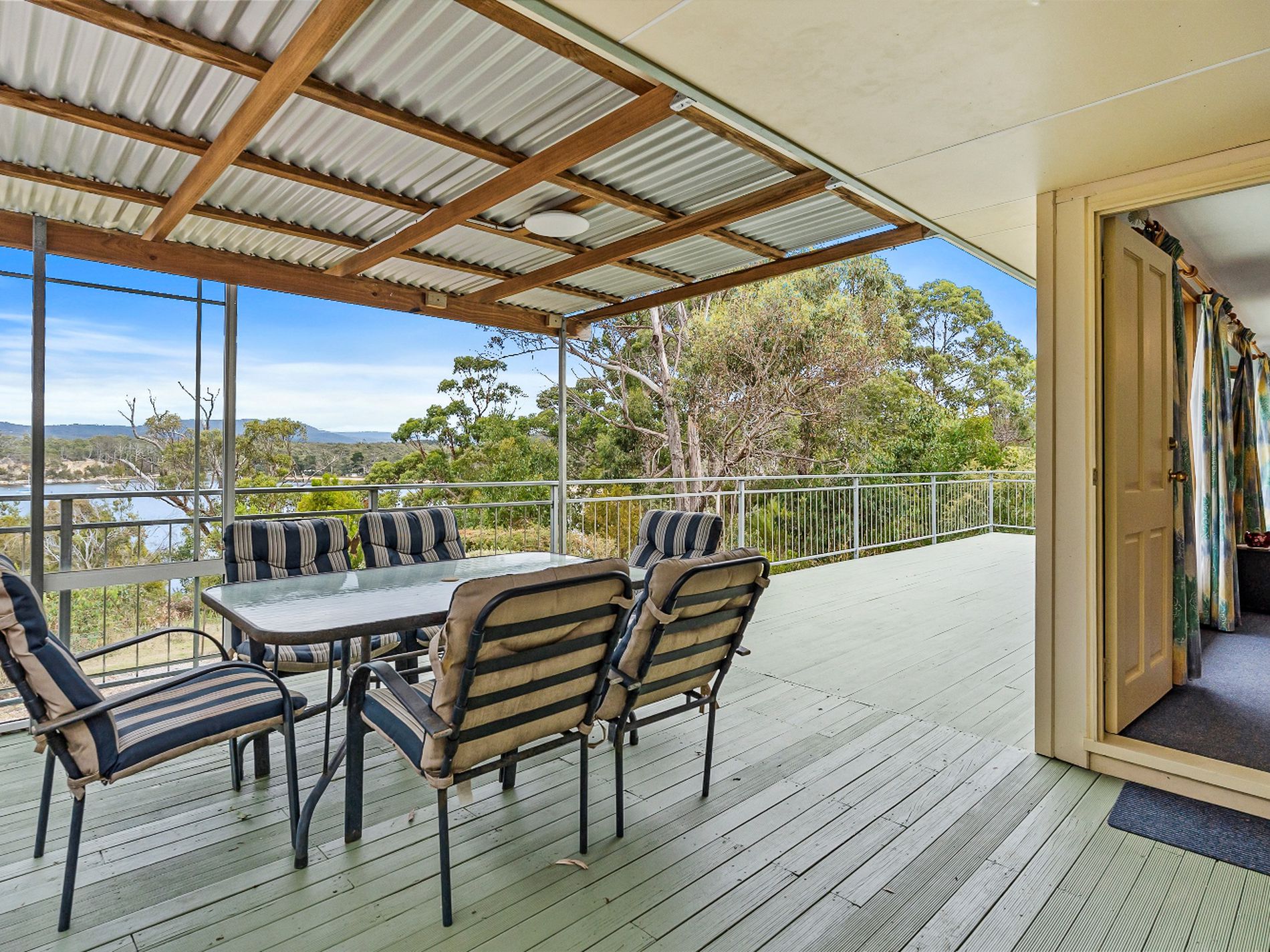 Set in an elevated cliff-top position near the end of a quiet no-through road, this appealing seaside gem enjoys magical water views over Randalls Bay and across the Huon River Estuary. Neat & tidy, low-maintenance and just a short walk from the gorgeous Randalls Bay beach. The 3 bedroom home features open plan kitchen, living & dining with brilliant views and a large timer deck with a covered, semi-enclosed entertaining area. Two double bedrooms and an additional room which adds versatility and can be used as a 3rd bedroom or additional sitting area, rumpus, office, etc.