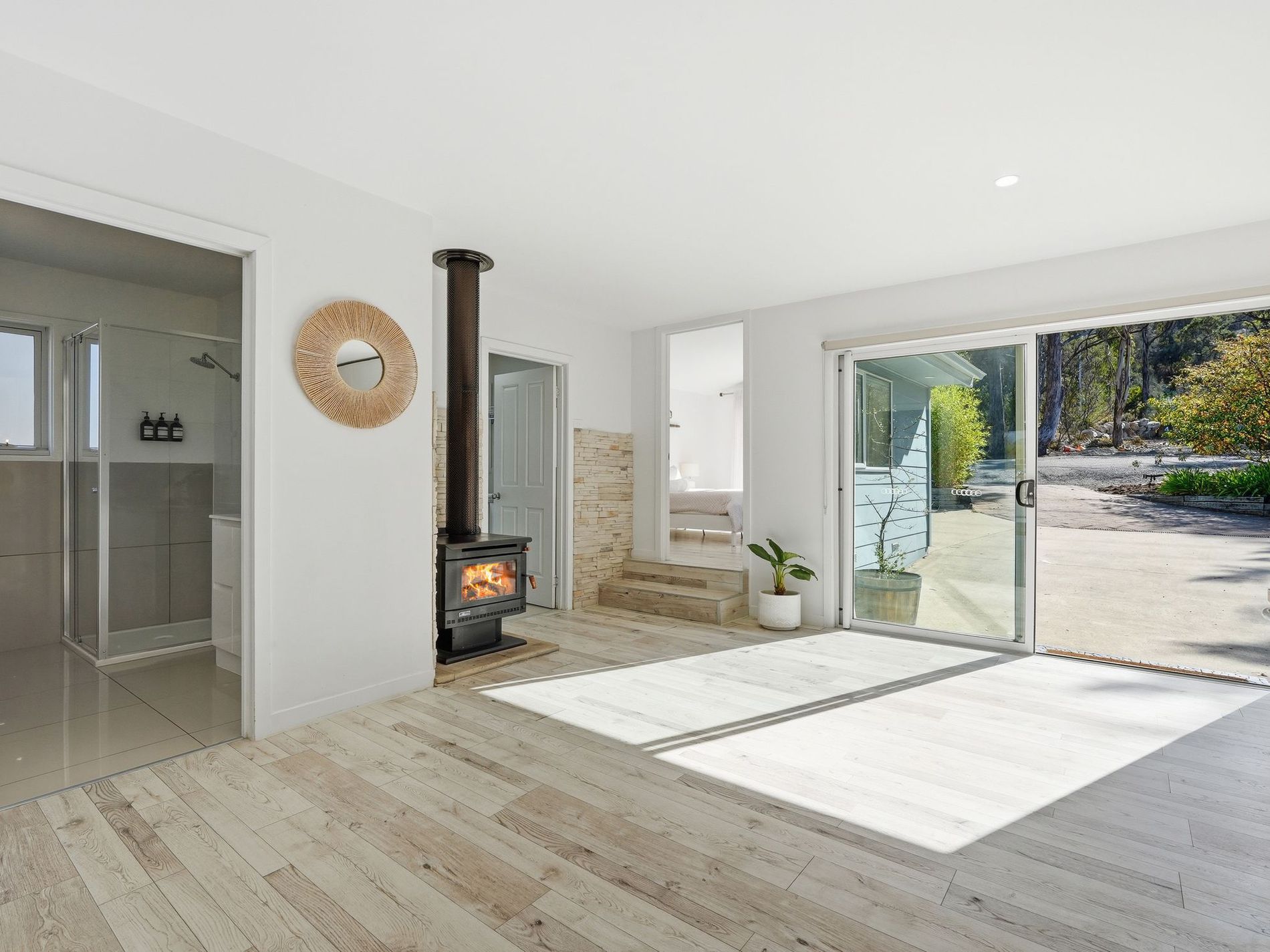 - Year-round comfort with double glazed windows, a heat pump and a wood heater
