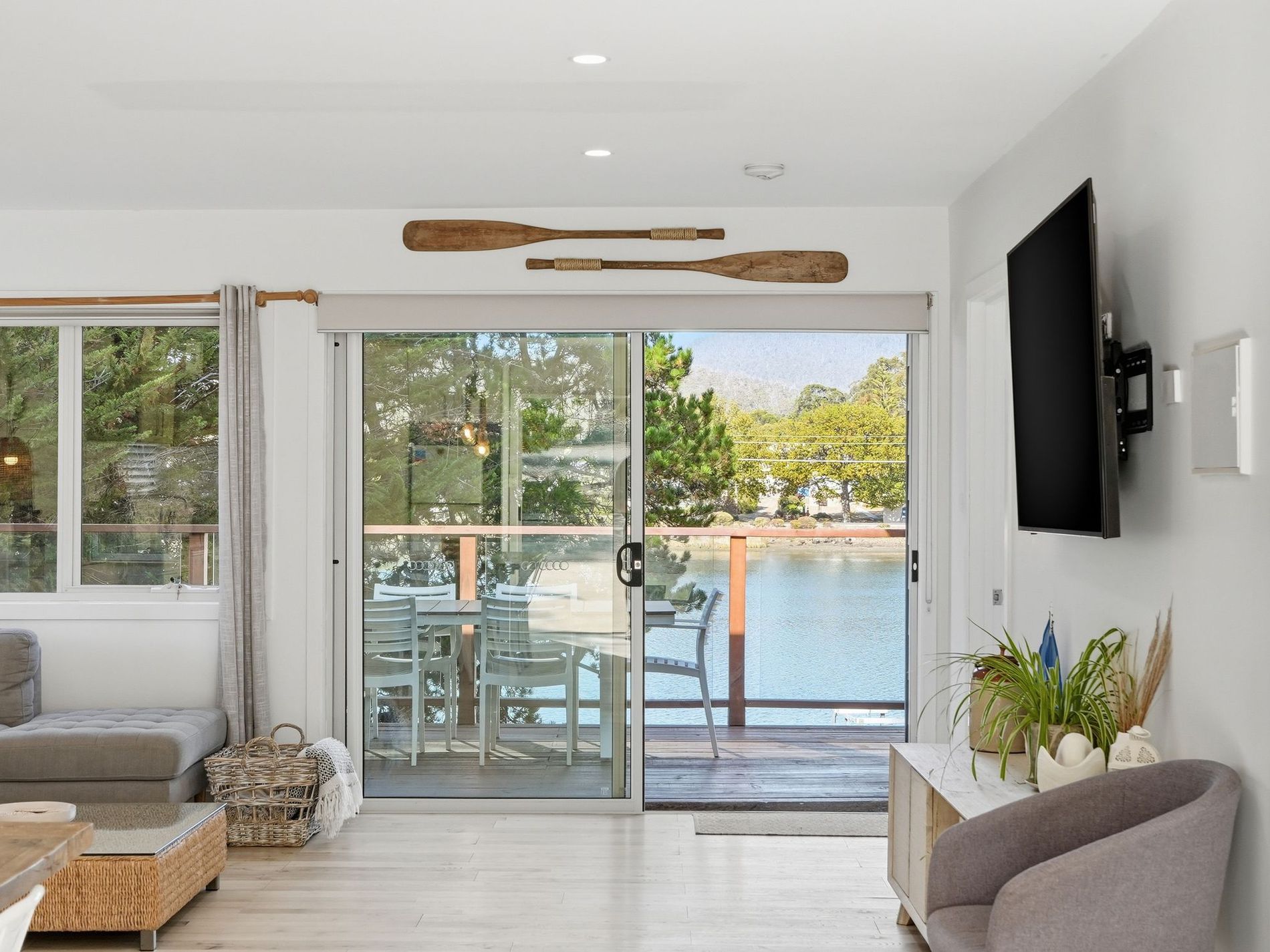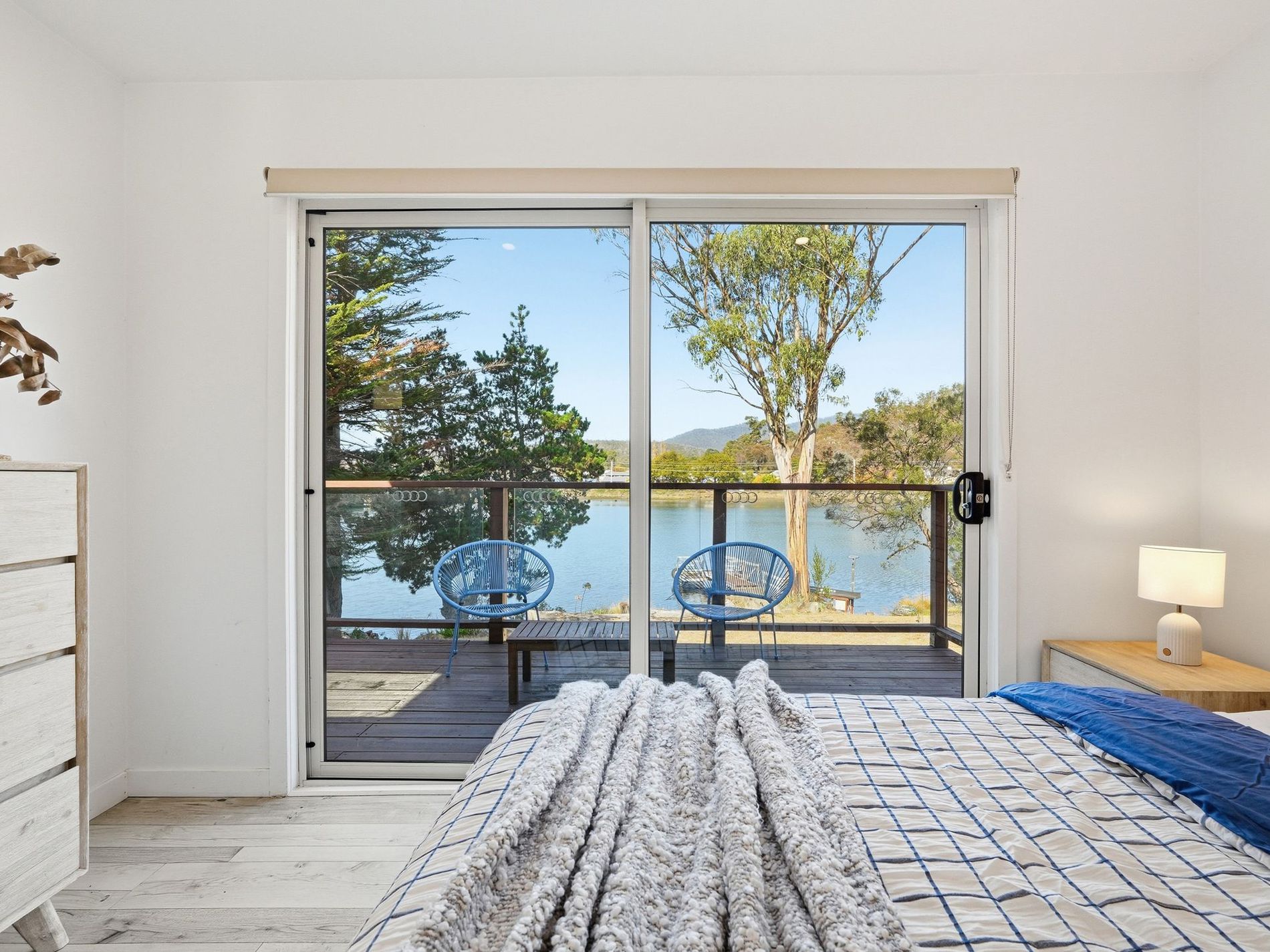 - Three-bedroom accommodation including main bedroom with sliding door to the deck and river outlook