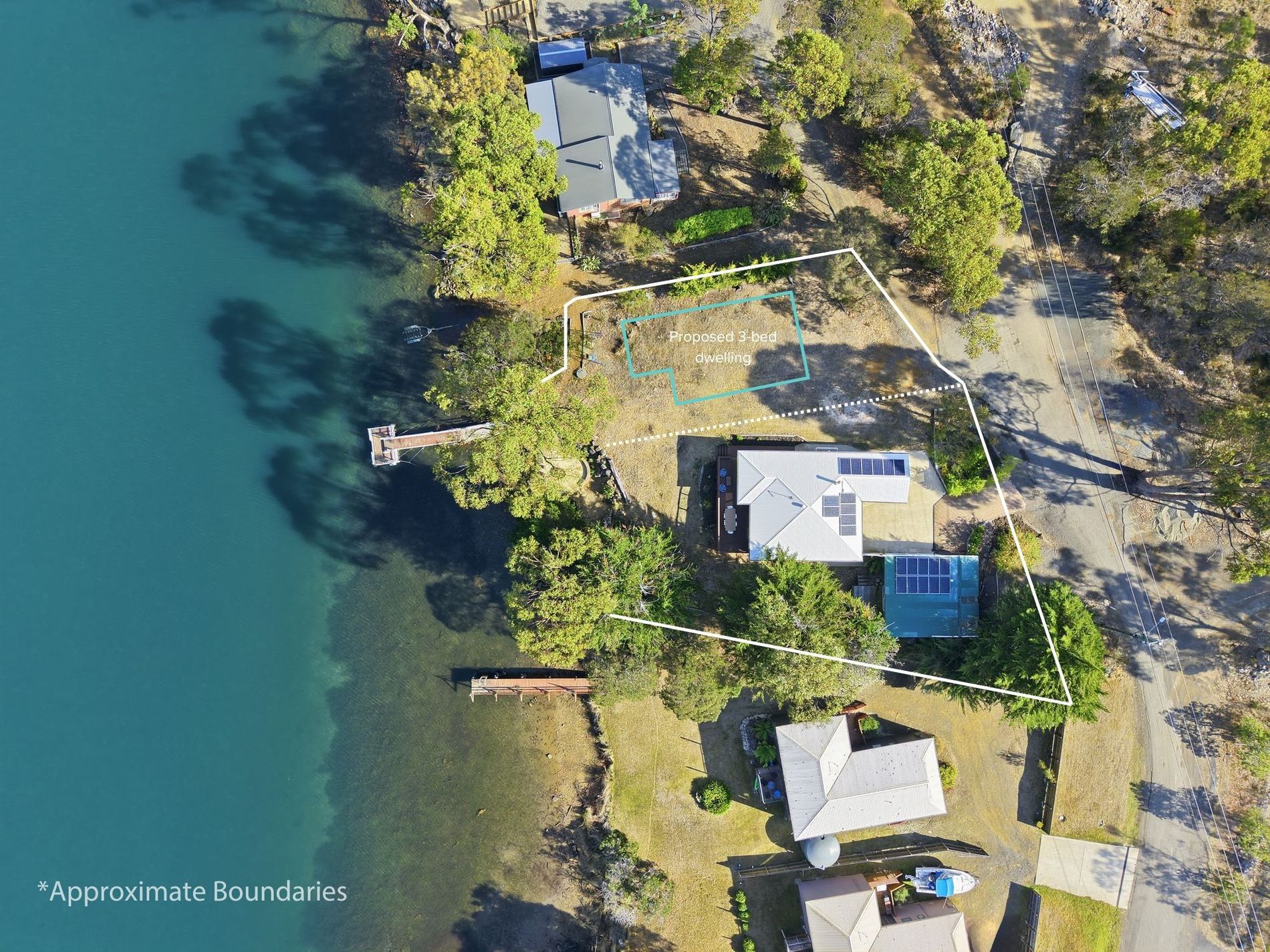 - Absolute riverfront position with title to the high water mark, plus access to a shared jetty and boat slip