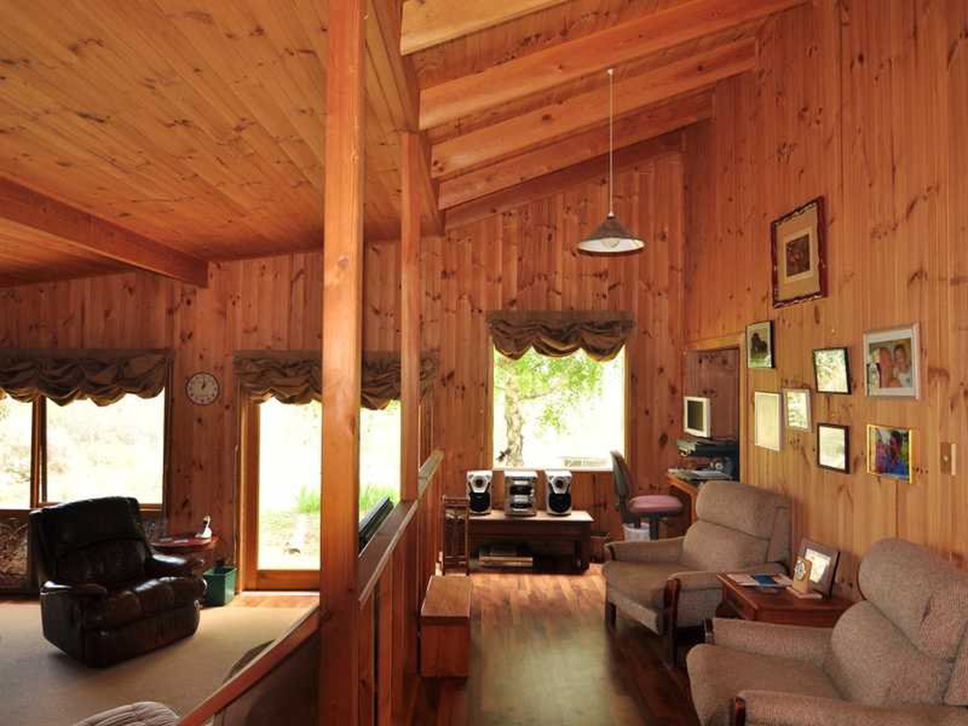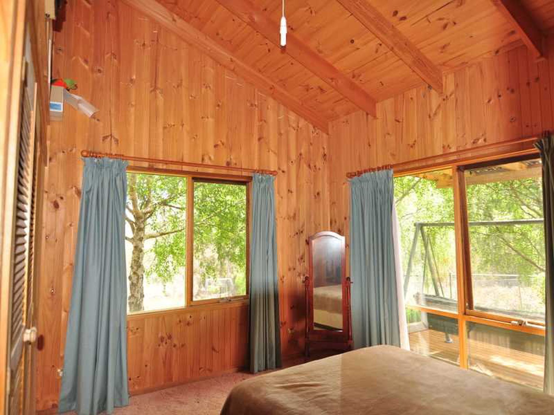 Hidden amongst 12 Acres of gorgeous bushland, this spacious 2 bedroom home is so easy to fall in love with; its Cathedral ceilings and rustic timber features. Spend hours simply relaxing on your deck and watch the numerous varieties of wildlife enjoy their natural surrounds. The vendors have other commitments and are reluctantly moving on. Inside the home is a light, open living space with a step up into the spacious kitchen and dining. The kitchen boasts a near new induction cook top, plenty of storage and bench space and lovely views from the large windows. The main bedroom is very large with built in robes and the second has raked ceilings and built in storage as well. A study nook has been newly added to the open living spaces and the wood fire features gorgeous slate surrounds, providing warmth throughout the entire home. The bathroom was recently modernised and there is a separate WC, large garage / work shop, internal laundry, ample sized dam and a large, quality fenced enclosure once used to grow vegetables. If you're searching for peace and tranquilly without sacrificing proximity to town and modern convenience, this one is certainly worth a look.