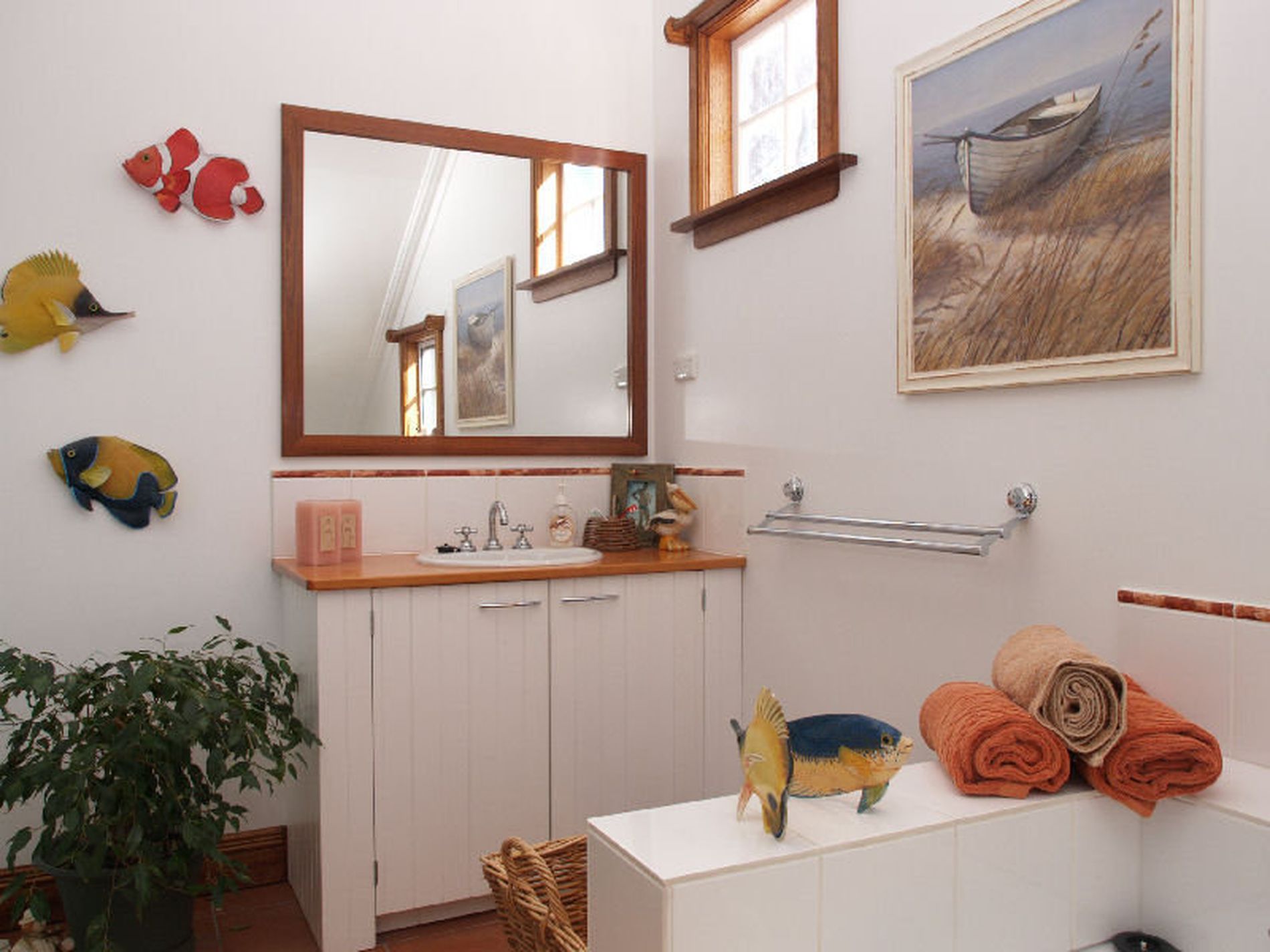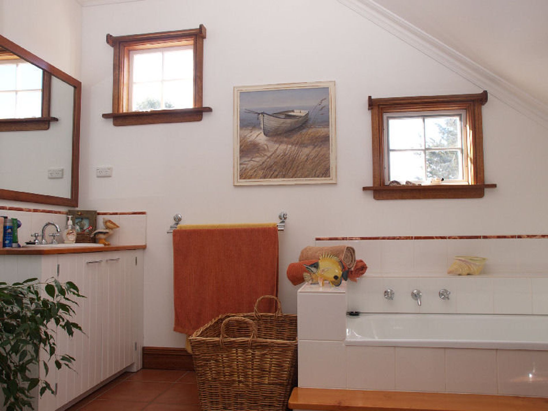 Beautifully presented, the home offers 5 bedrooms (5th easily converts to an office), 3 are upstairs, each with its own unique style and structure, expertly positioned to capture the sunlight as it beams through the elegant dormer windows. The main bedroom is located downstairs with an en-suite, built in wardrobe and French doors which open to its very own sundeck, a great place to sit and read the morning paper with a steaming hot drink in hand. The upstairs bathroom is bright and roomy with separate shower, bath and vanity. A separate living area has a large wood heater which is ducted though out the home. Kitchen/dining is combined and the north facing aspect from many windows provides all day sun. On our beautiful spring evenings you can open up the French doors to the verandah and take in the sweet floral aromas from the vast array of flowers planted through out this delightful 4 season English cottage garden.