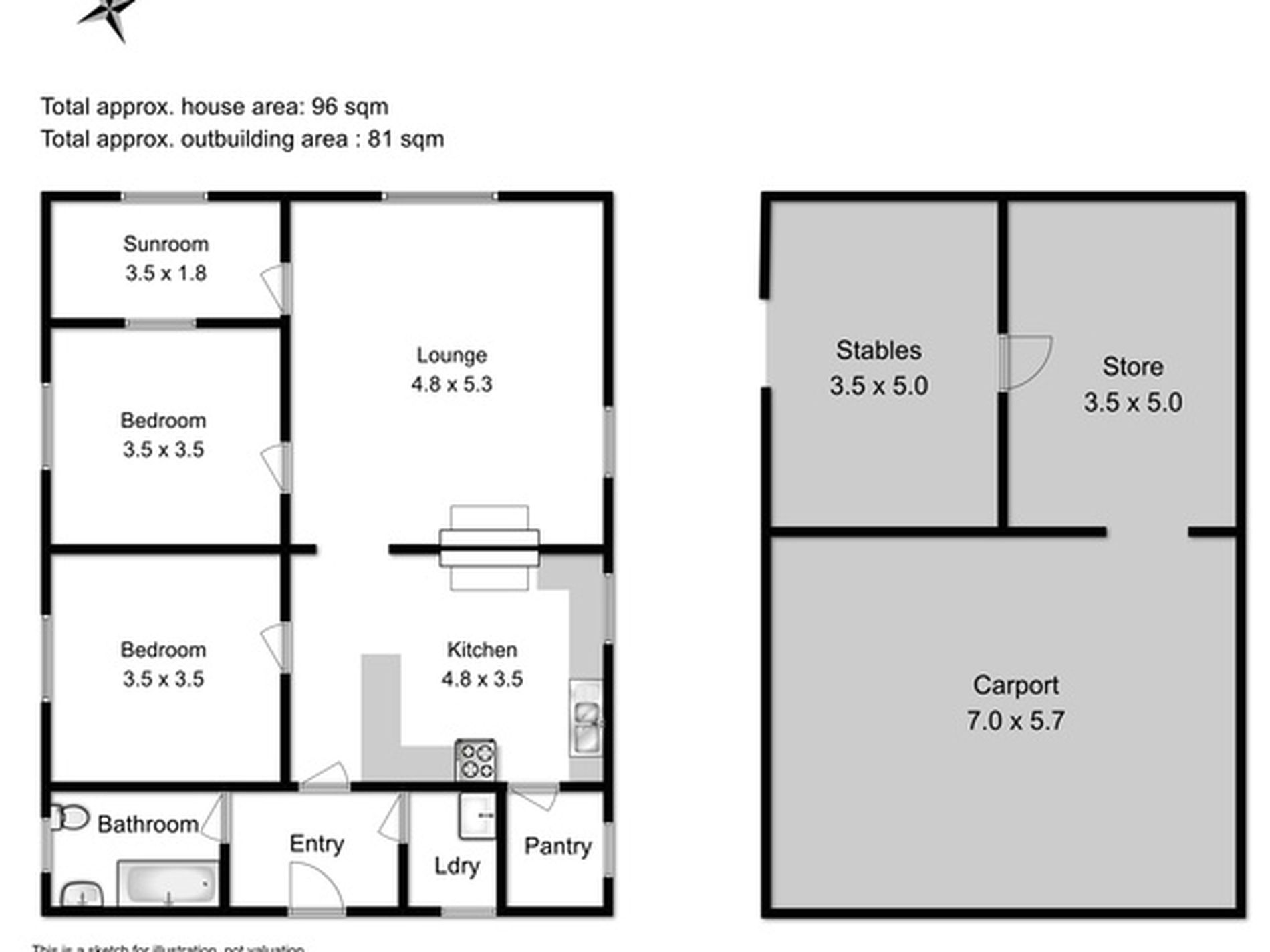 There is also the additional bonus of a 7metre by 10metre separate carport/storage structure.