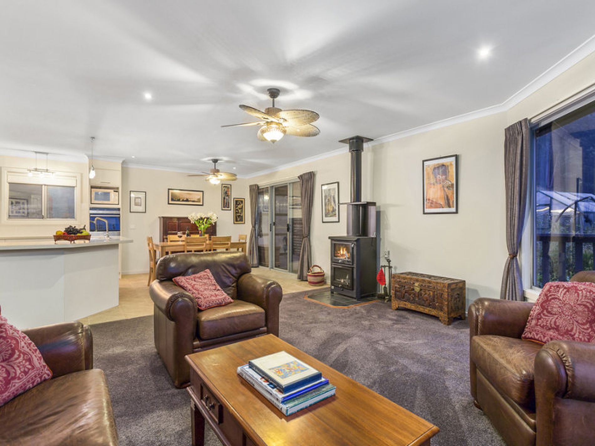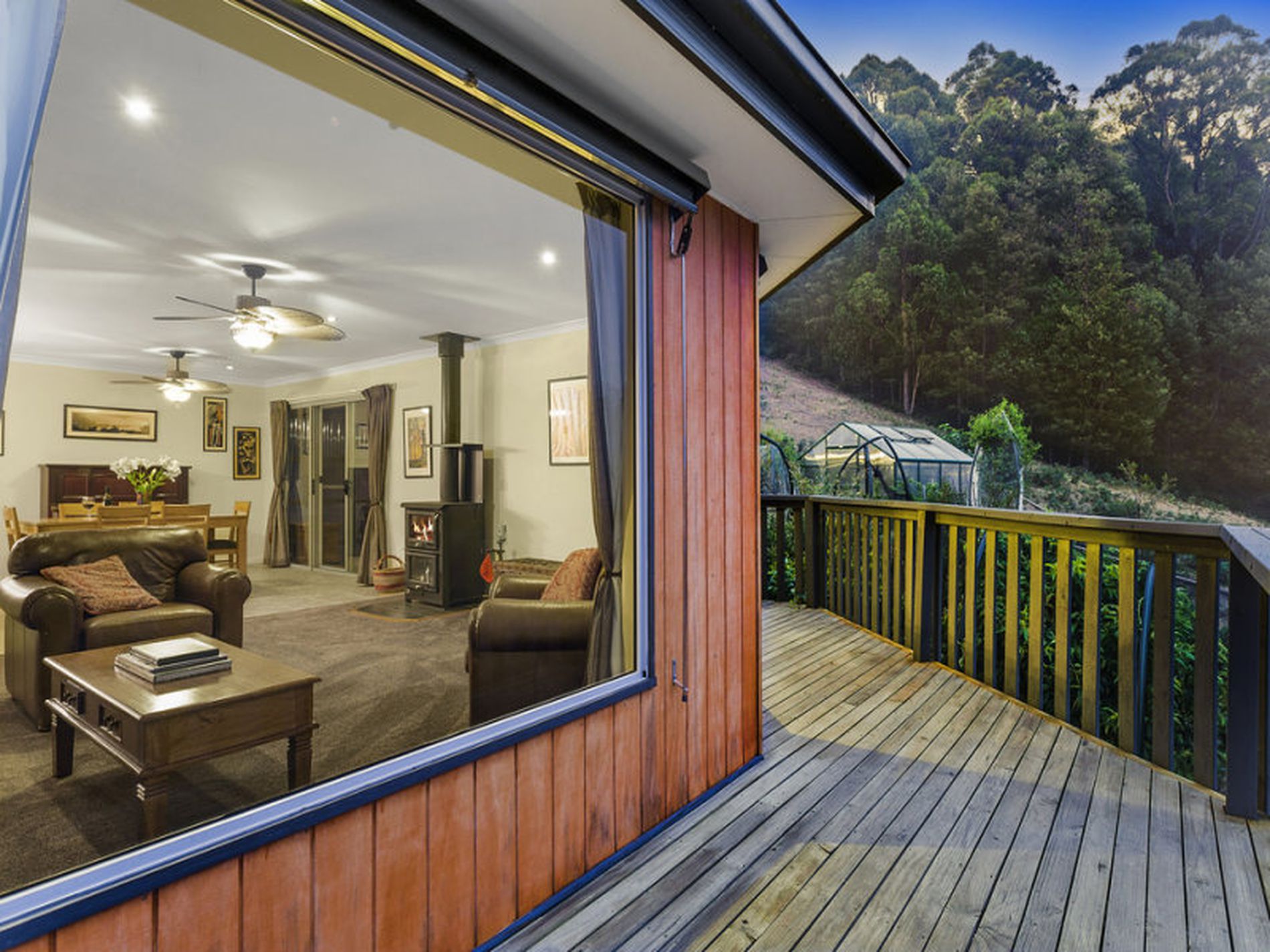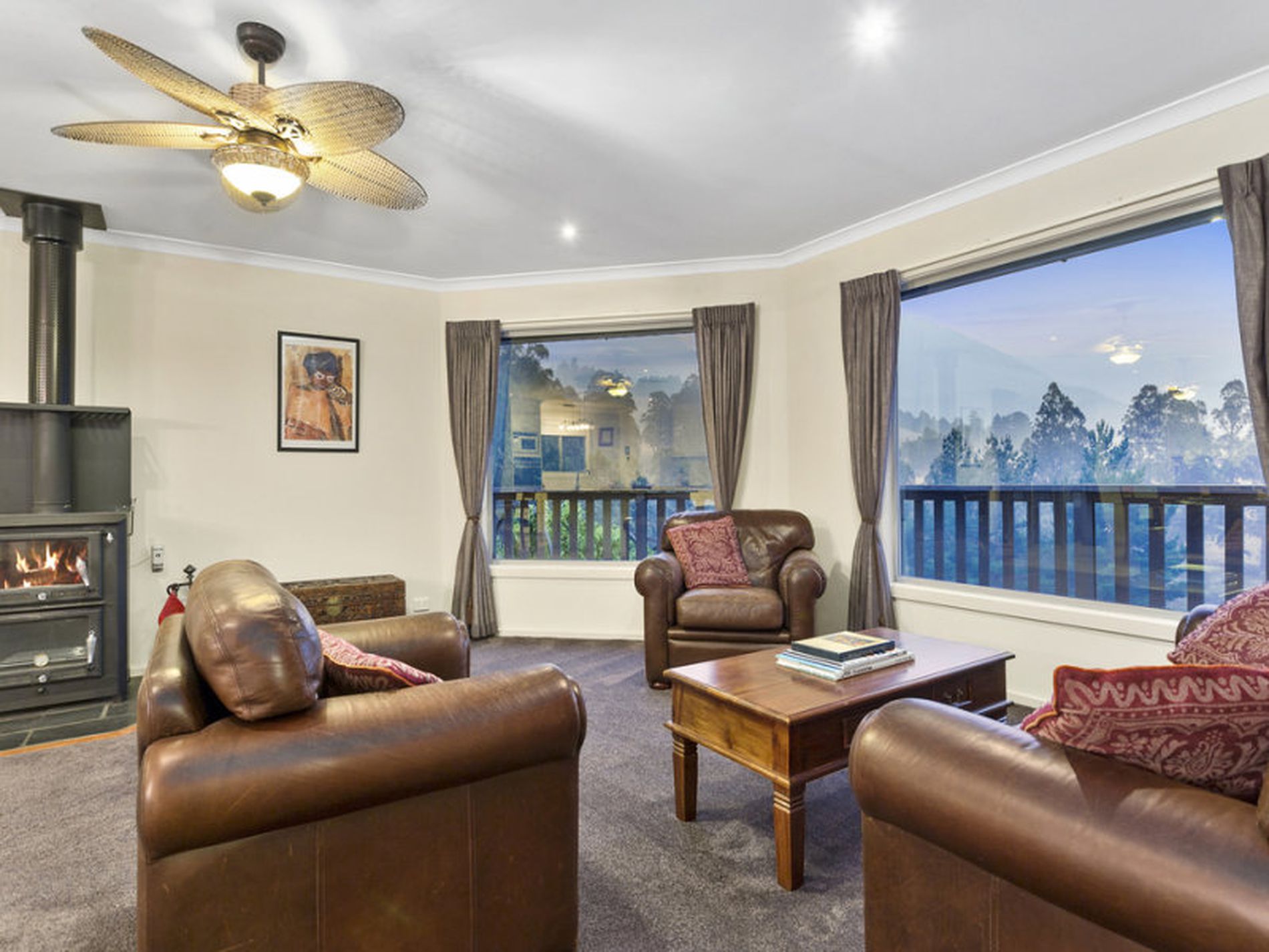 Heating throughout the home is provided by solar hydronic panel heaters as well as a large, stand-alone wood fire with a wet back system. There is a further solar panel system that feeds power back into grid. These features keep your energy consumption low and your power bills even lower.