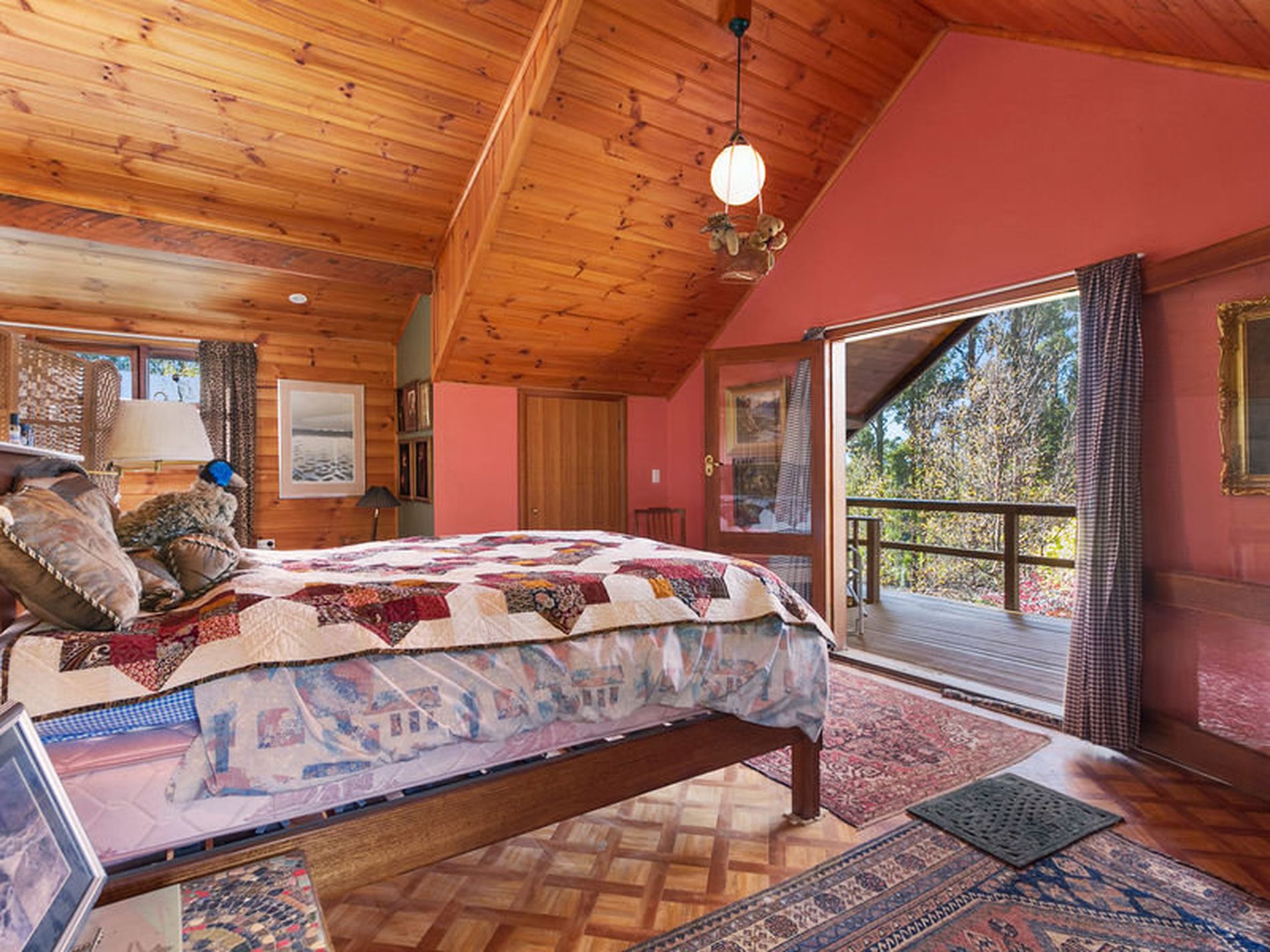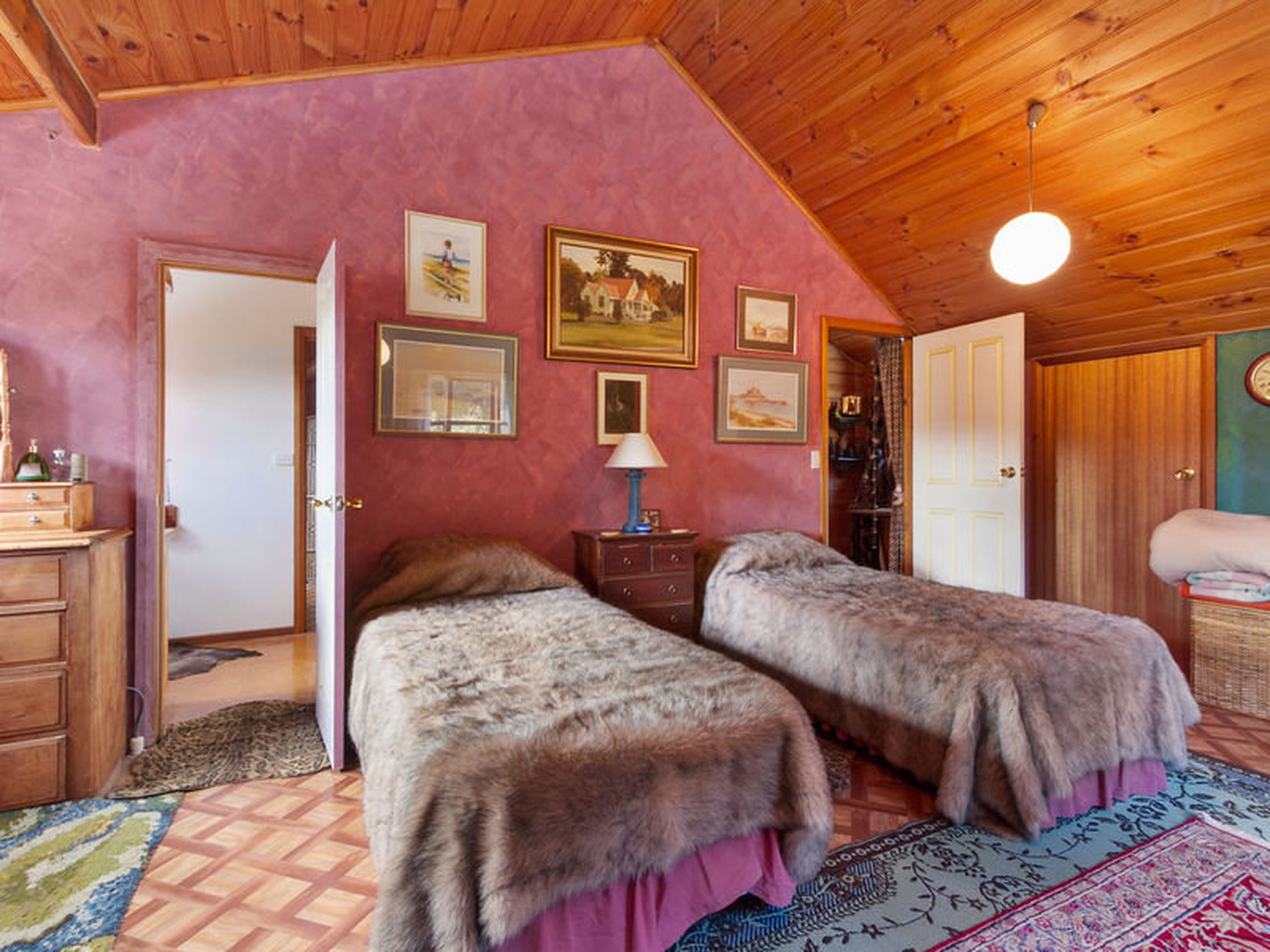Enrobed by one of the Huon Valleys most beautiful displays of fruiting and ornamental gardens, is this stunning dual storey timber home. The house was created beautifully with extensive amounts of cedar, celery top pine and blackwood which were predominately sourced directly from the property. The interior is light filled with large windows that allow the sunshine and charming views of the garden to filter thorough to each room.