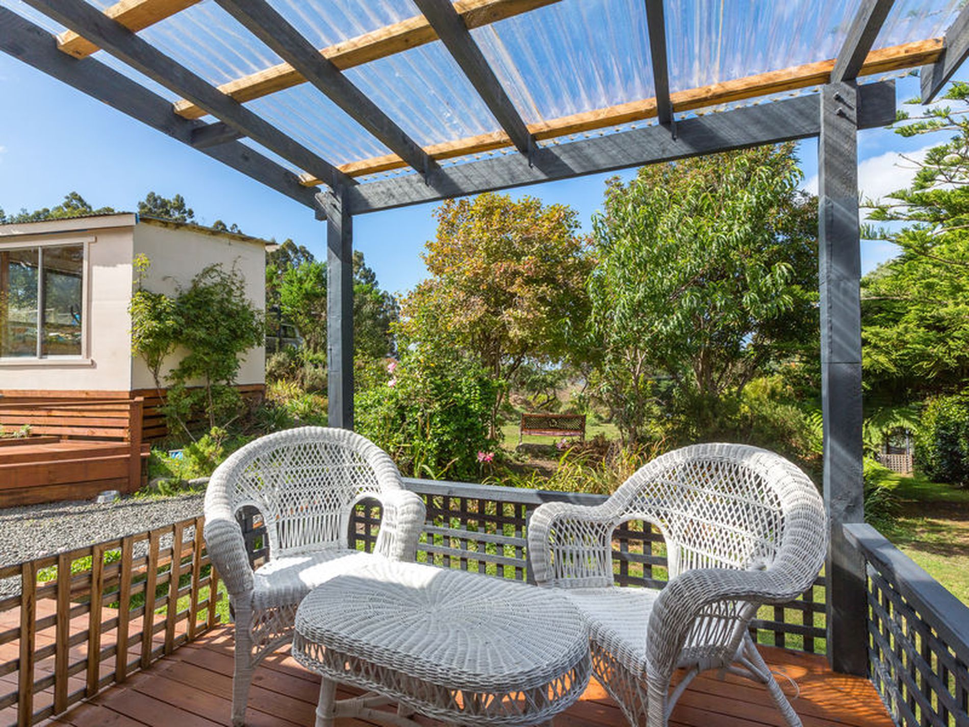 The kitchen and living areas are semi open plan, offering your choice of either wood heating or a large heat pump for convenience. The third bedroom is currently utilized as a formal dining space and small sitting nook adjoins the living space, begging you to sit and enjoy the sun. The two remaining bedrooms are light and spacious and offer tranquil views over the established gardens.