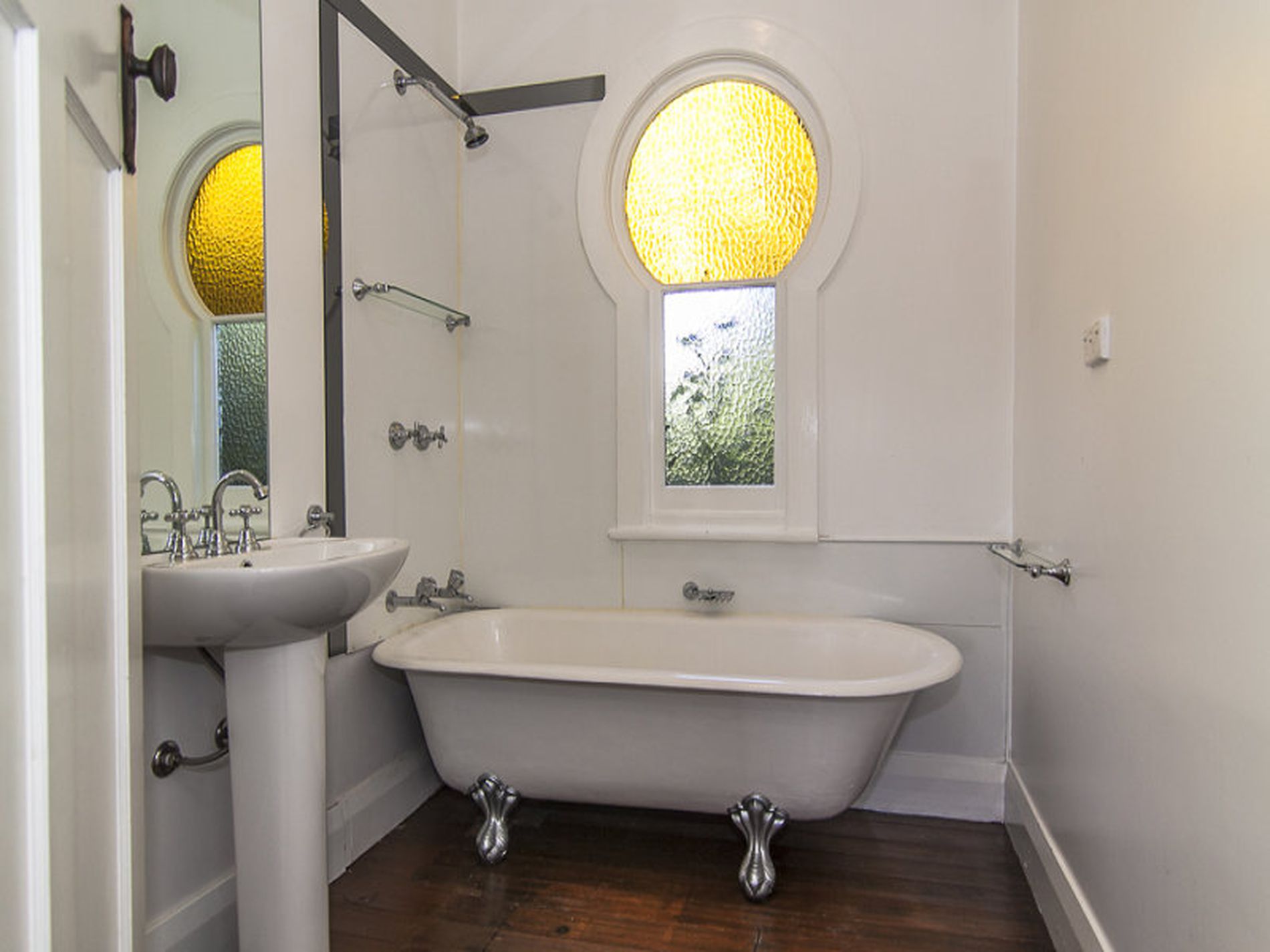 Inside, the property boasts numerous interesting features including a warm and welcoming country style eat-in kitchen (celery top pine) with large pantries and pot-belly stove, high-quality carpeting, original Tassie oak floorboards, sash windows and separate formal living and dining rooms that are heated by a two-way wood heater. There is ample storage space throughout, including a beautiful timber bookcase in the hallway. Two of the 3 spacious double bedrooms look out onto the surrounding gardens. The 3rd bedroom, has direct access to 1 of the 2 bathrooms (with shower and toilet) and adjoins a very bright, inviting sunroom. With its own private entrance and separate plumbed utility room, the sunroom would be ideal for guests or teenagers' accommodation. The family bathroom, with its unique keyhole window and claw foot bath with overhead shower, adds to the property's old world charm.