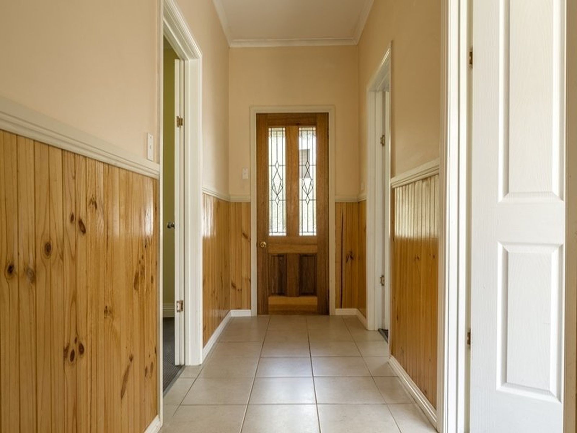 The house itself is a large 4 bedroom, 2 bathroom home with a spacious kitchen. There is a good sized living area with ceiling fan and a well situated wood heater and tiled floors throughout the entry hall, kitchen and laundry. The master bed Ensuite has a heat pump which directs the flow of air into the bedroom and there is plenty of natural light throughout the house. Outside features a very large undercover timber deck A¢a‚¬" perfect for entertaining. The large, fully fenced back yard has a shed with a carport off the side and also a small garden shed and wood shed.