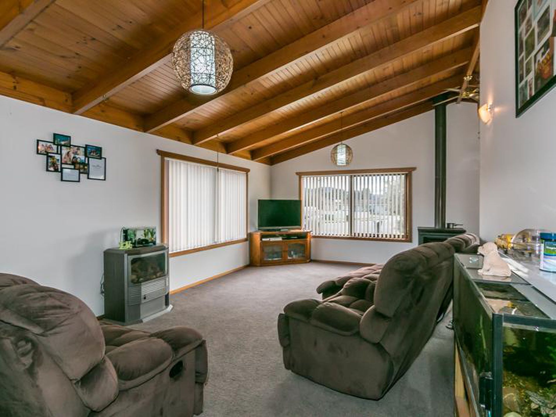 .The living area is open plan with formal dining and is warmed with wood heating or gas if you prefer