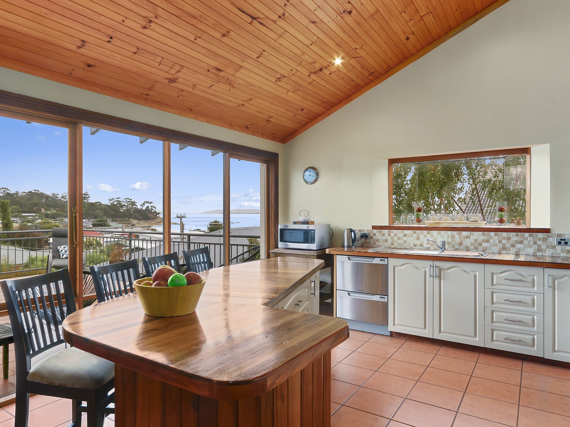 Just 150 meters to the beautiful sandy beach and bayside, this sunny north facing home is situated on one of the largest blocks in the street and is within walking distance to restaurants and cafes and enjoys pleasant water views. Boasting both a commanding street presence and glorious views, this spacious family home offers an interesting yet practical floor plan over 3 levels. Including 4 bedrooms, 2 bathrooms, separate living room, open plan kitchen/dining with second family room, large windows and deck ensuring the home is light and bright and is kept warm with cosy wood heating.