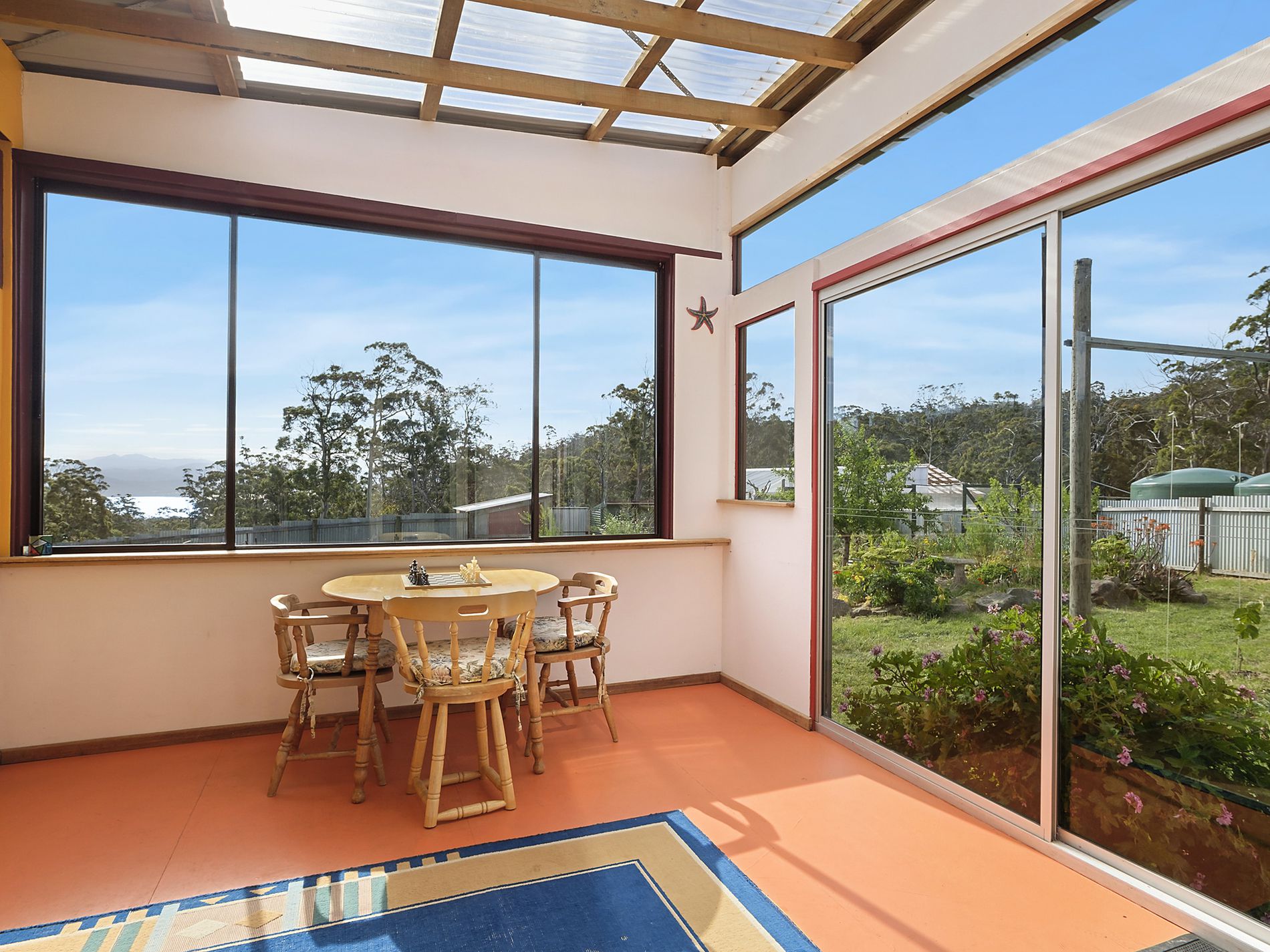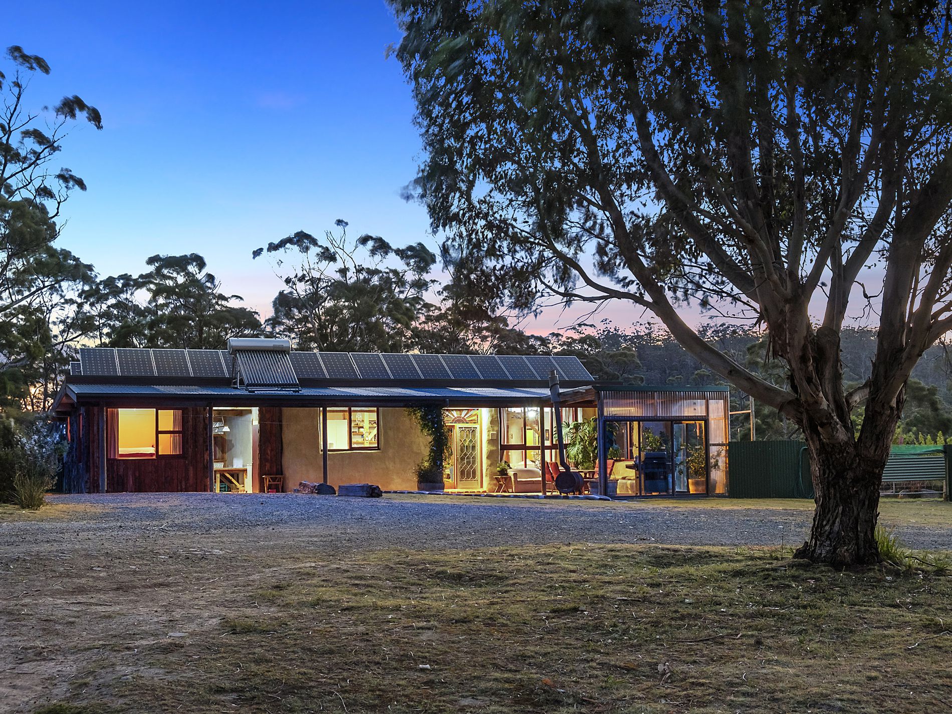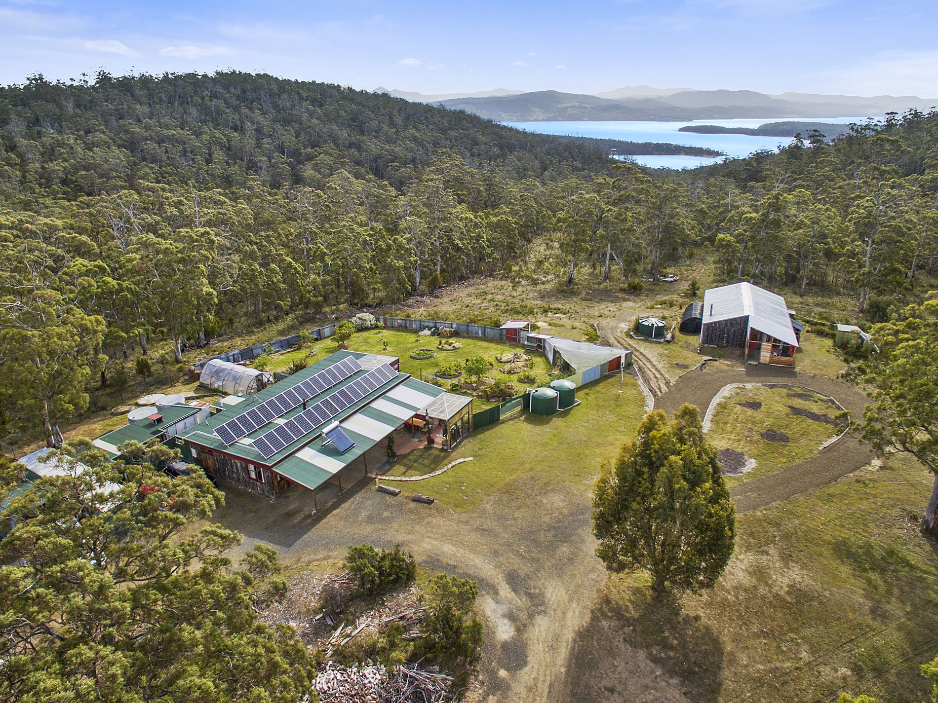 The main residence is a gorgeous combination of straw rendering and stringy bark cladding. It offers three bedrooms, an open plan kitchen, living and dining and a sunroom that frames the views of Charlottes Cove beautifully. There is a substantial outdoor entertaining area which extends the living space and leads into the well fenced and fertile productive house gardens.