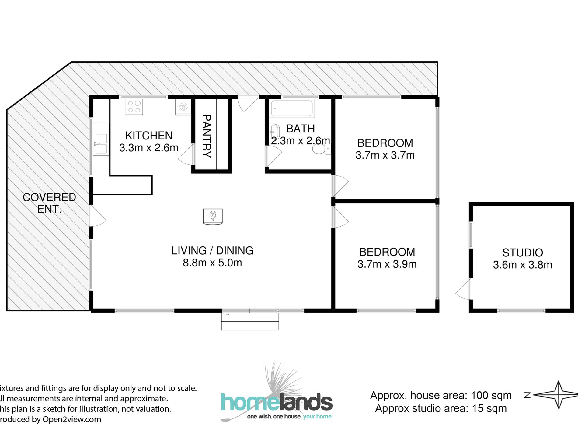 The kitchen, which overlooks the dining area offers adequate work space as well as a sizable, walk in pantry. Off the living area, which allows easy access into the gardens, you’ll find two generously proportioned bedrooms as well as the partially revamped bathroom. The home is connected to mains grid electricity and warmed by a standalone wood heater which offers a wet back system which heats your hot water when the fire is going. With tank water and it's own waste management, the outgoing costs here are fantastically low.