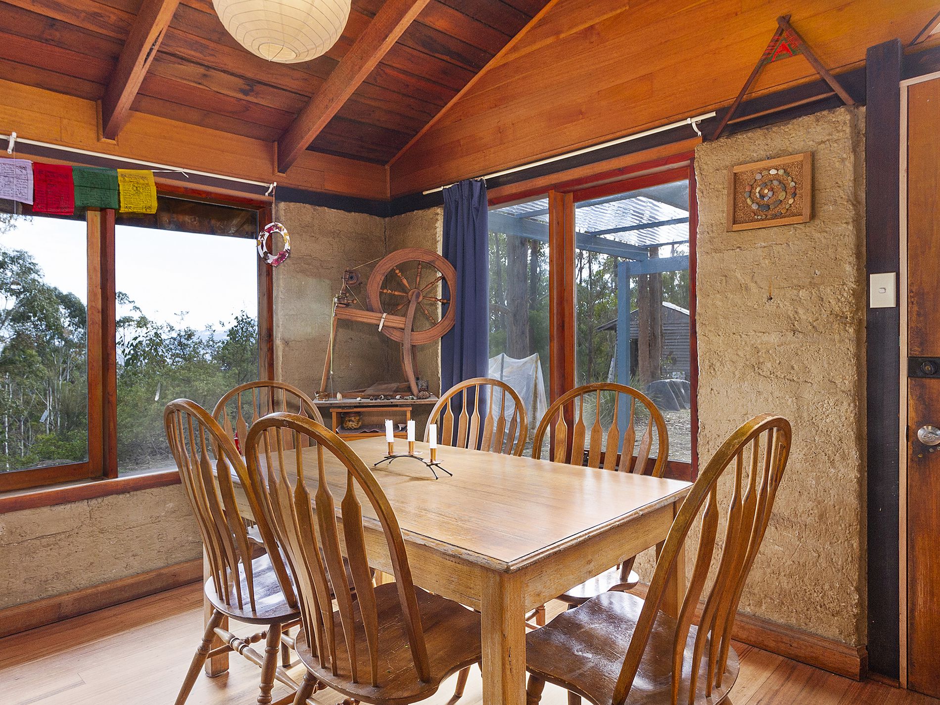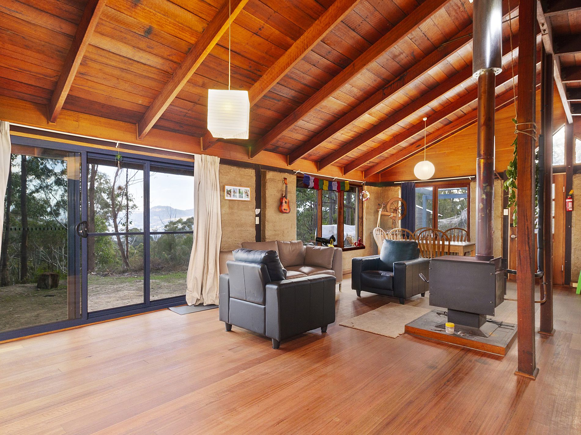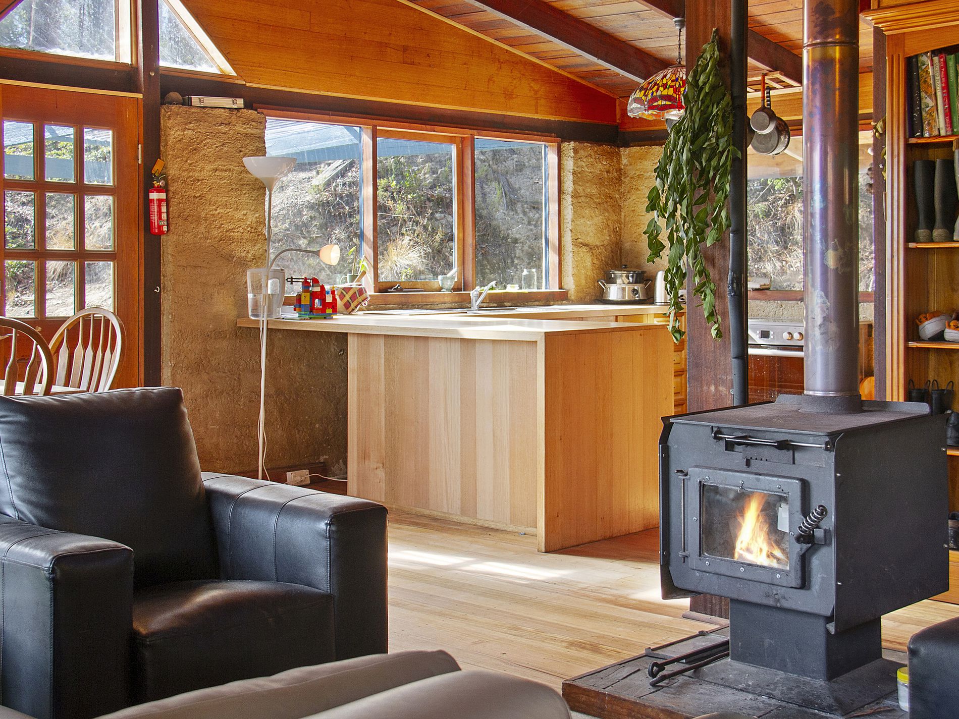 This gorgeous 2 bedroom mud brick cottage is positioned on over 13 acres and offers peace and privacy while catching views over the Huon river and beyond. The house sits amongst untouched native bushland which compliments the natural materials it’s created from and provides a lovely tranquil setting in which to comfortably reside. The exterior has recently benefited from fresh lime rendering, making it likely to not need maintenance for many years to come.
