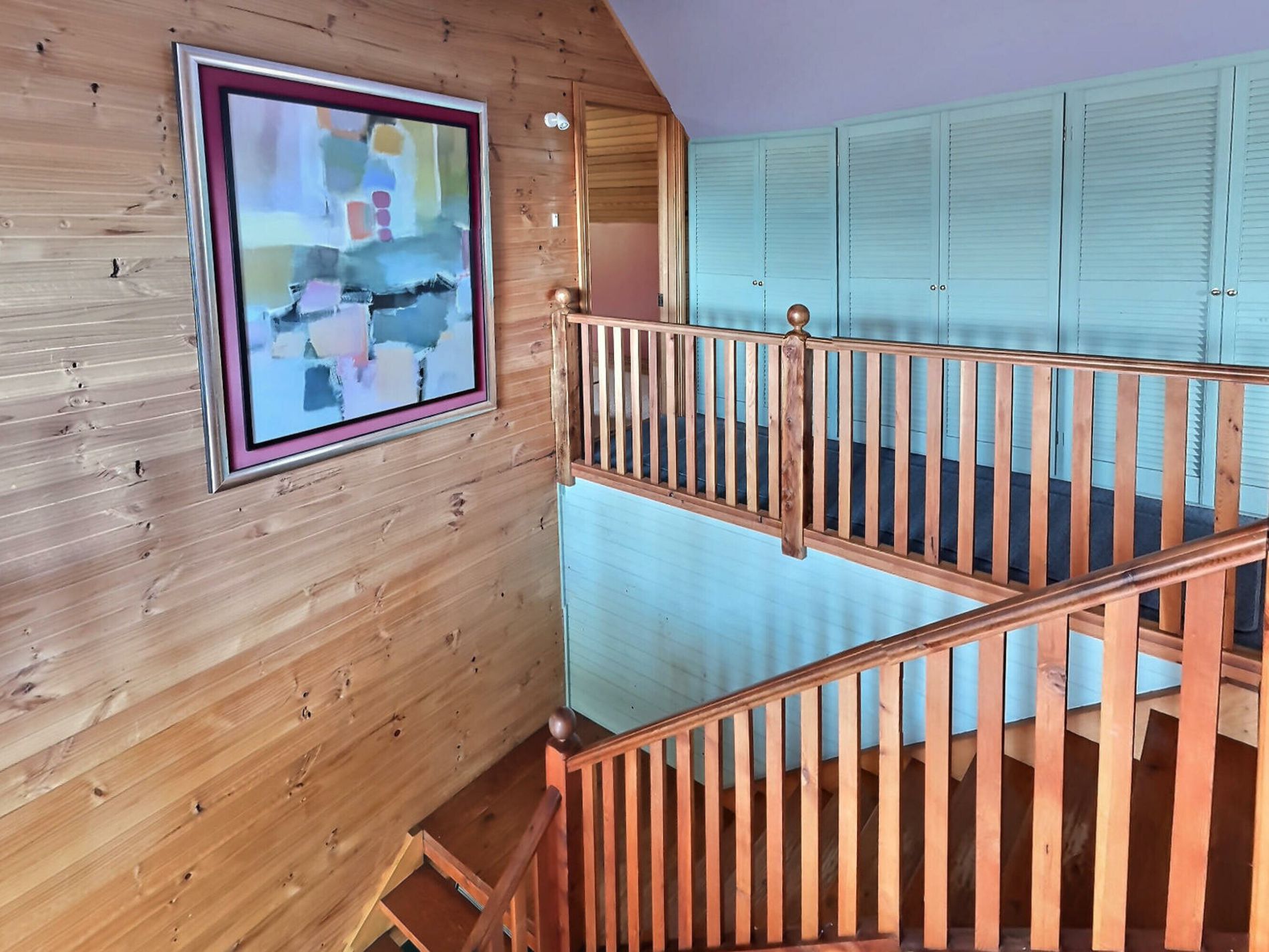 Enjoying an idyllic position overlooking the waters of Deep Bay, this western red cedar home is set peacefully in a bush setting. The home has a living space that is kept warm by wood heating, with windows that look out over the water. The kitchen and dining area has excellent storage levels, with a large pantry space. A timber staircase leads up to a central landing space, that acts as a snug and cosy sitting room when the fire is roaring below. The master bedroom and second bedroom open from this upstairs landing - the master bedroom is complemented by an ensuite, and the second bedroom is of a spacious size with built in wardrobes. Both the master bedroom and the upstairs landing area have doors that open to private deck spaces. A large built in wardrobe is situated at the top of the stairs for storage of linen. The third bedroom is situated downstairs with the main bathroom - the laundry is located at the back of the home, off the exterior deck. The exterior deck is a great size, wrapping around the home, and offering a sunny position to enjoy the peaceful setting. A garage is located behind the home for storage, with a covered carport off the front.
