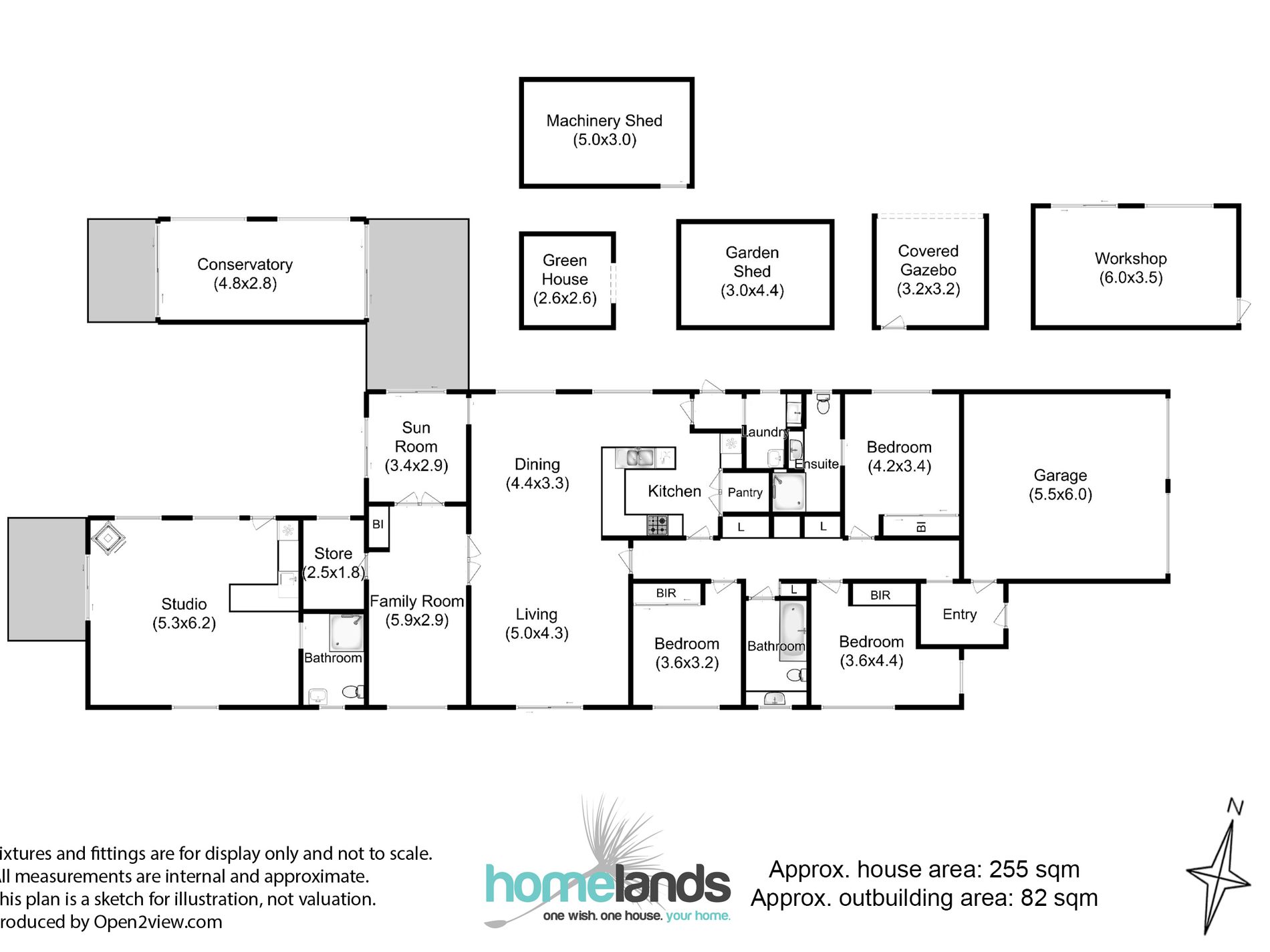 The 4.8 acres has 2 access points and is gently-sloping land covered with established gardens, grassland and light native bush. Outbuildings include a workshop, garden shed, covered gazebo, green house and additional storage sheds. A large netted fruit and veggie garden and a substantial sprinkler system for fire prevention.