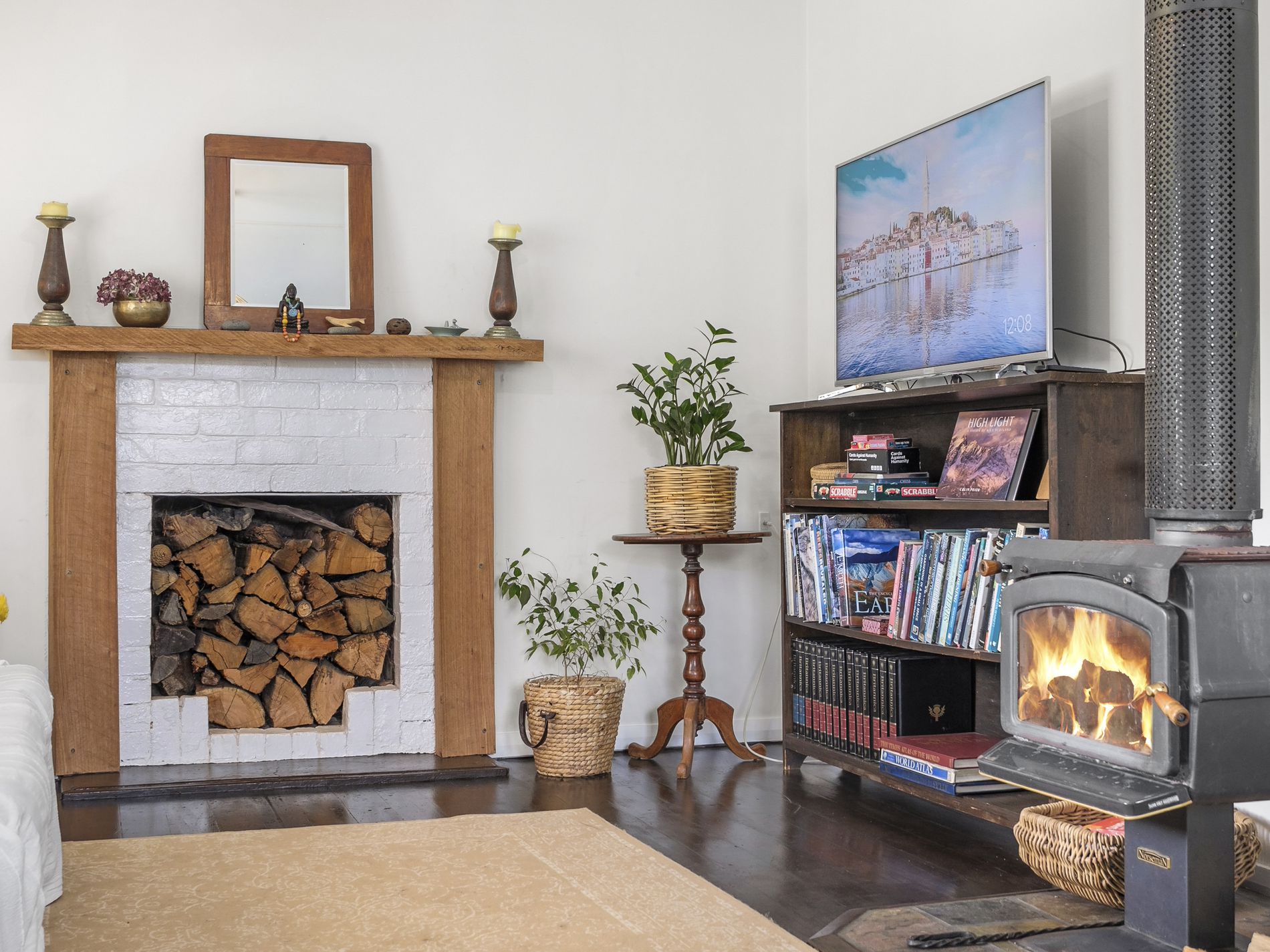 Outdoor features are many and include impressive produce gardens and a large hot house which between them produce an abundant amount of fresh, healthy home-grown food. A covered timber deck area at the rear of the home provides a quiet and sheltered area to relax and look out over the water. A semi-enclosed workspace or studio area off the side of the house provides convenient extra space and there is also a garden shed and a converted chook shed/laundry for extra storage.
