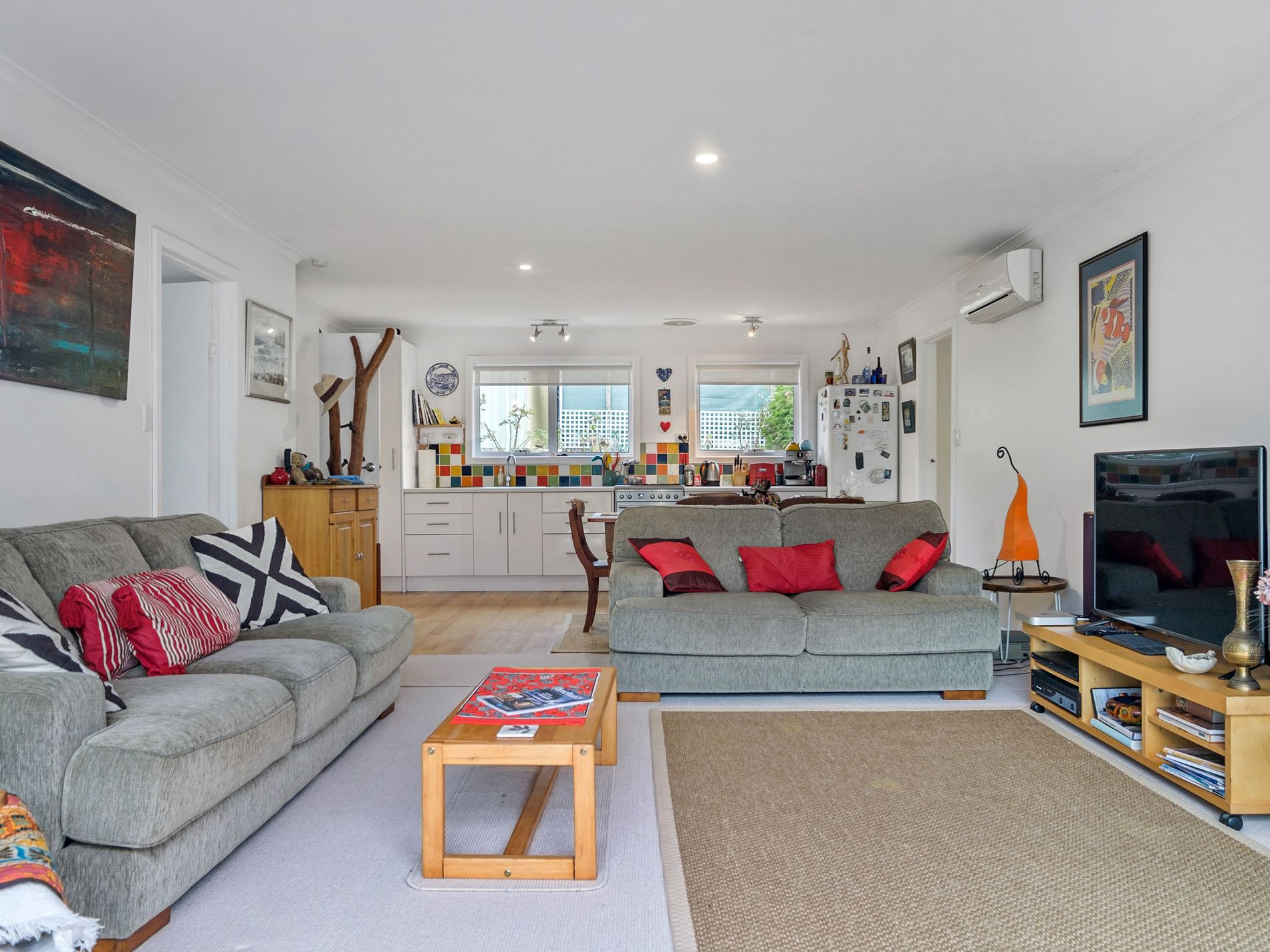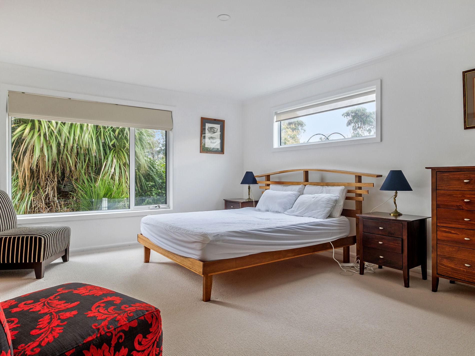 The open plan kitchen and lounge boasts a modern layout featuring a gas stove top and oven, large windows allowing more light into the home, and plenty of cupboard space for your needs. The lounge room opens up onto the covered deck which overlooks the serene bay setting. The 2 larger bedrooms both offer built in open wardrobes, one is also connected to the bathroom. The smaller bedroom could also be used as a study. The modern bathroom/laundry has a separate shower, toilet, vanity, and a cupboard for storage.