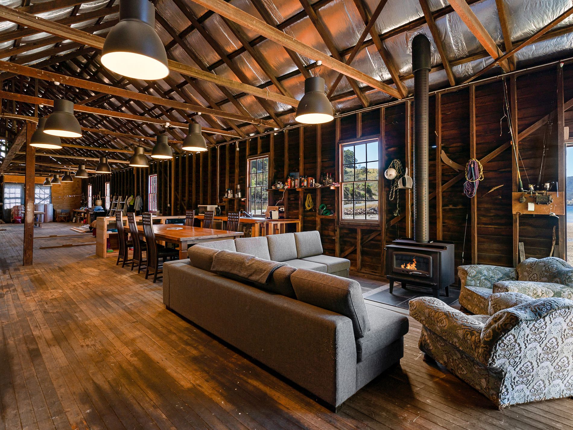 The 27m x 9m shed retains its original timber floors, walls, framing & trusses along with original windows and sliding barn doors and a the building has a new colorbond roof. An open-plan layout inside with a fully functional kitchen, separate bathroom with laundry, wood heating and a huge amount of additional space.